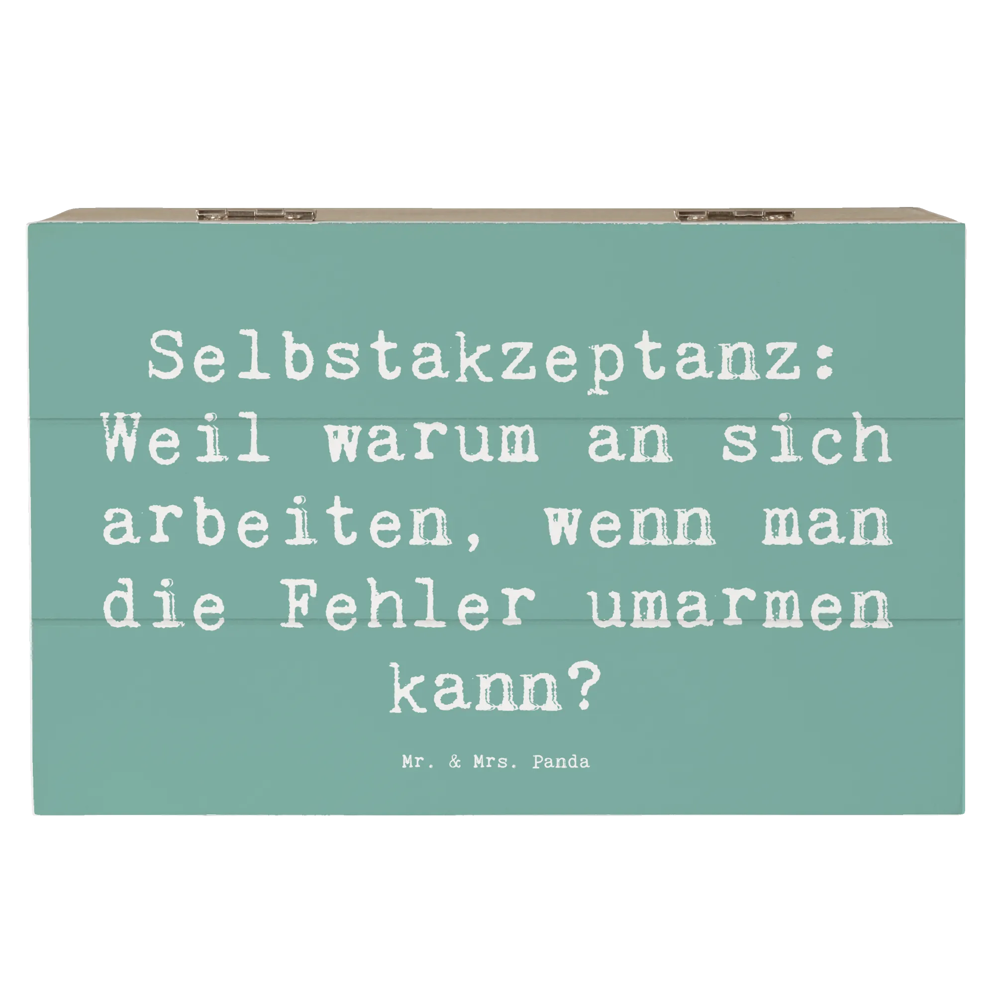 Die wunderschöne Holzkiste von Mr. & Mrs. Panda mit dem Motiv Selbstakzeptanz ist das perfekte Geschenk für all diejenigen, die ihr Leben mit mehr Liebe und Verständnis zu sich selbst füllen möchten. Diese Erinnerungskiste gehört in jedes Zuhause, denn sie bietet nicht nur einen stilvollen Platz für all Deine wertvollen Schätze, sondern inspiriert auch durch ihren liebevollen Spruch: "Selbstakzeptanz: Weil warum an sich arbeiten, wenn man die Fehler umarmen kann?".