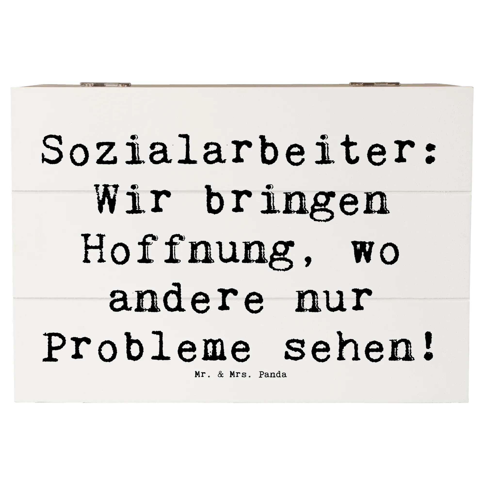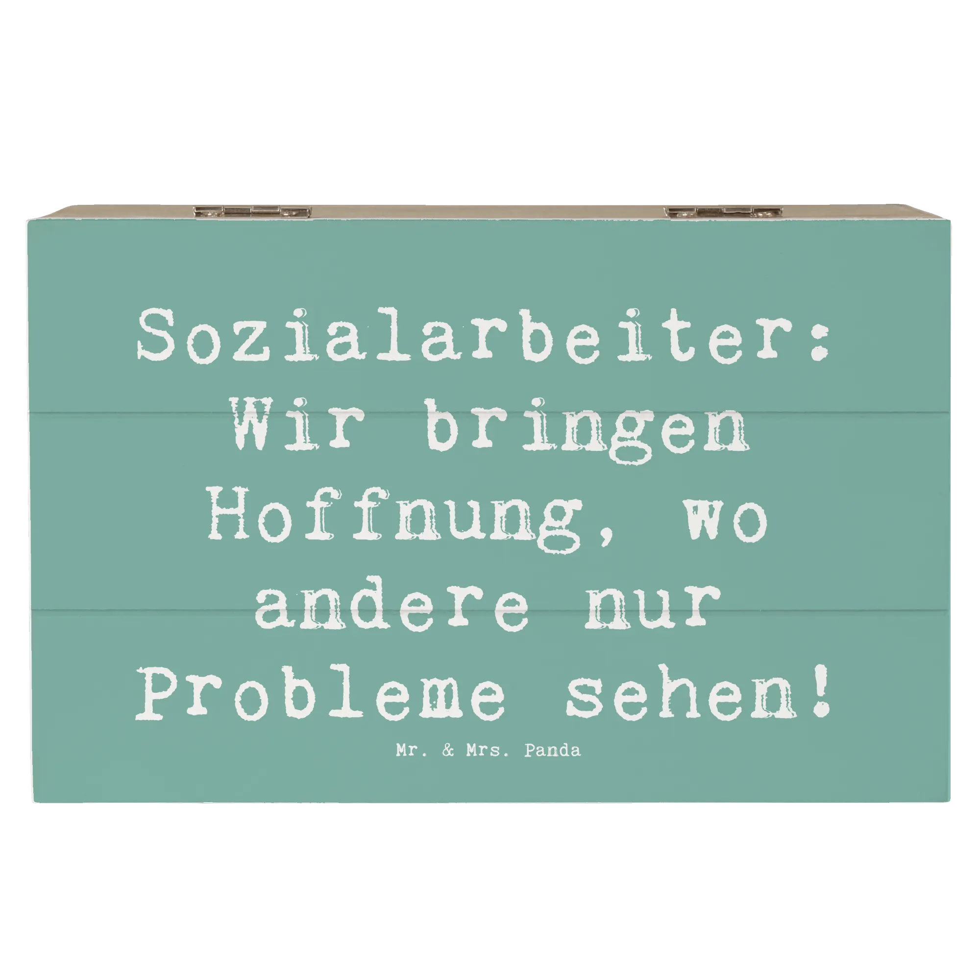 Du bist auf der Suche nach dem perfekten Geschenk für eine Sozialarbeiterin? Dann ist die wunderschöne Holzkiste von Mr. & Mrs. Panda genau das Richtige für dich! Diese besondere Erinnerungskiste ist nicht nur praktisch, sondern auch liebevoll gestaltet und trägt den Slogan 'Sozialarbeiter: Wir bringen Hoffnung, wo andere nur Probleme sehen!'. Sie bietet nicht nur Platz für die wertvollsten Schätze, sondern ist auch ein tolles Accessoire in jedem Raum.