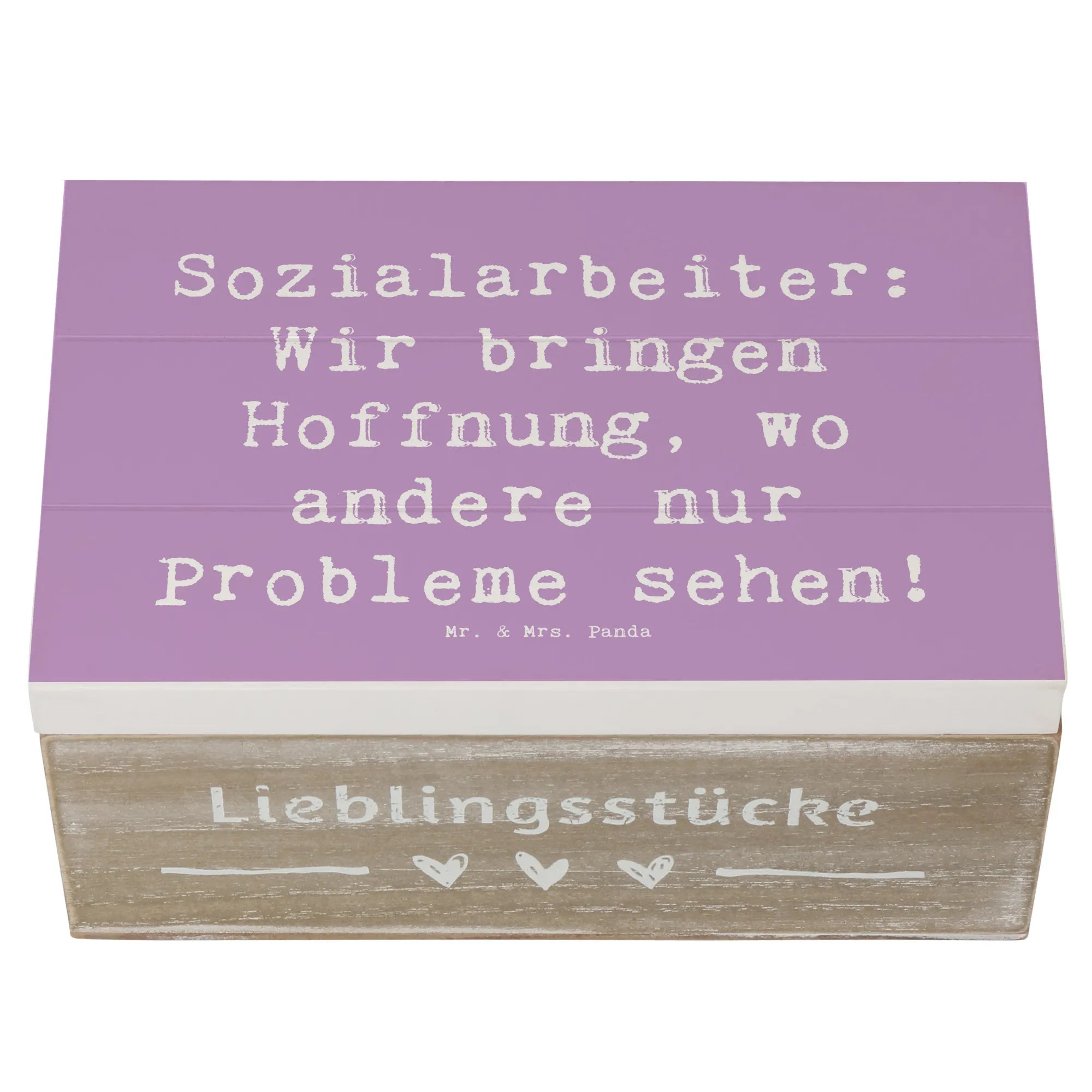Entdecke die wunderschöne Holzkiste von Mr. & Mrs. Panda, die speziell für Sozialarbeiterinnen entworfen wurde! Diese handgefertigte Schatzkiste ist der ideale Aufbewahrungsort für all Deine wertvollen Erinnerungen, sei es für Fotos, kleine Schätze oder ganz besondere Momente.