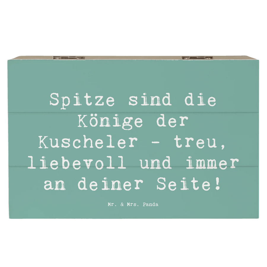 Die zauberhafte Holzkiste von Mr. & Mrs. Panda ist nicht nur ein dekoratives Möbelstück, sondern auch eine wunderbare Erinnerungsbox für all Deine schönsten Momente. Gedruckt mit dem niedlichen Motiven eines Spitzes und dem spritzigen Spruch "Spitze sind die Könige der Kuscheler - treu, liebevoll und immer an deiner Seite!", wird diese Kiste schnell zum Lieblingsgegenstand in Deinem Zuhause.
