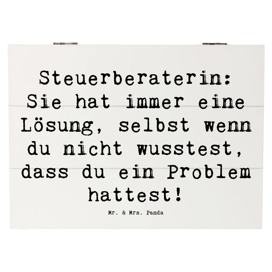Mr. & Mrs. Panda Holzkiste „Steuerberaterin“ – ein kleines Geschenk mit großer Wirkung. Diese dekorative Aufbewahrungsbox Holz aus der Berufe-Kollektion trägt den liebevollen Spruch „Steuerberaterin: Sie hat immer eine Lösung, selbst wenn du nicht wusstest, dass du ein Problem hattest!“ und zaubert damit ein Lächeln auf jedes Gesicht.