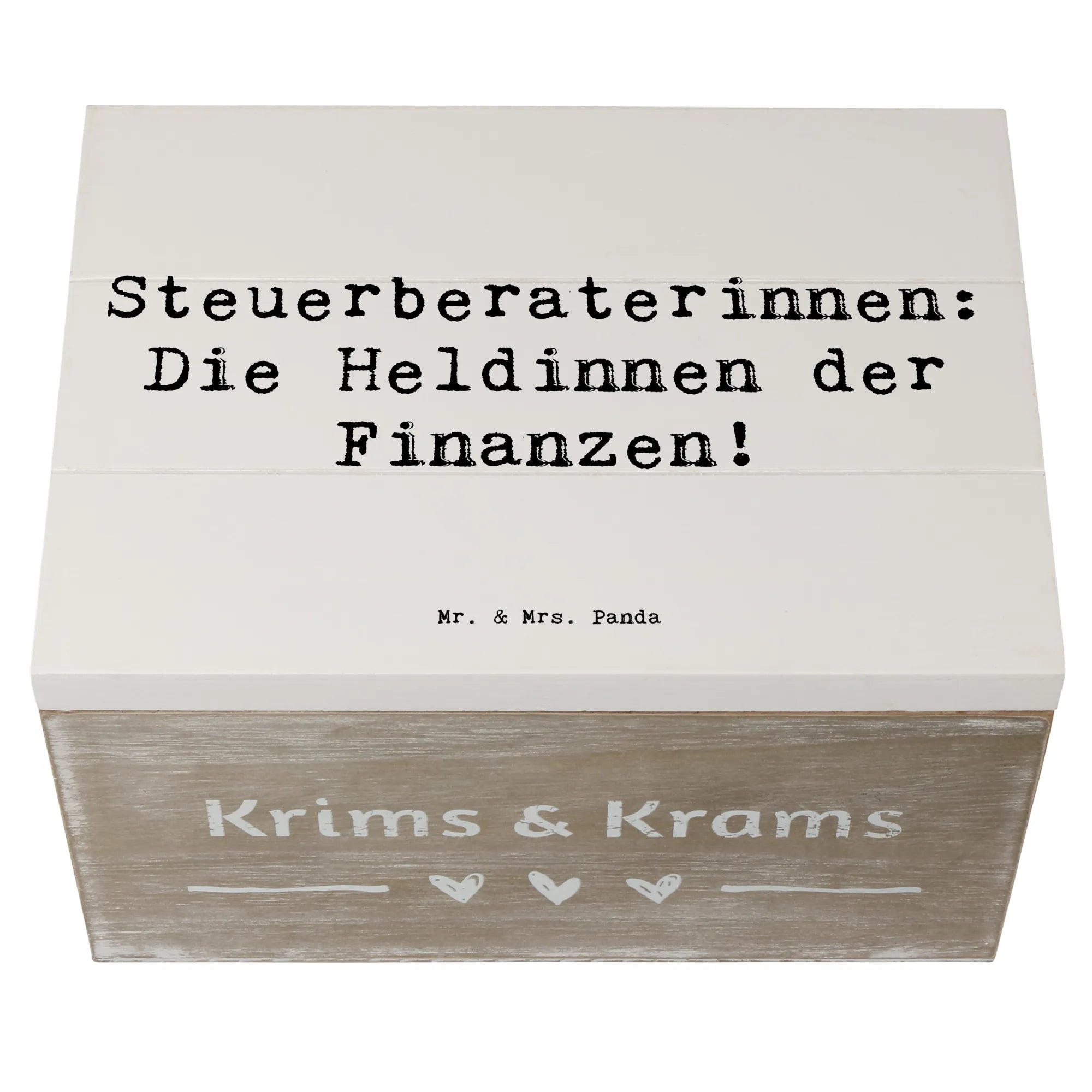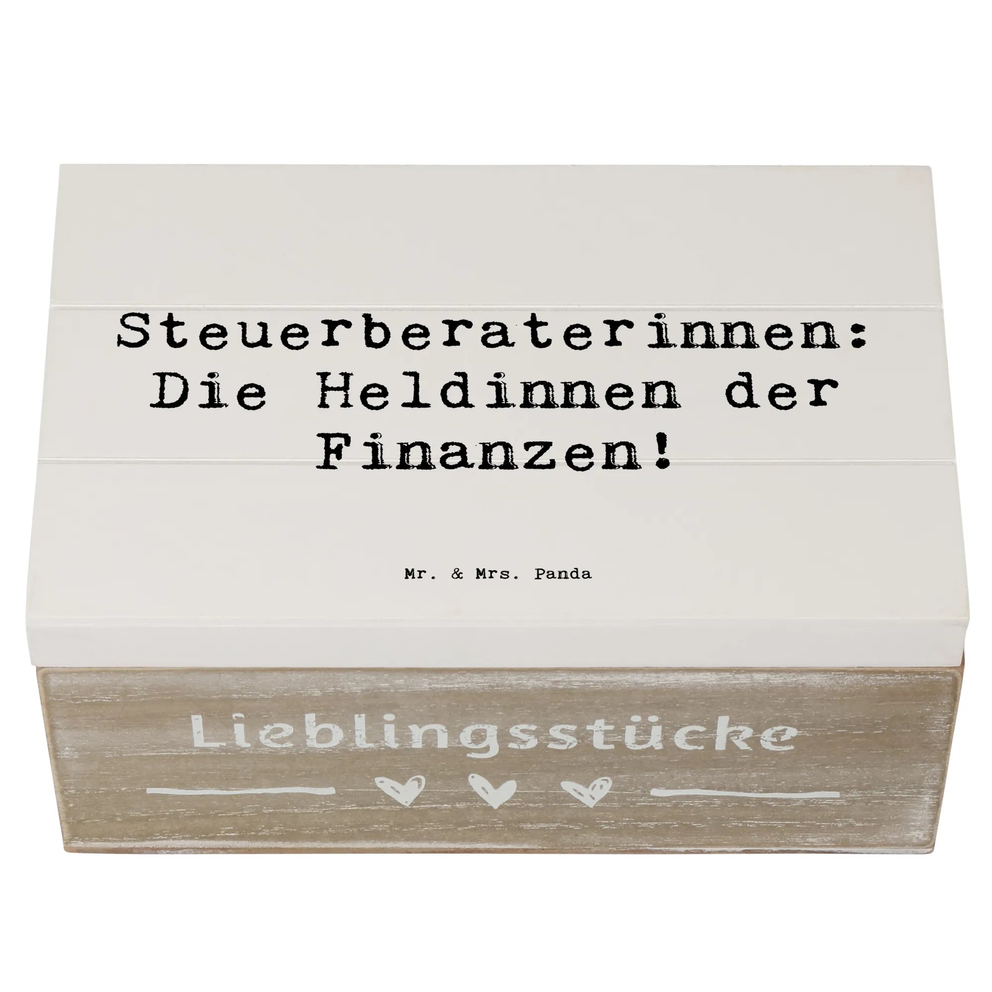 Die Kiste ist Teil der speziellen Kollektion Berufe von Mr. & Mrs. Panda. Diese Kollektion bietet eine Vielzahl von Produkten, die alle mit liebevollen Designs und Sprüchen zu den verschiedenen Berufen gestaltet sind. Wenn du auf der Suche nach einem originellen Geschenk für eine Steuerberaterin bist oder einfach nur eine schöne Möglichkeit suchst, deine eigenen Erinnerungen zu bewahren, dann ist diese Holzkiste genau das Richtige für dich!