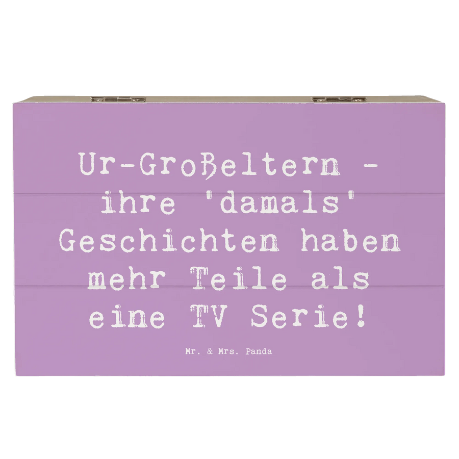 Mit einem charmanten Slogan, der besagt: \"Ur-Großeltern - ihre 'damals' Geschichten haben mehr Teile als eine TV-Serie!\", wird diese Box zu einem geschätzten Erinnerungsstück für die ganze Familie. Die robusten Maße von 19 cm x 12 cm x 10 cm und das hochwertige Material aus Premium Hartfaser sorgen dafür, dass diese Kiste besonders stabil und langlebig ist.