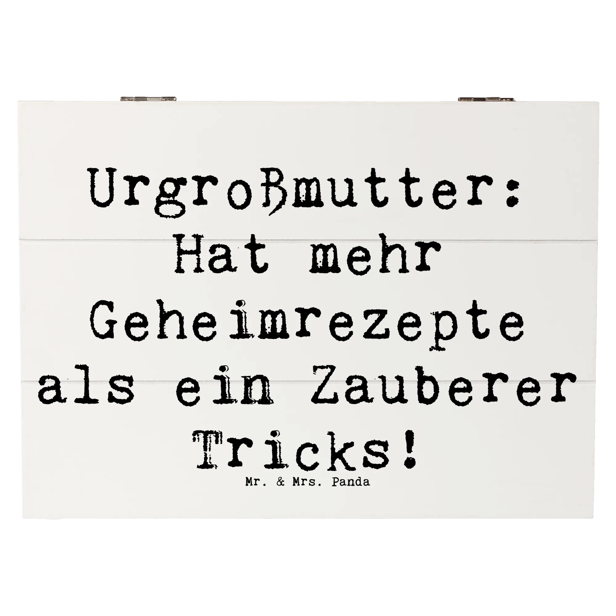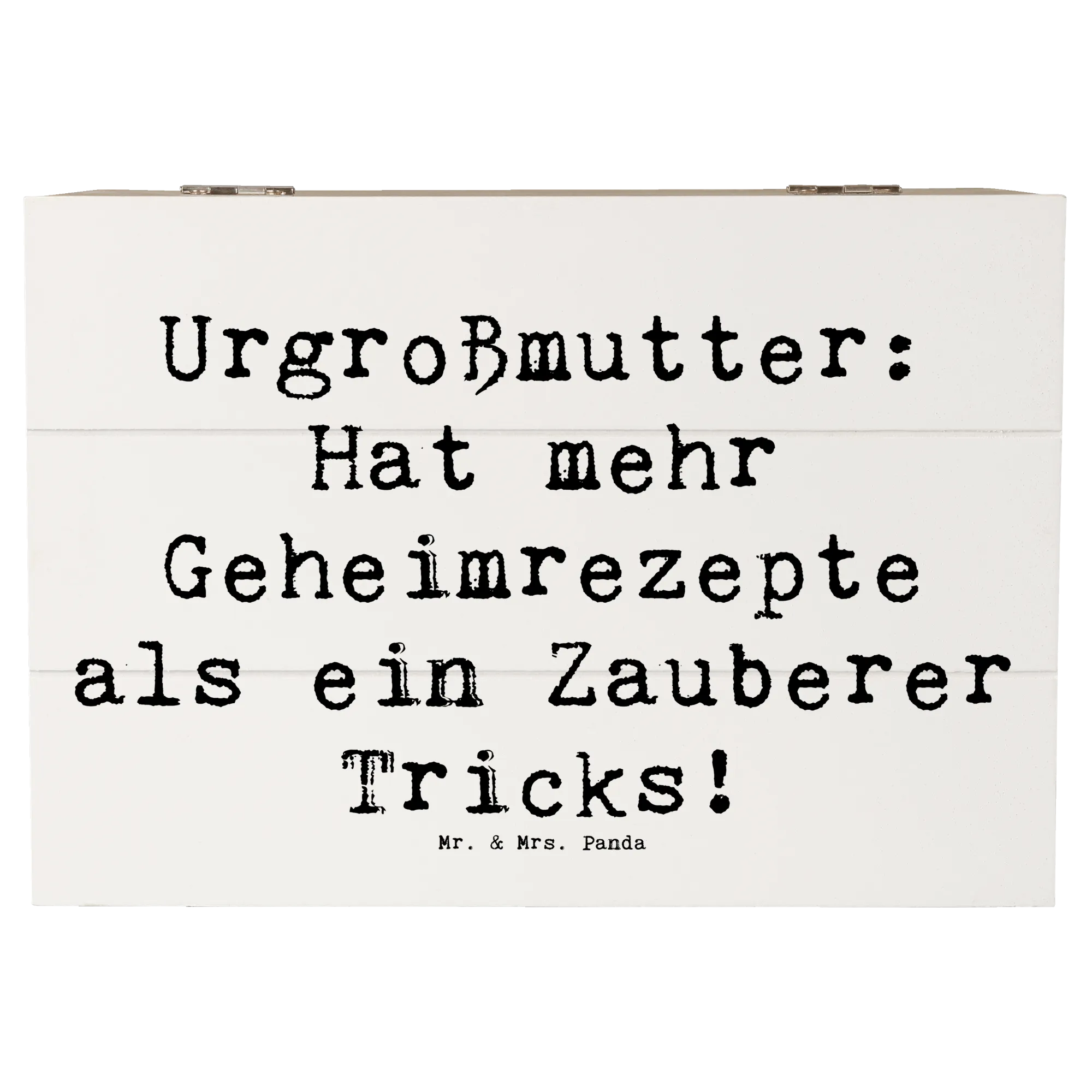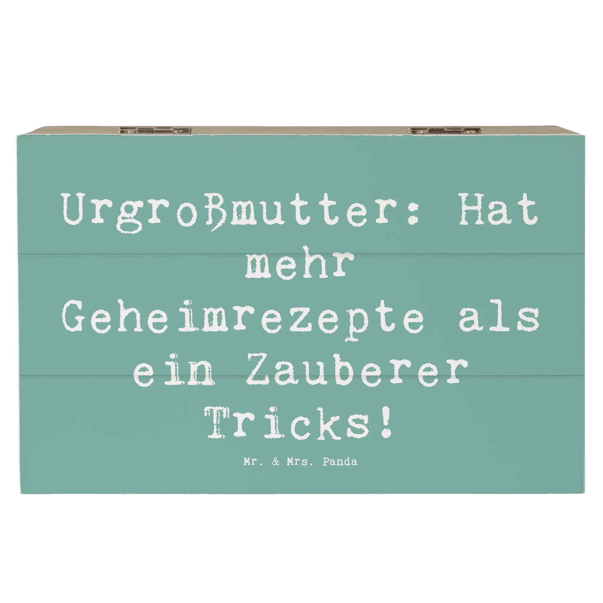 Entdecke die liebevoll gestaltete Holzkiste von Mr. & Mrs. Panda mit dem zauberhaften Motiv "Urgroßmutter: Hat mehr Geheimrezepte als ein Zauberer Tricks!" Diese wunderschöne Holzkiste ist nicht nur ein einzigartiges Deko-Element, sondern auch ein praktischer Aufbewahrungsort für all Deine wertvollen Schätze und Erinnerungen.