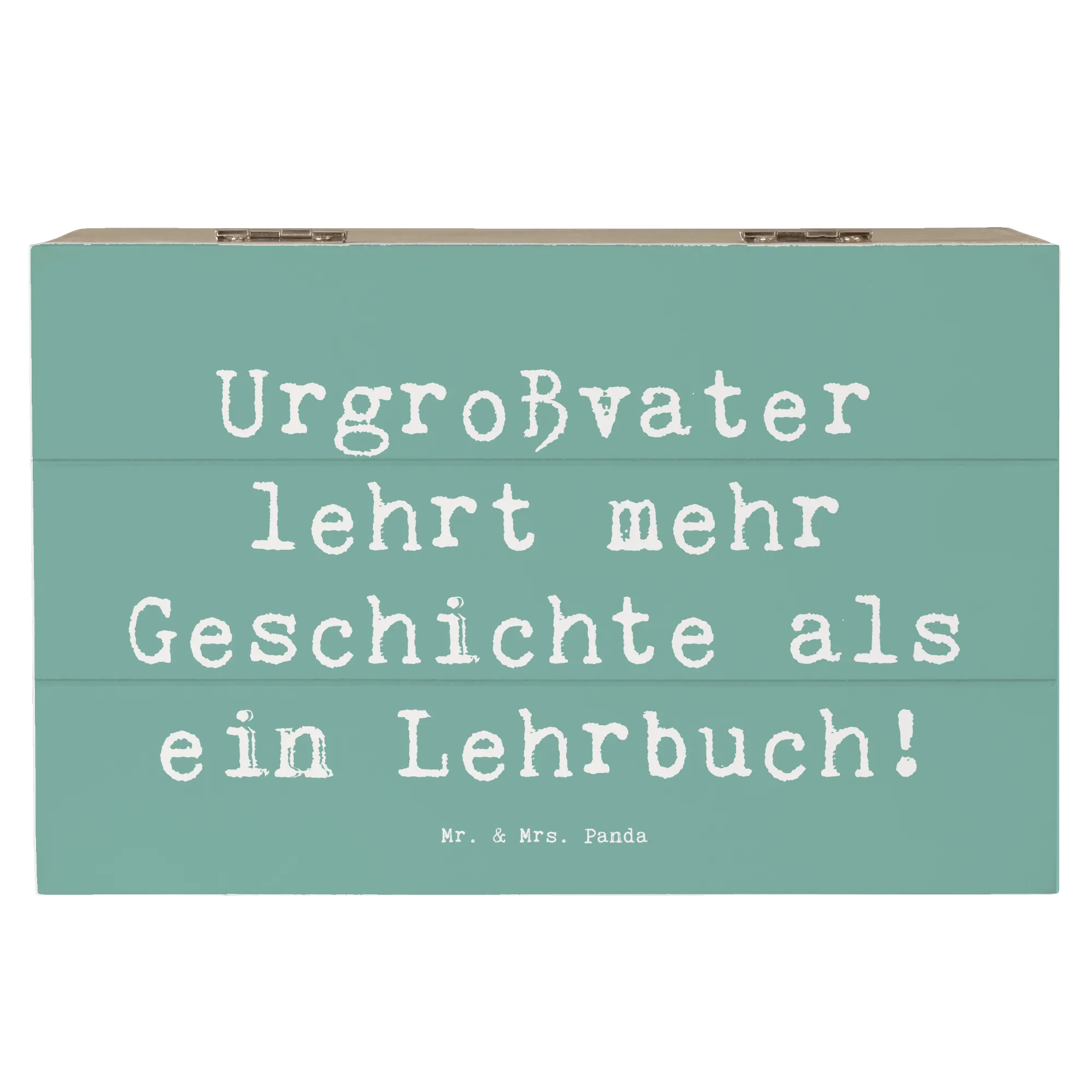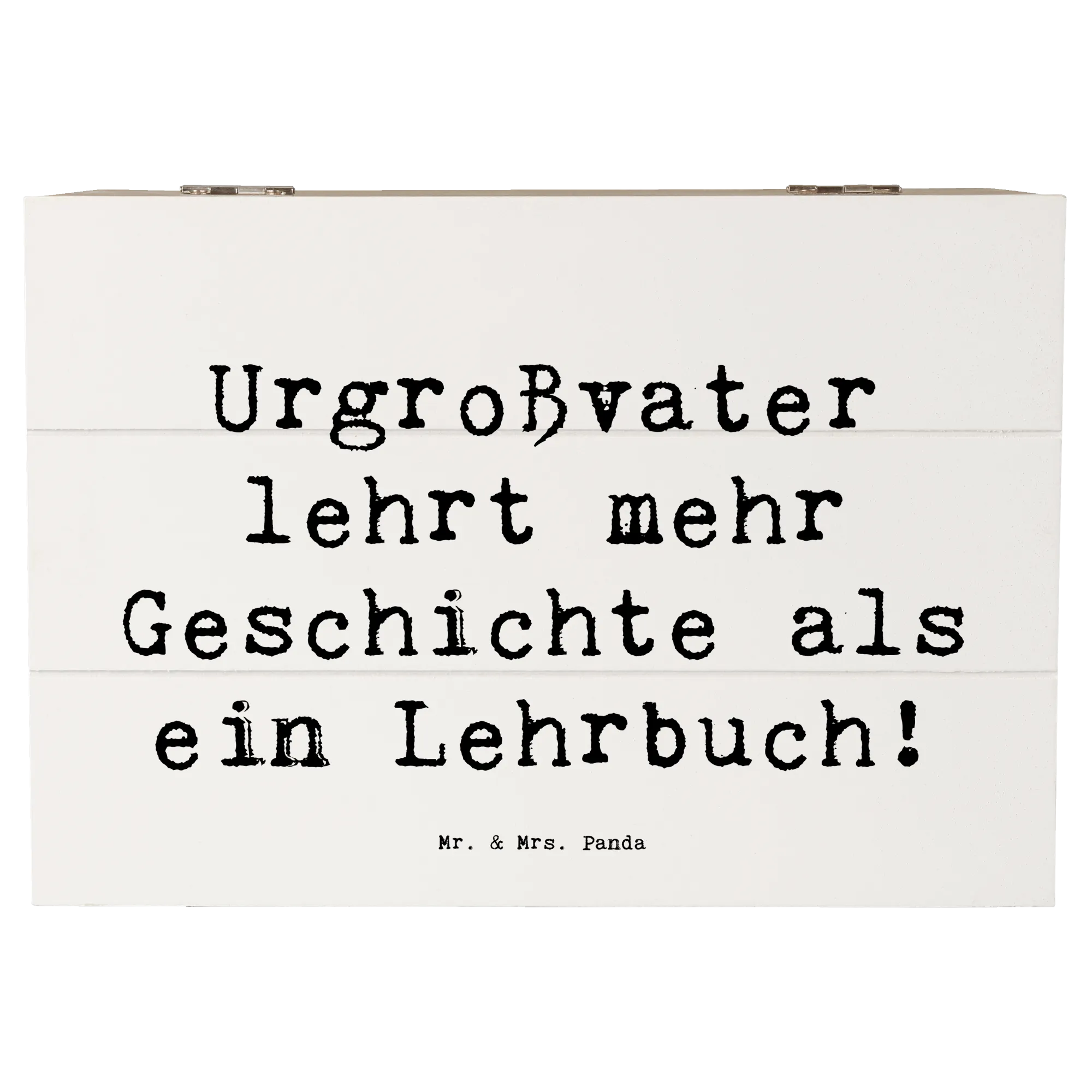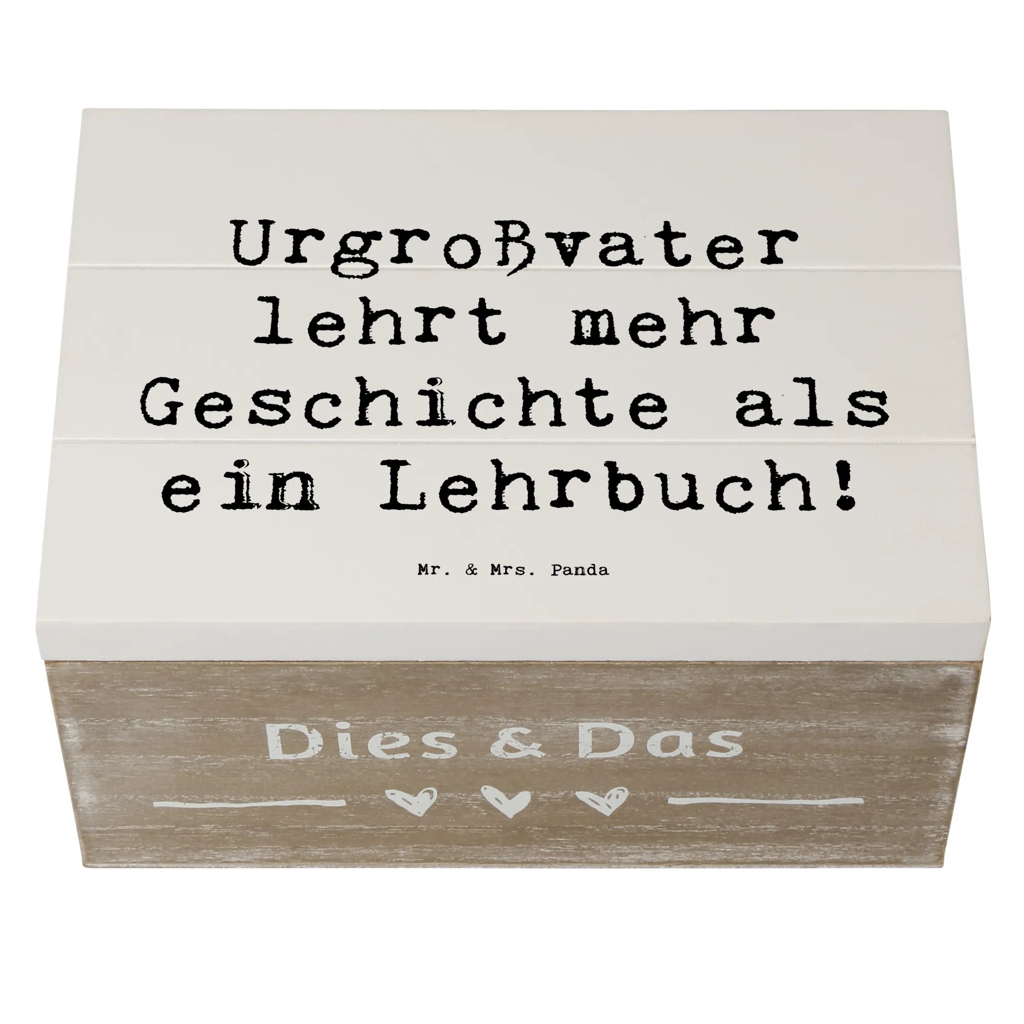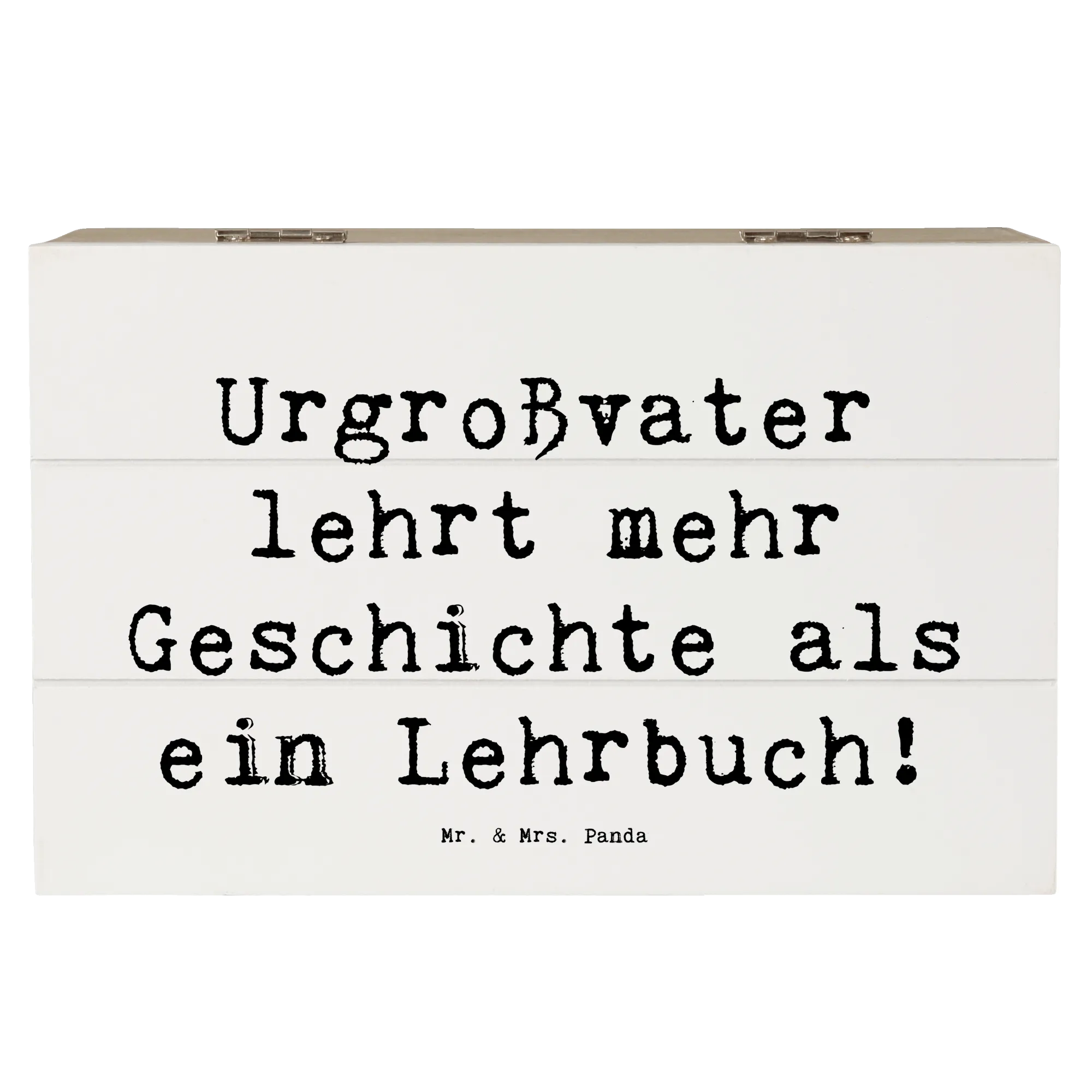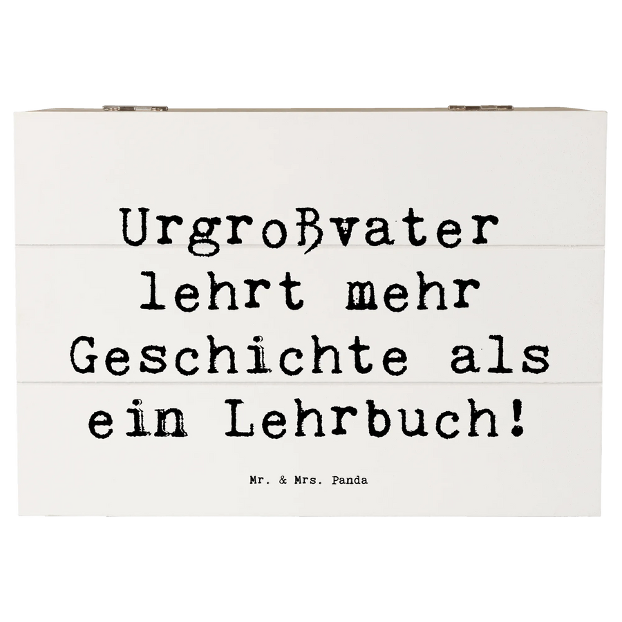 Die wunderschöne Holzkiste von Mr. & Mrs. Panda ist das perfekte Geschenk für jeden Anlass. Mit dem bezaubernden Motiv "Urgroßvater lehrt mehr Geschichte als ein Lehrbuch!" eignet sie sich besonders für Familienfeiern, wie Geburtstagsfeiern, Jahrestage oder einfach als tolle Erinnerungskiste.