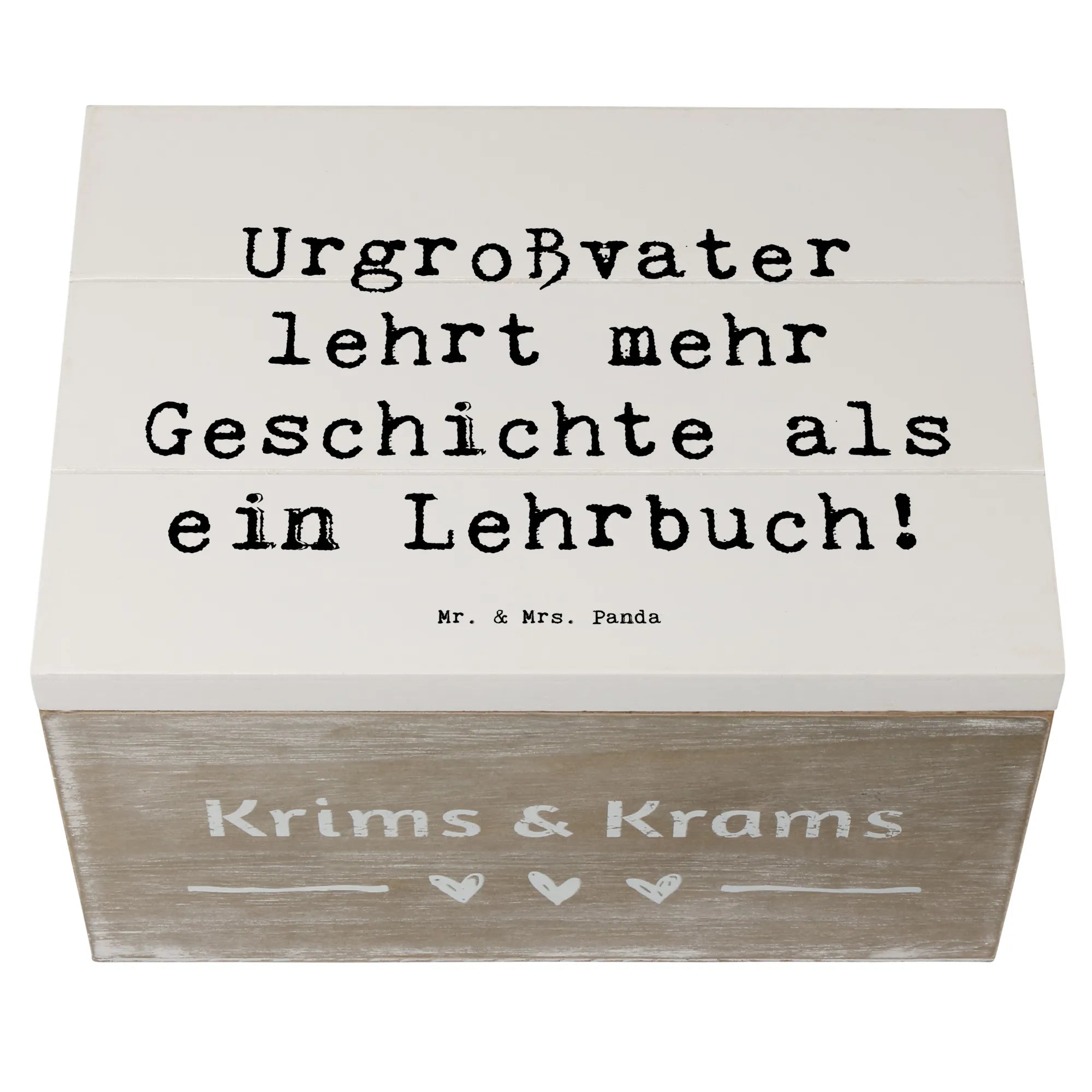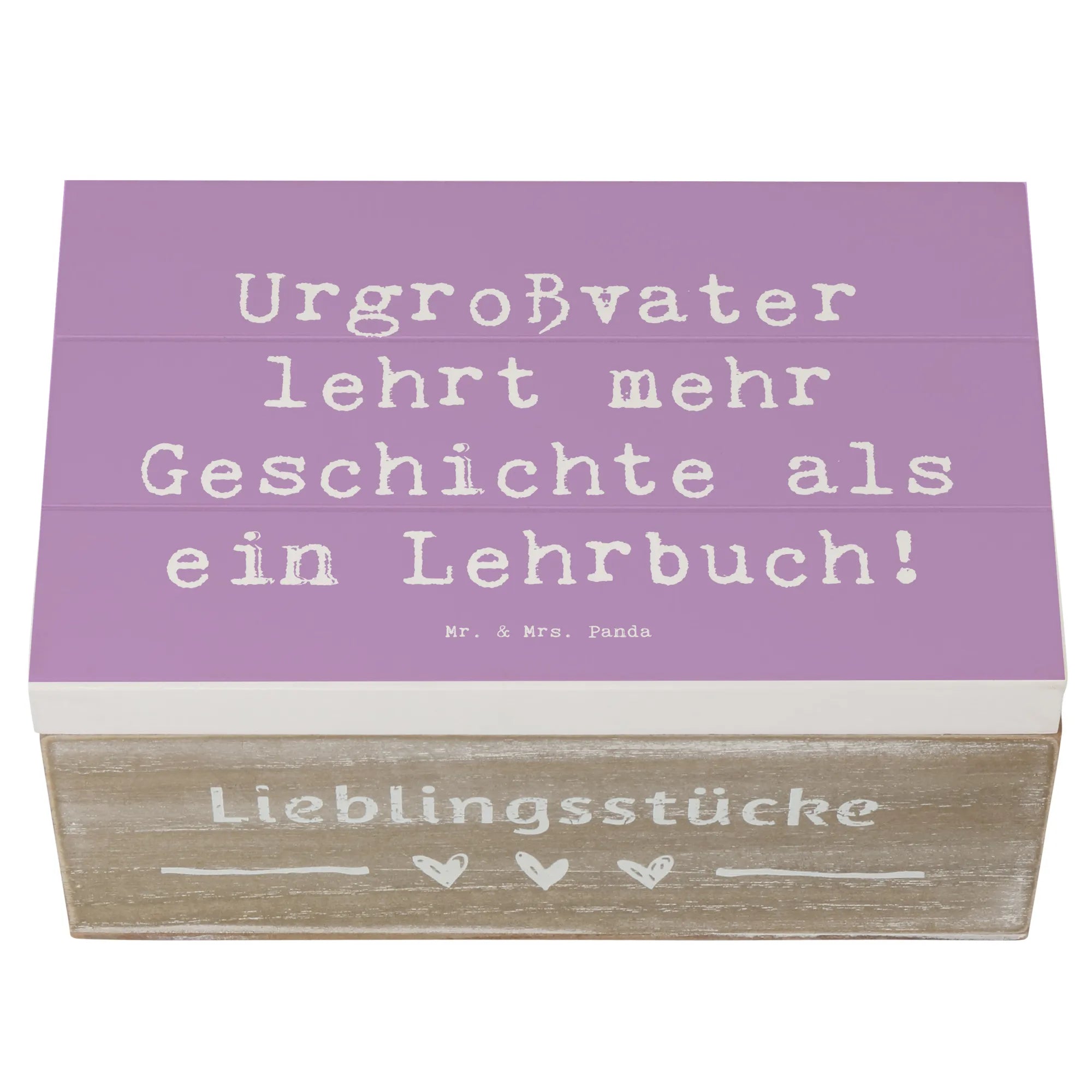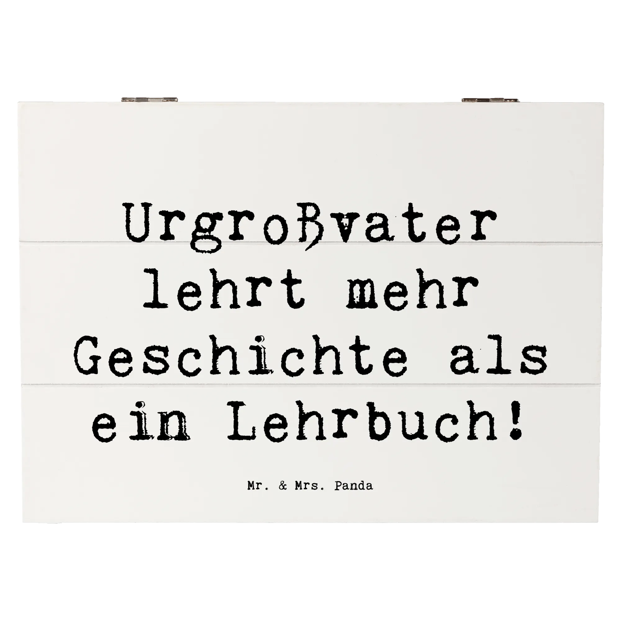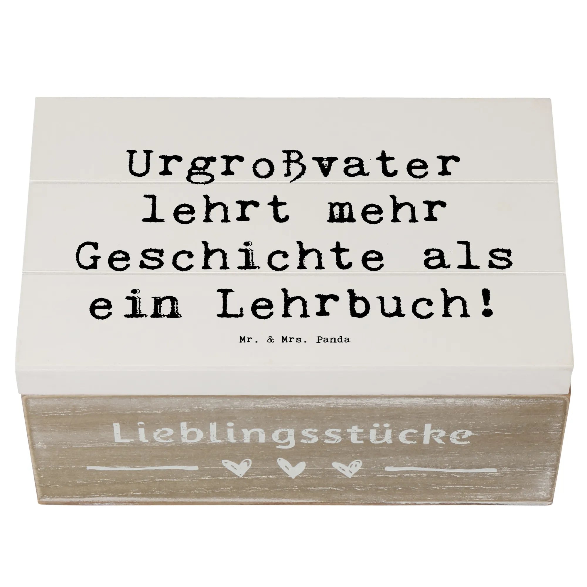 Die wunderschöne Holzkiste von Mr. & Mrs. Panda ist das perfekte Geschenk für jeden Anlass. Mit dem bezaubernden Motiv "Urgroßvater lehrt mehr Geschichte als ein Lehrbuch!" eignet sie sich besonders für Familienfeiern, wie Geburtstagsfeiern, Jahrestage oder einfach als tolle Erinnerungskiste.