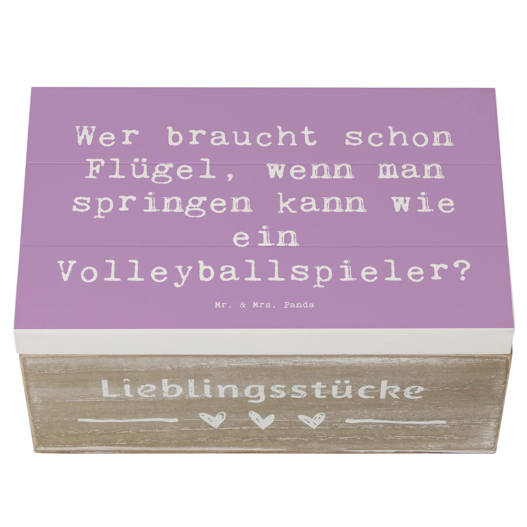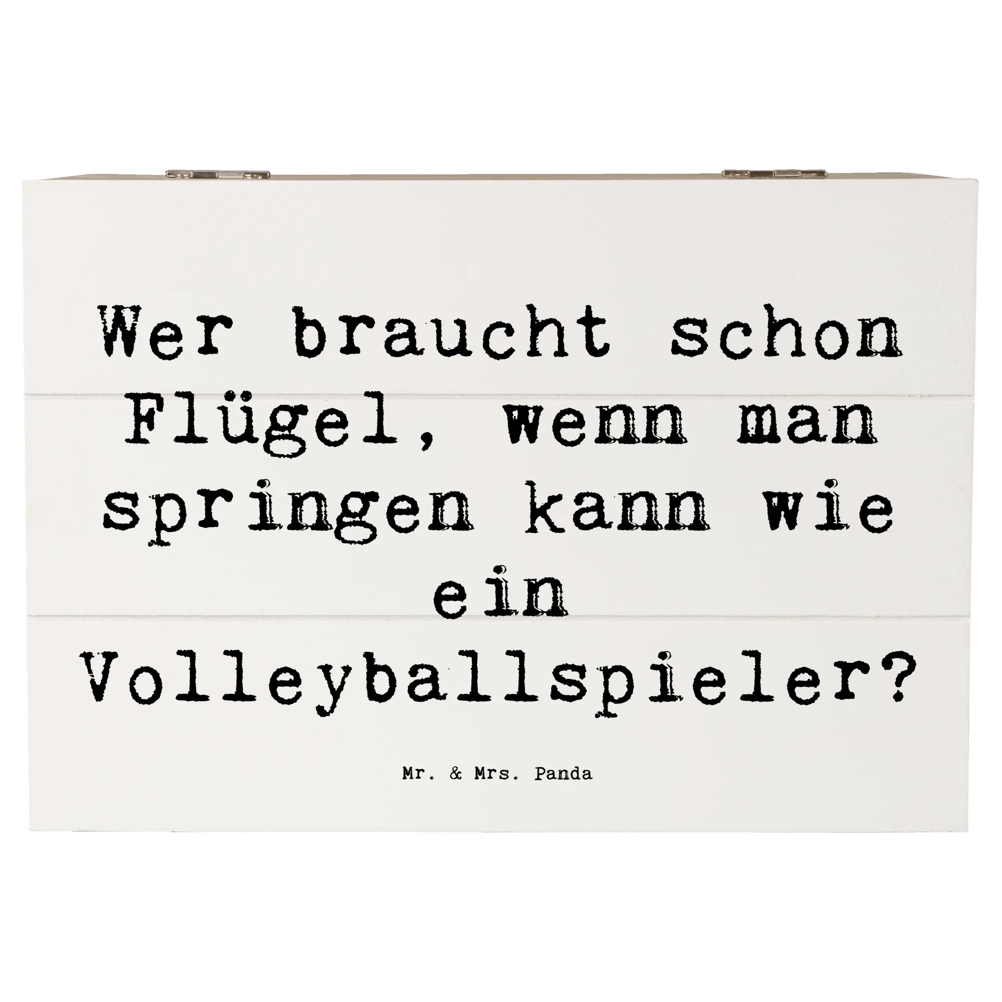 Eine wunderschöne Holzkiste von Mr. & Mrs. Panda – perfekt für alle Volleyball-Fans und Sportler. Diese Holzbox trägt den frechen Spruch „Wer braucht schon Flügel, wenn man springen kann wie ein Volleyballspieler?“ und gehört zur liebevoll gestalteten Sportarten-Kollektion von Mr. & Mrs. Panda. Das Motiv ist von Mrs. Panda aquarellhandgezeichnet und sorgt für eine persönliche, fröhliche Note.