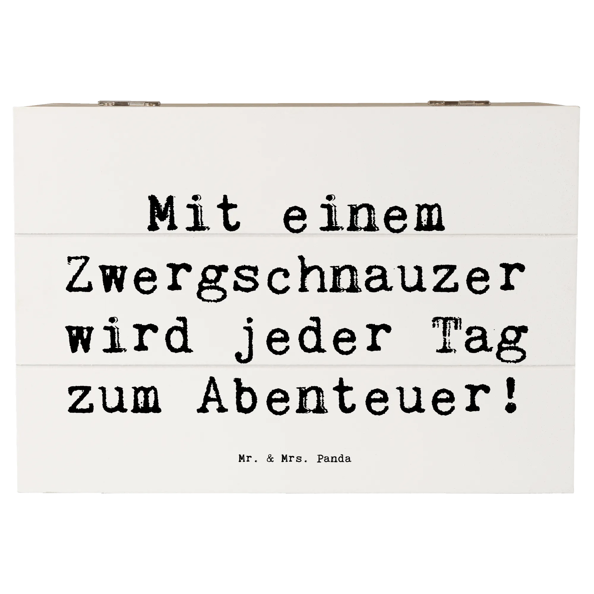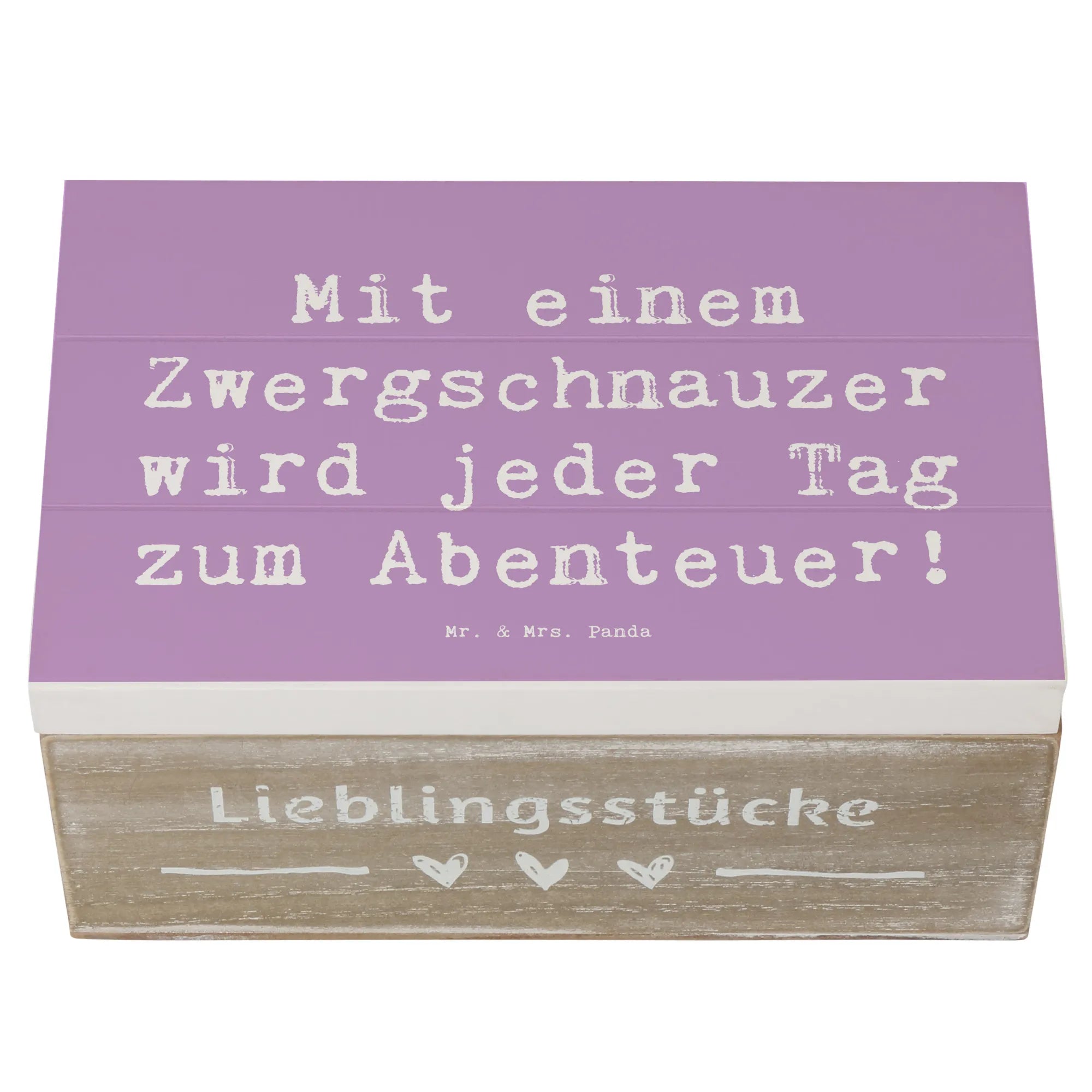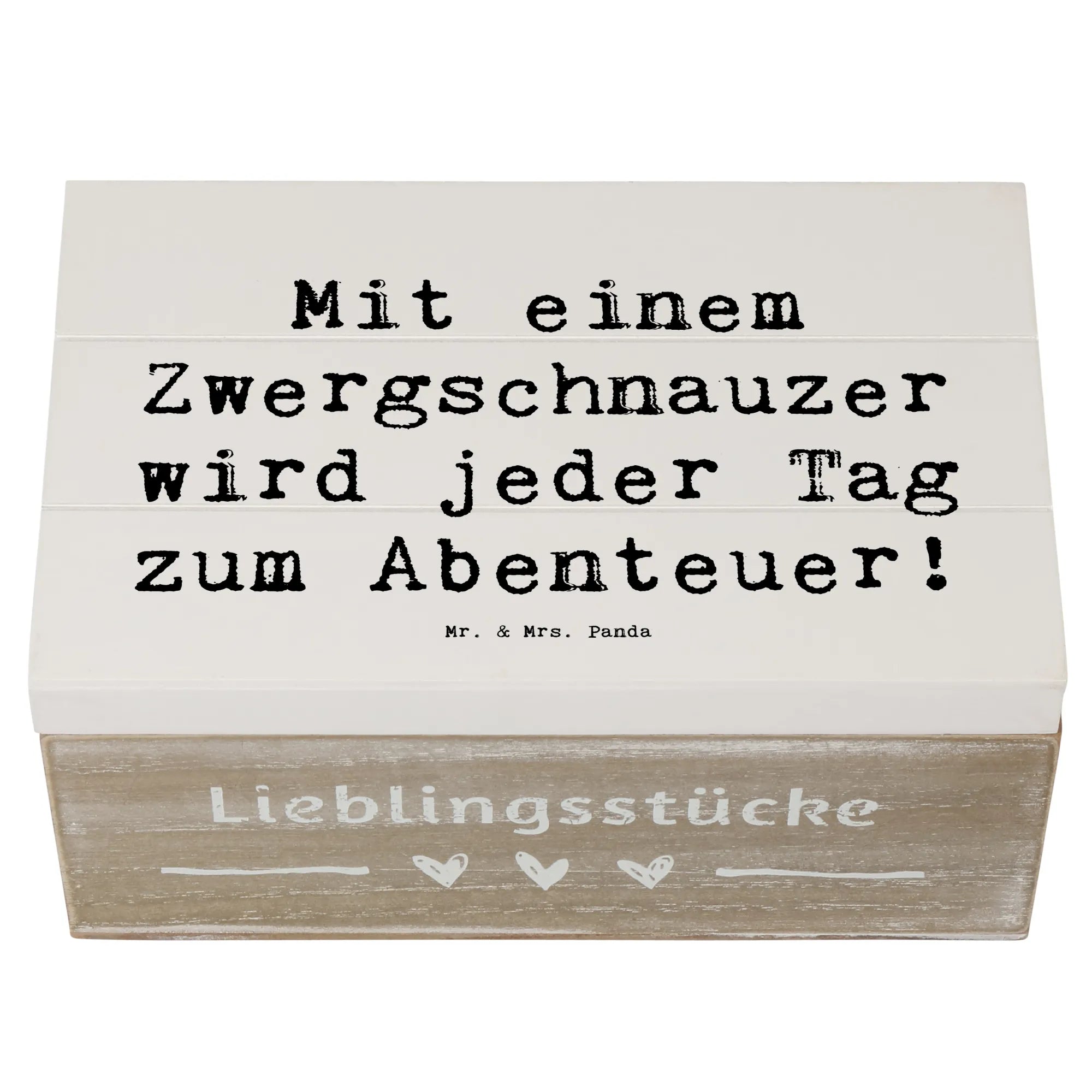 Diese bezaubernde Holzkiste von Mr. & Mrs. Panda ist das perfekte Geschenk für alle Hundefans, insbesondere für die Liebhaber der Hunderasse Zwergschnauzer. Mit dem spritzigen Spruch 'Mit einem Zwergschnauzer wird jeder Tag zum Abenteuer!' bringt diese Kiste nicht nur Freude, sondern auch einen Hauch von Abenteuer in den Alltag. Ob für die eigenen Erinnerungsstücke oder als Geschenk für einen Freund oder eine Freundin – diese Holzkiste bietet den idealen Aufbewahrungsort für all die kleinen Schätze des Lebens.