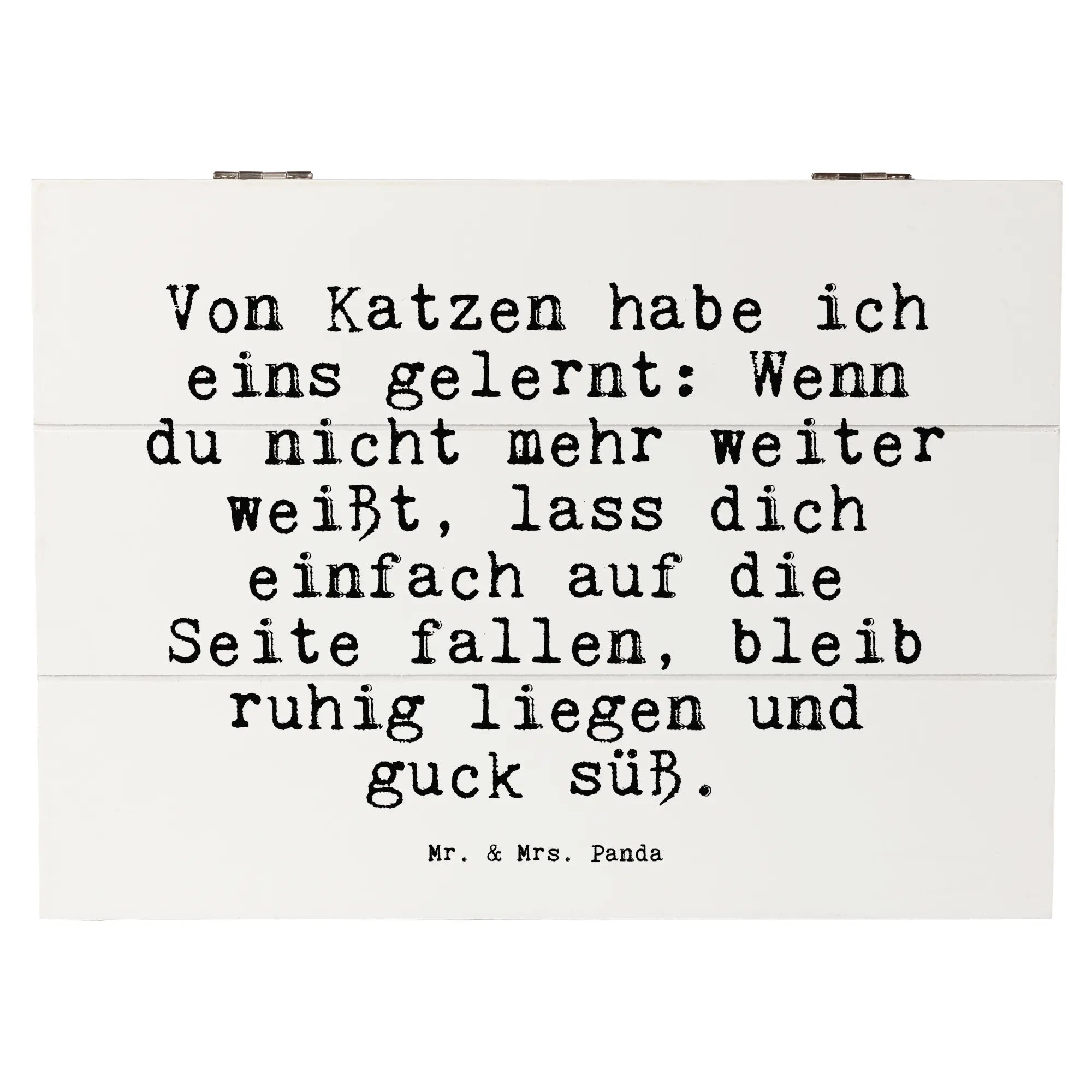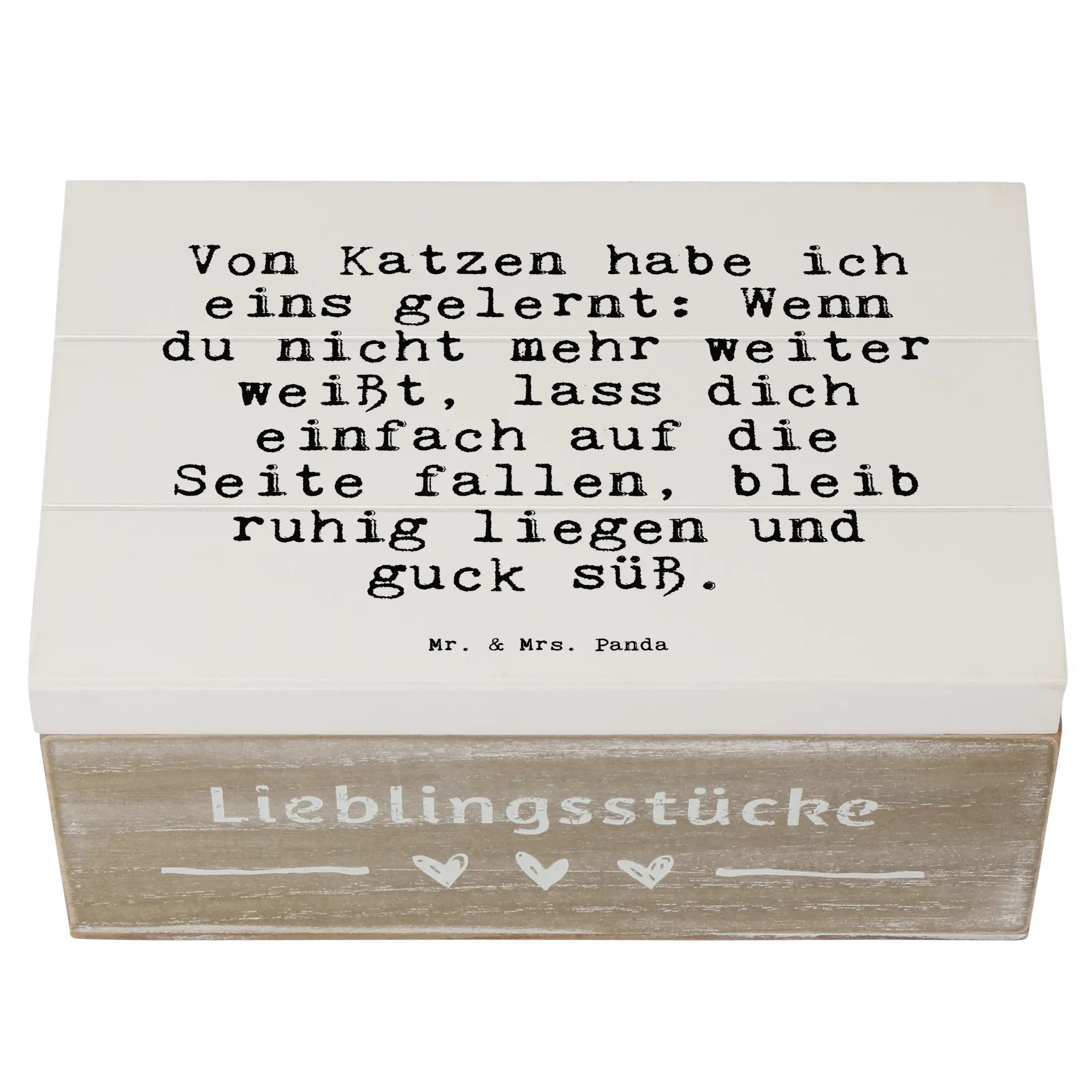 Entdecke die wundervolle Holzkiste von Mr. & Mrs. Panda! Mit einem herzlichen Spruch bedruckt, der dich zum Schmunzeln bringt: "Von Katzen habe ich eins gelernt: Wenn du nicht mehr weiter weißt, lass dich einfach auf die Seite fallen, bleib ruhig liegen und guck süß." Diese charmante Kiste ist der perfekte Aufbewahrungsort für all deine Schätze und Erinnerungen. Ob für Fotos, besondere Andenken aus der Kindheit oder einfach als stilvolle Dekokiste in deiner Wohnung - sie ist vielseitig einsetzbar und bringt Freude und Ordnung in dein Zuhause.
