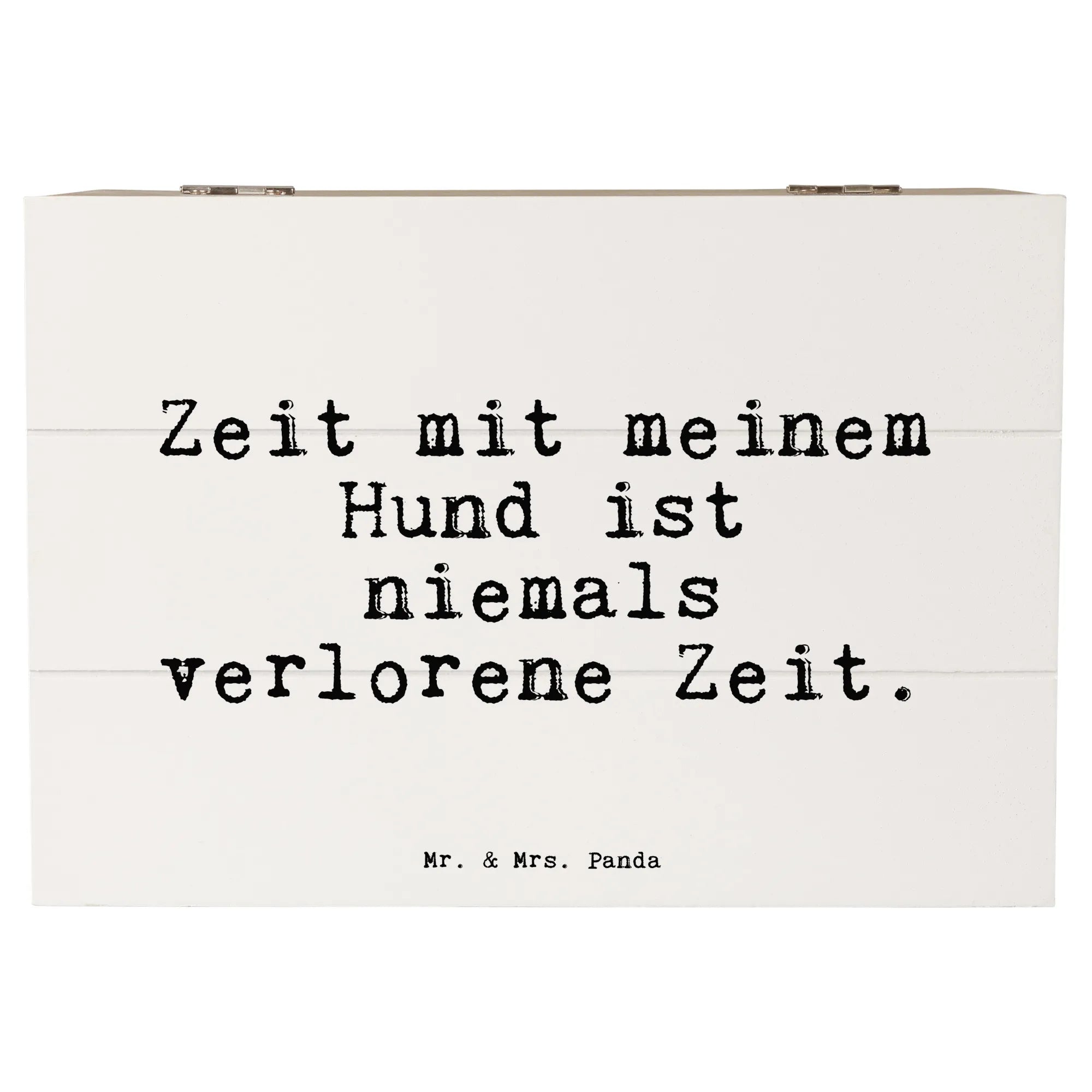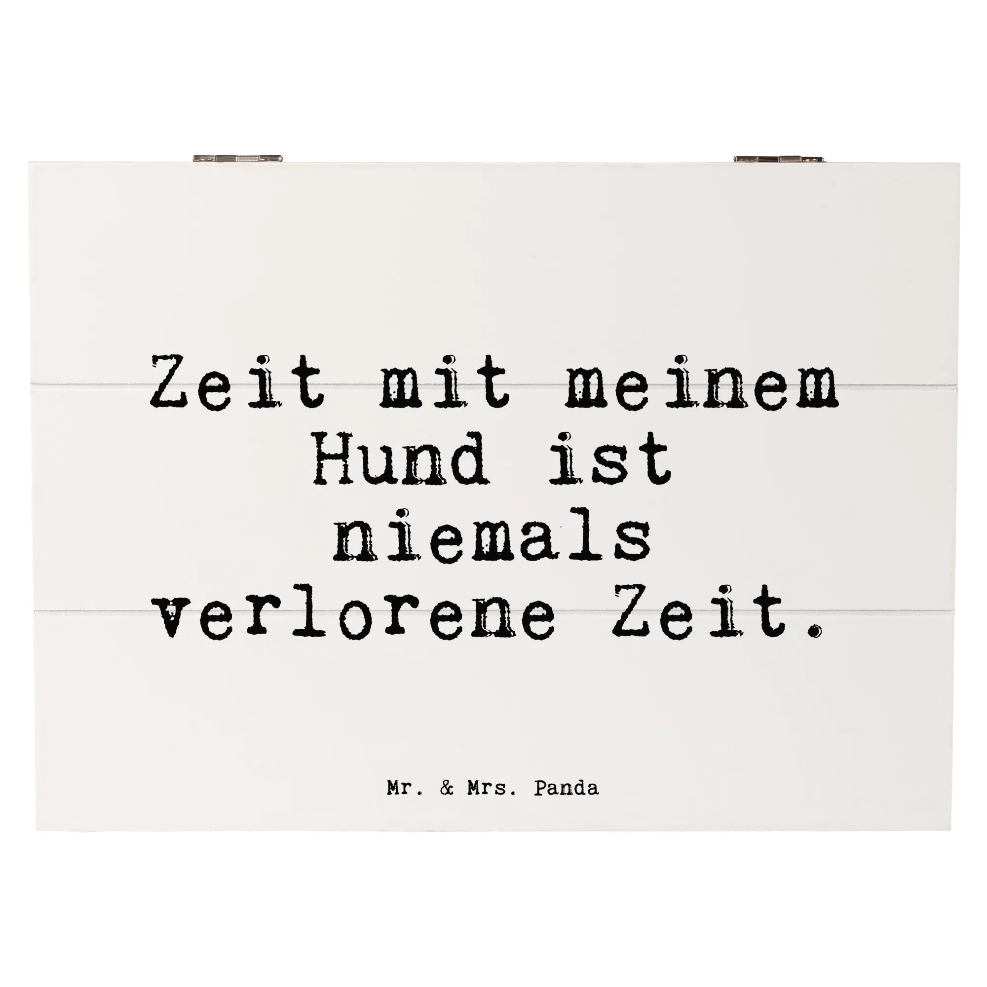 Du suchst das perfekte Geschenk für Hundeliebhaber? Unsere wunderschöne Holzkiste "Zeit mit meinem Hund ist niemals verlorene Zeit" von Mr. & Mrs. Panda ist genau das Richtige! Diese zauberhafte Erinnerungskiste ist nicht nur ein praktischer Aufbewahrungsort für all deine kostbaren Schätze, sondern auch ein liebevolles Statement, das jeden Hundebesitzer berührt.