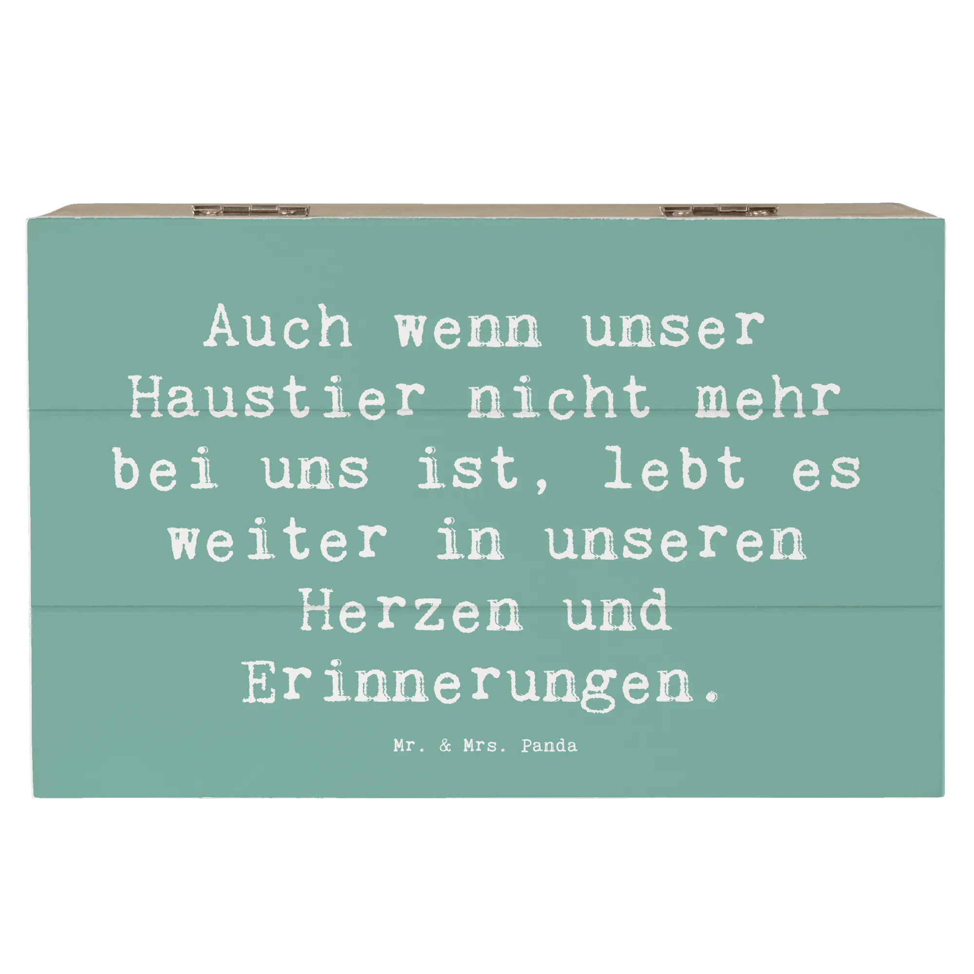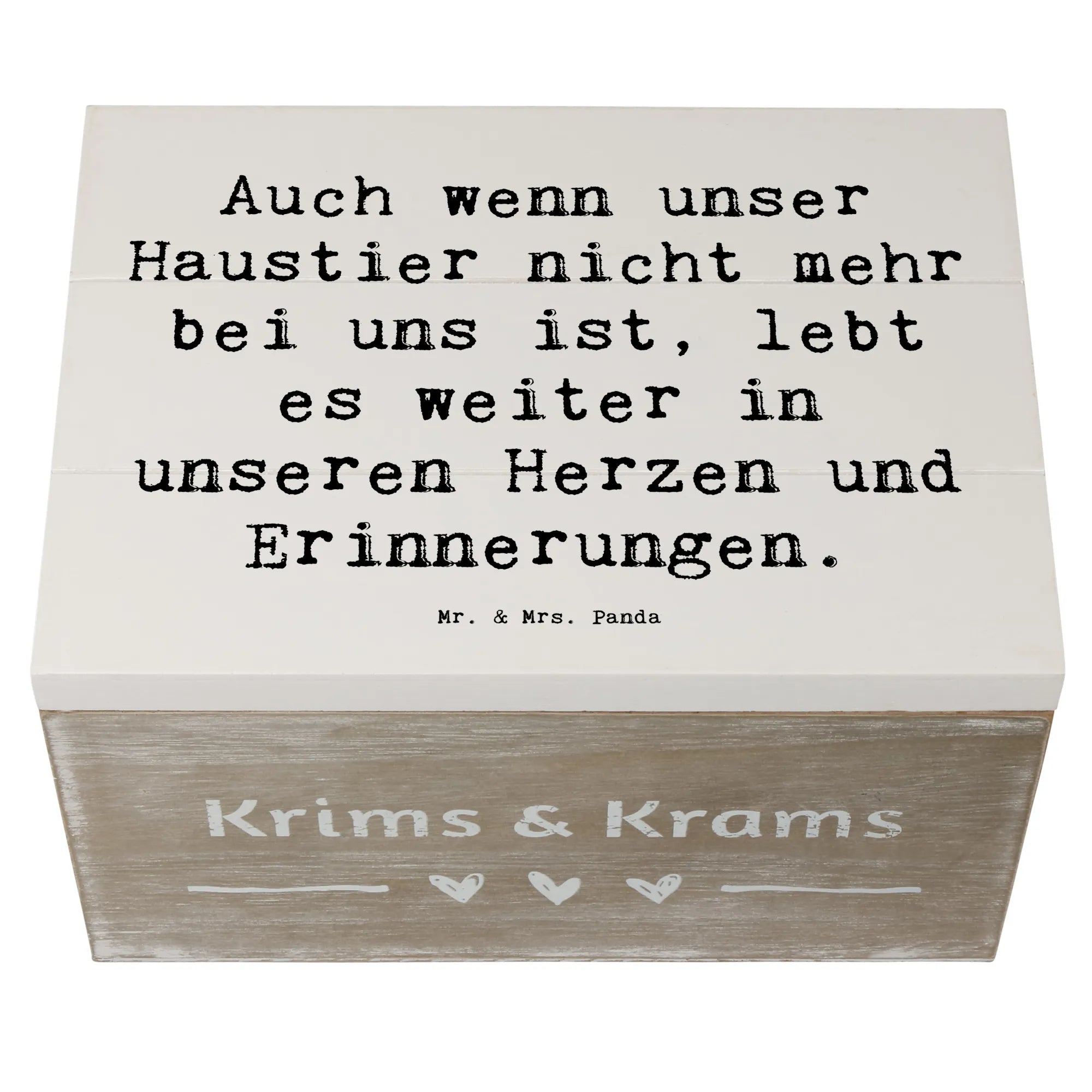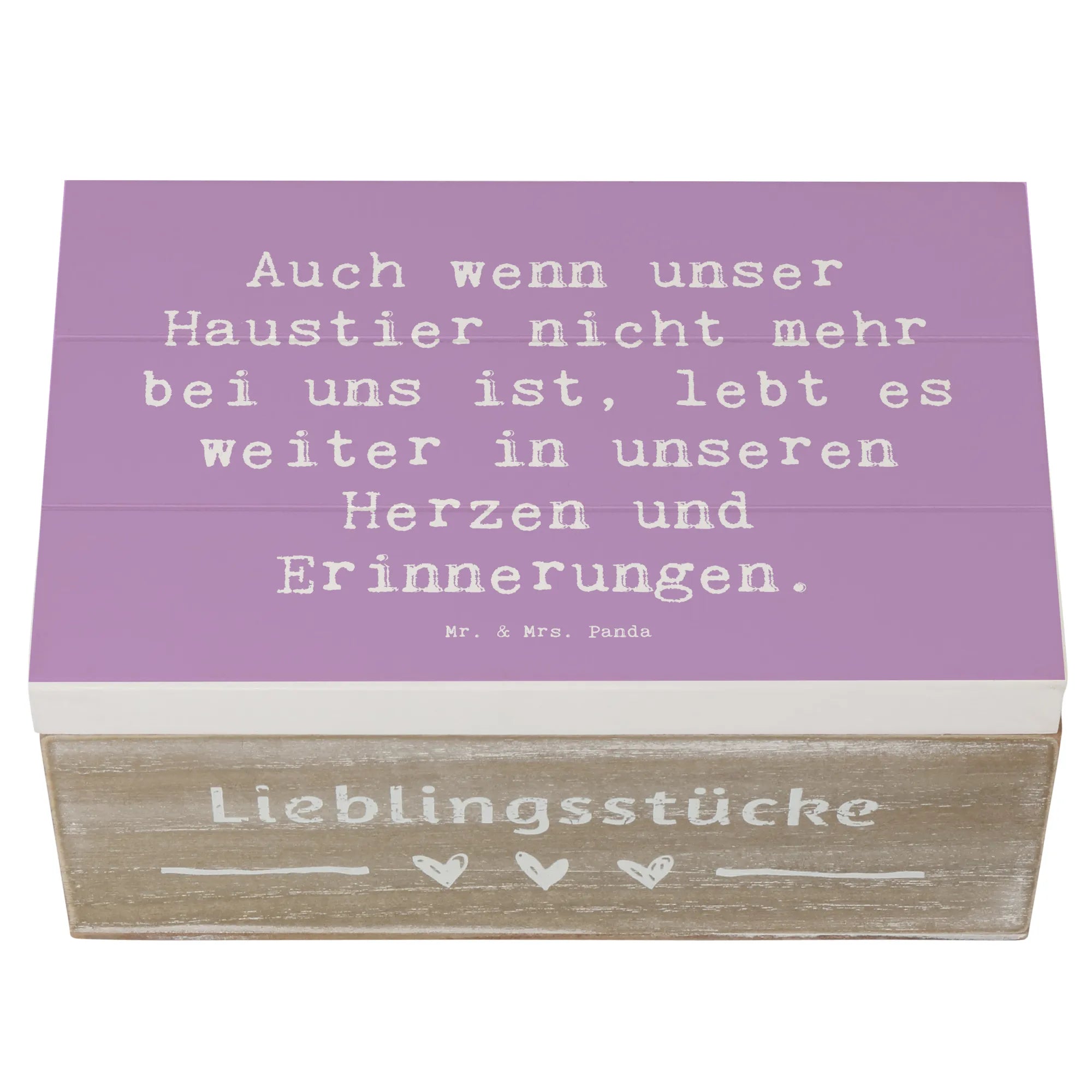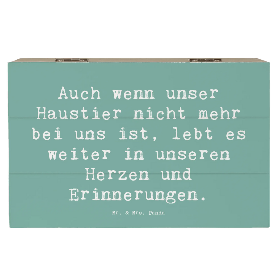 Die wunderschöne Holzkiste von Mr. & Mrs. Panda ist das perfekte Geschenk für alle, die den Verlust eines geliebten Haustieres verarbeiten möchten. Mit ihrem liebevollen Design und dem einfühlsamen Spruch 'Auch wenn unser Haustier nicht mehr bei uns ist, lebt es weiter in unseren Herzen und Erinnerungen.' bietet sie einen besonderen Ort zur Aufbewahrung von Erinnerungen und Schätzen, die uns mit unseren treuen Begleitern verbinden.