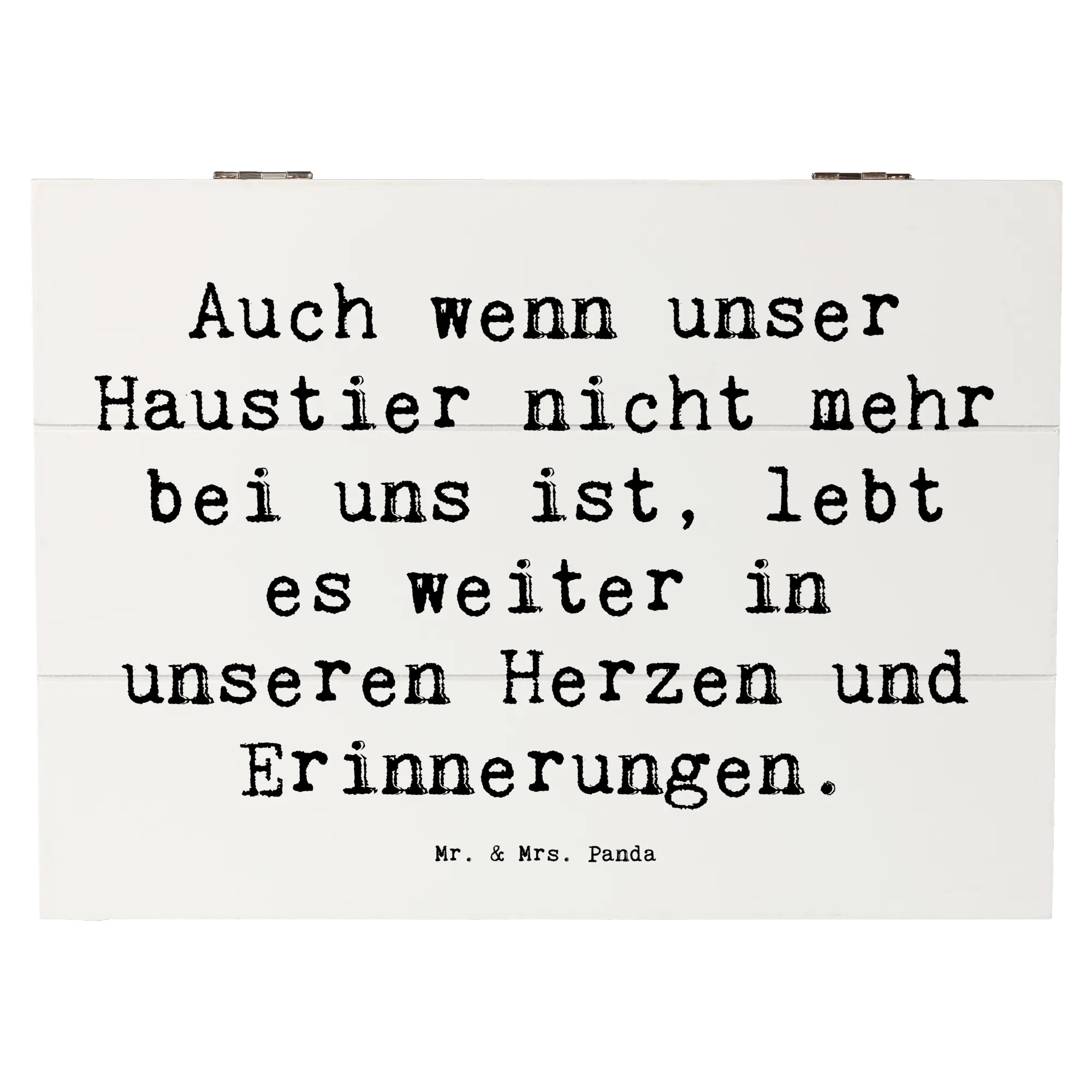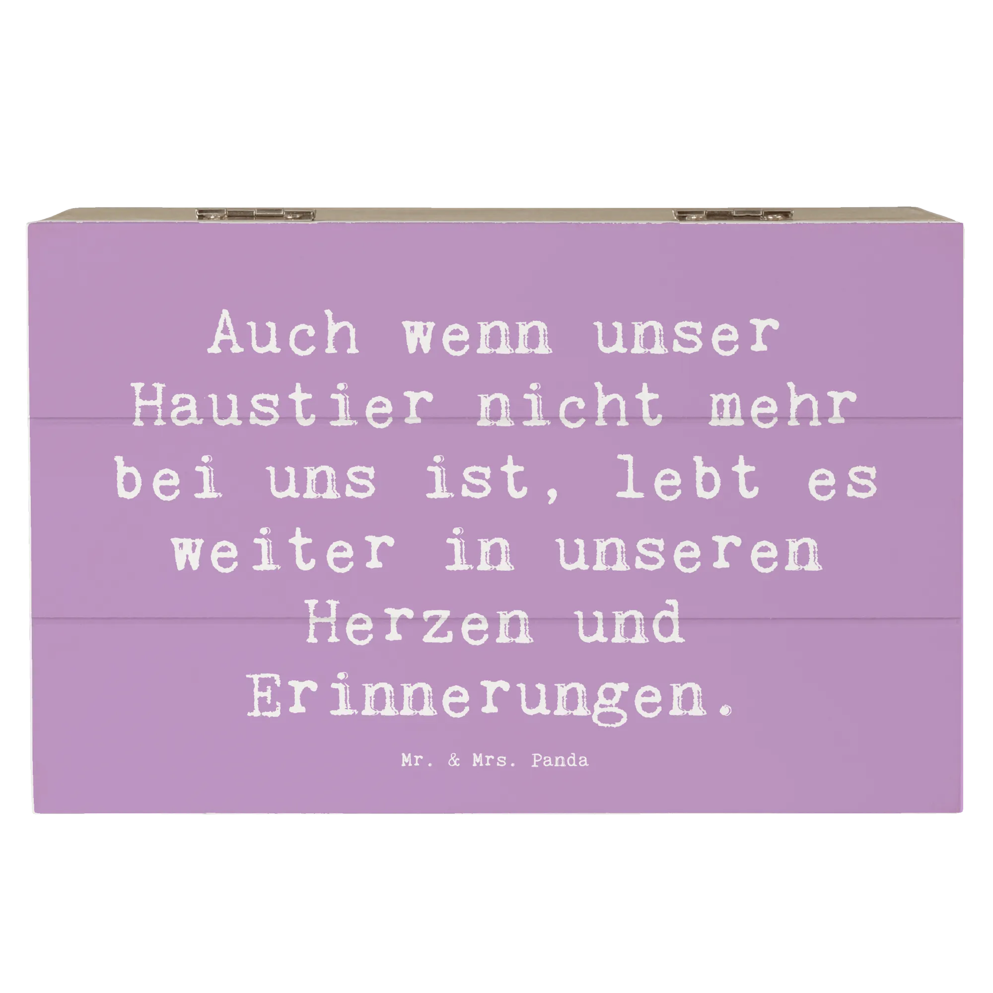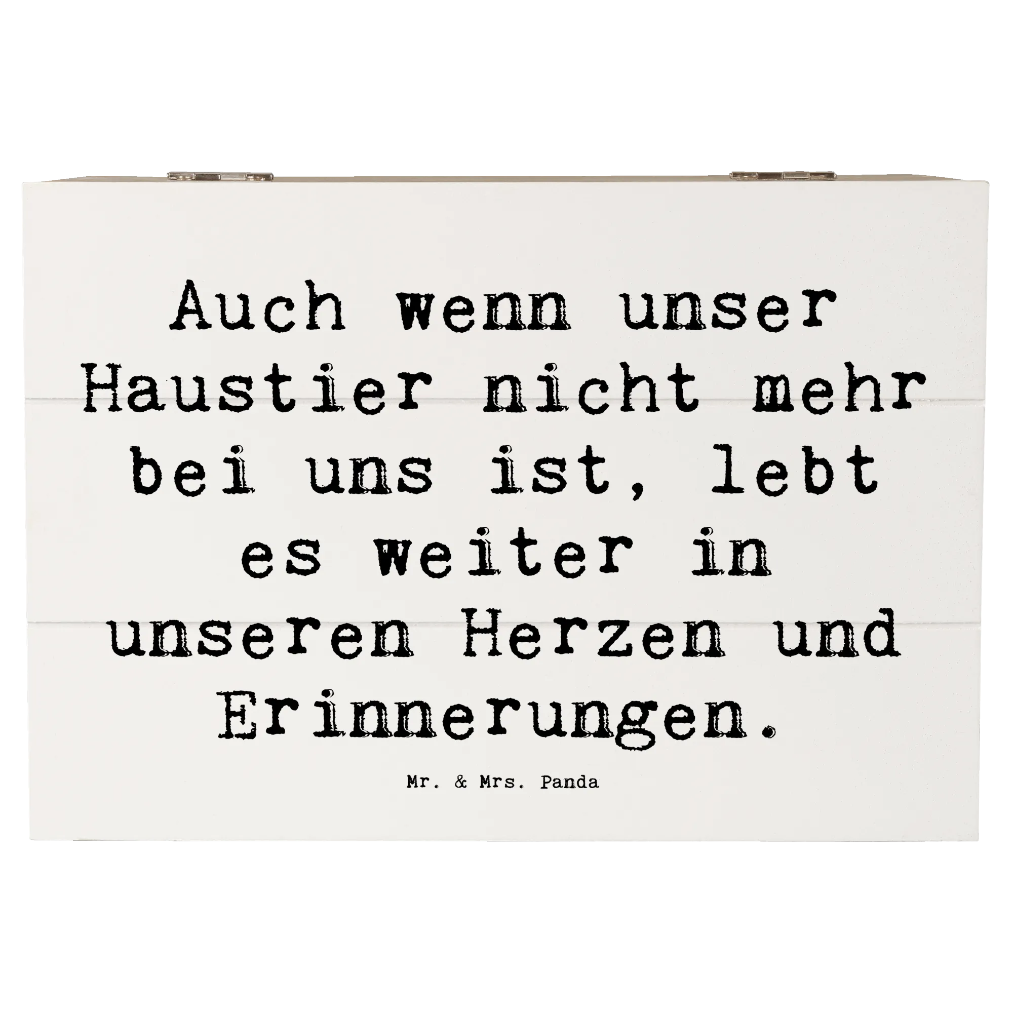 Die wunderschöne Holzkiste von Mr. & Mrs. Panda ist das perfekte Geschenk für alle, die den Verlust eines geliebten Haustieres verarbeiten möchten. Mit ihrem liebevollen Design und dem einfühlsamen Spruch 'Auch wenn unser Haustier nicht mehr bei uns ist, lebt es weiter in unseren Herzen und Erinnerungen.' bietet sie einen besonderen Ort zur Aufbewahrung von Erinnerungen und Schätzen, die uns mit unseren treuen Begleitern verbinden.