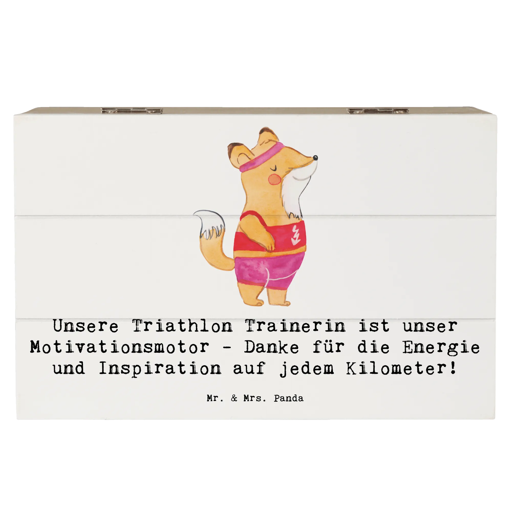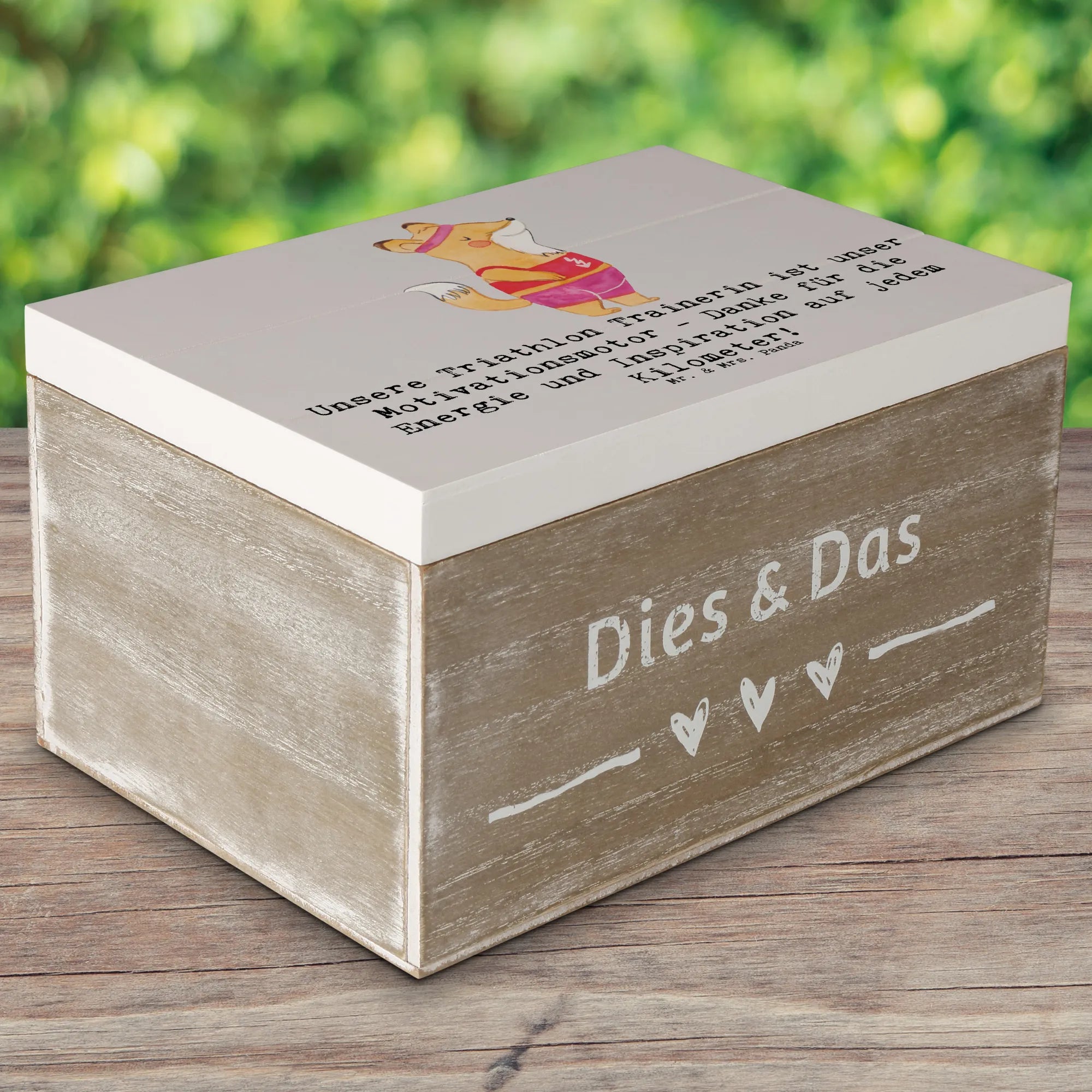 Die Holzkiste "Triathlon Trainerin" von Mr. & Mrs. Panda ist das perfekte Geschenk für jede Trainerin, die sich mit Herzblut für ihre Sportler einsetzt. Diese wunderschöne Kiste ist nicht nur ein praktischer Aufbewahrungsort, sondern auch eine liebevolle Erinnerung an all die schönen Momente, die ihr gemeinsam erlebt habt.