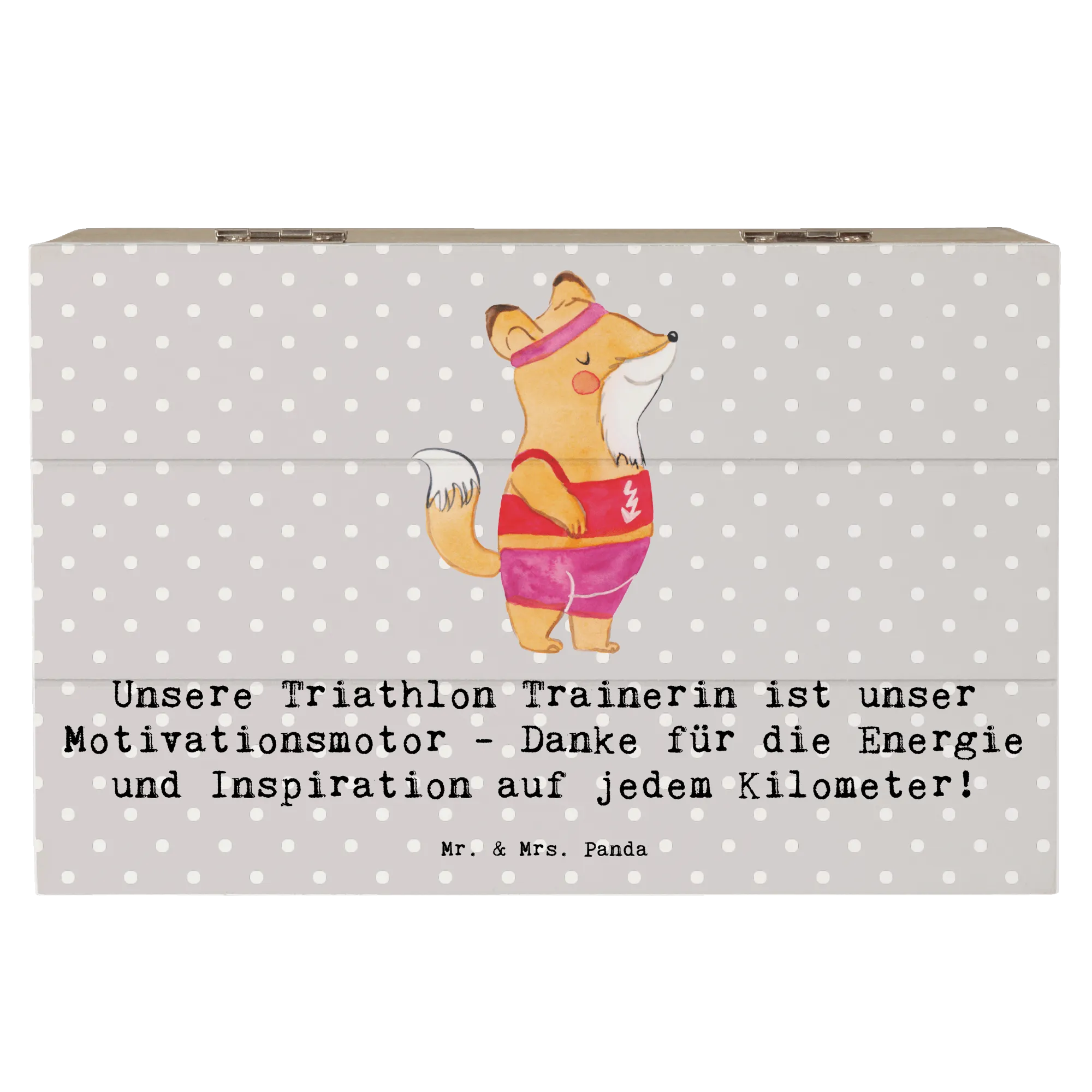Holzkiste Triathlon Trainerin - 22 x 15 cm - Grau Pastell