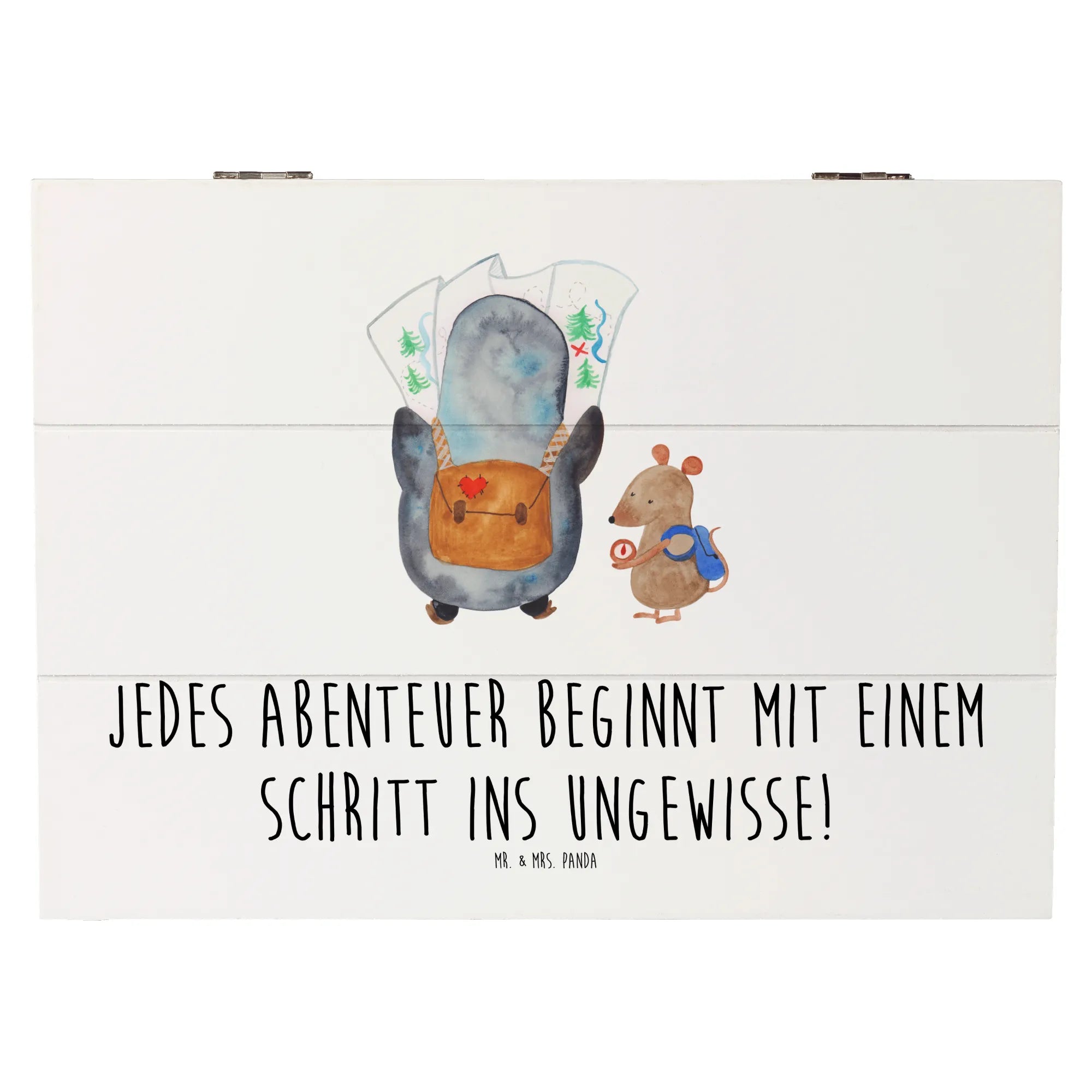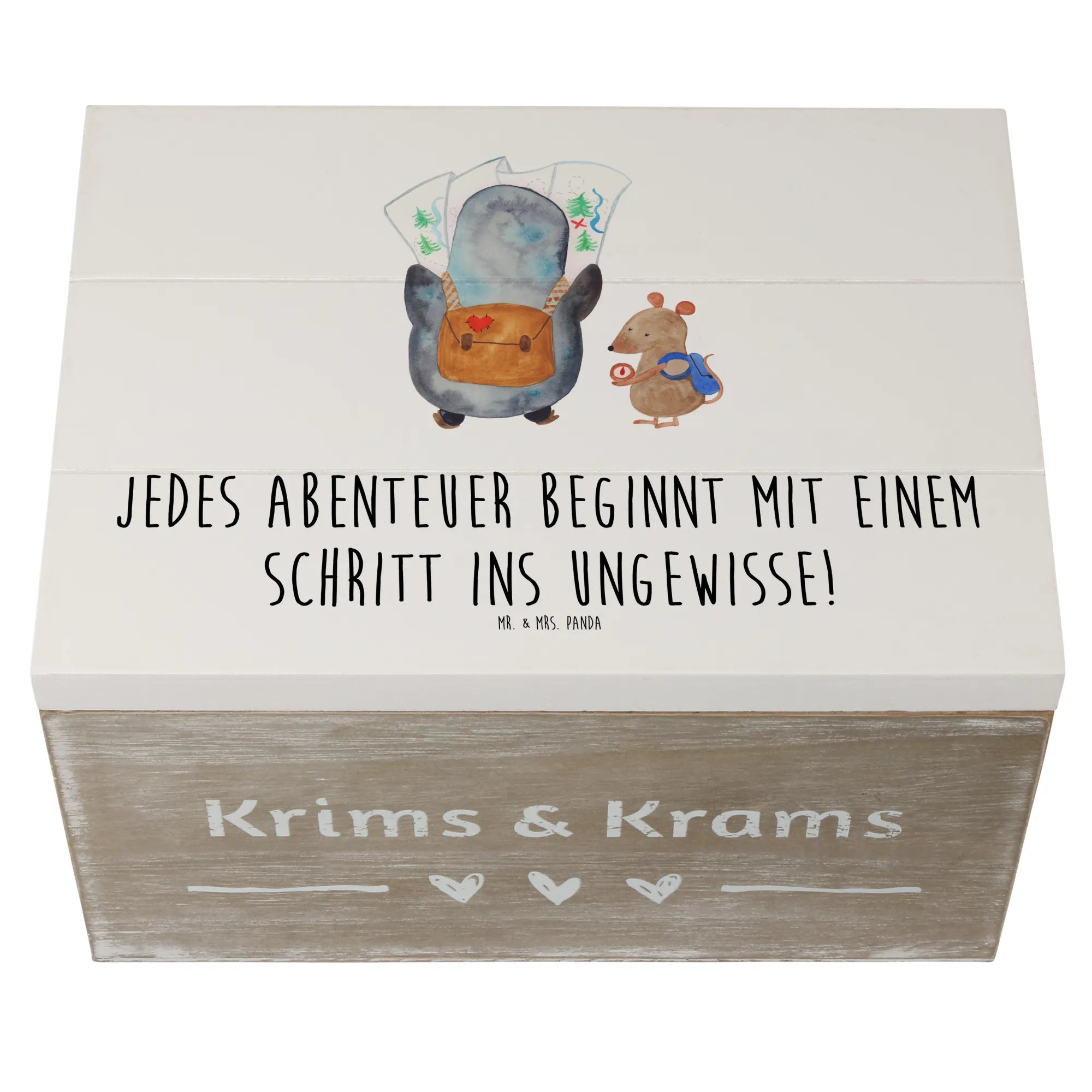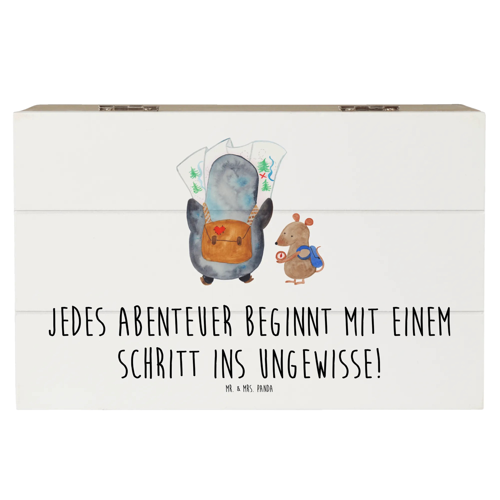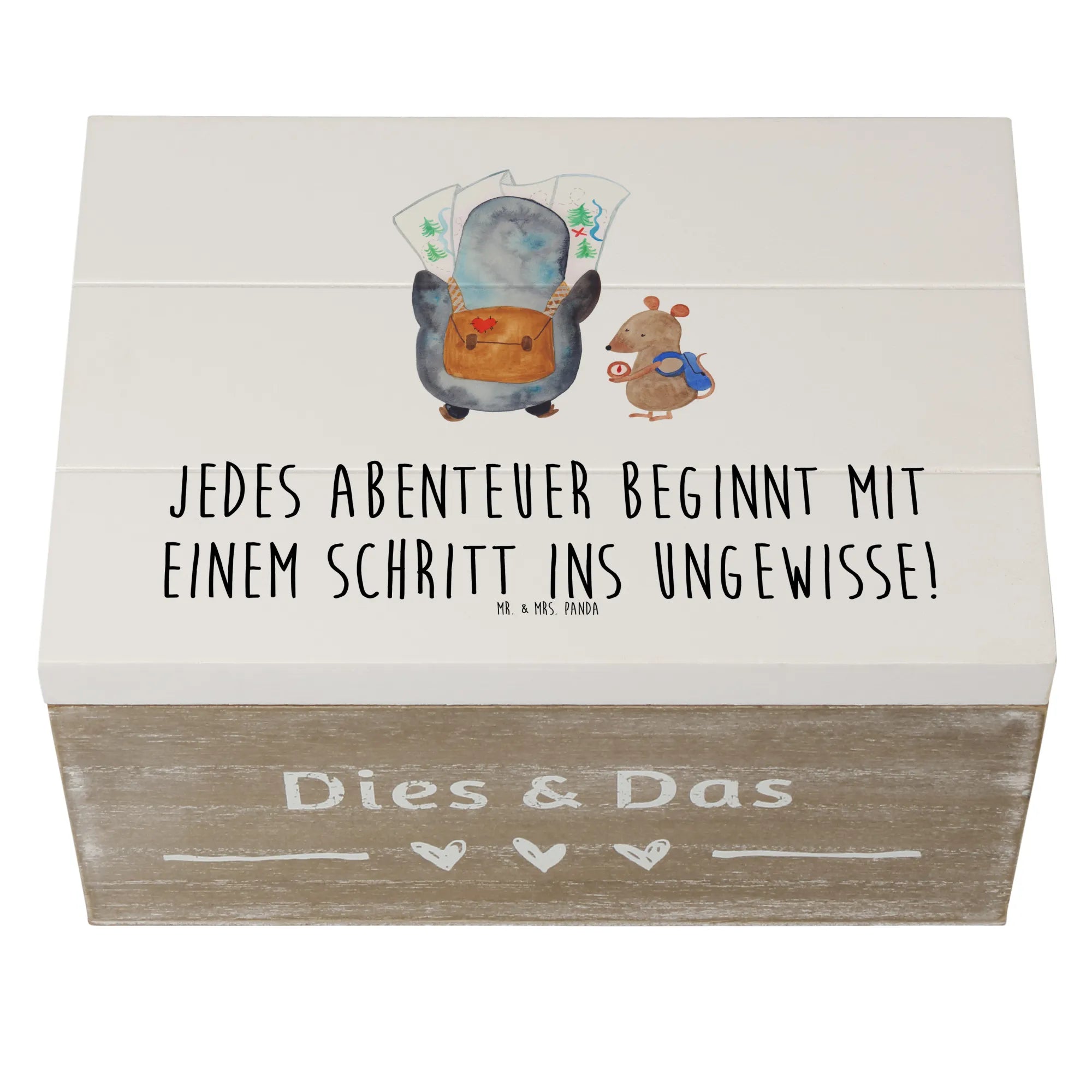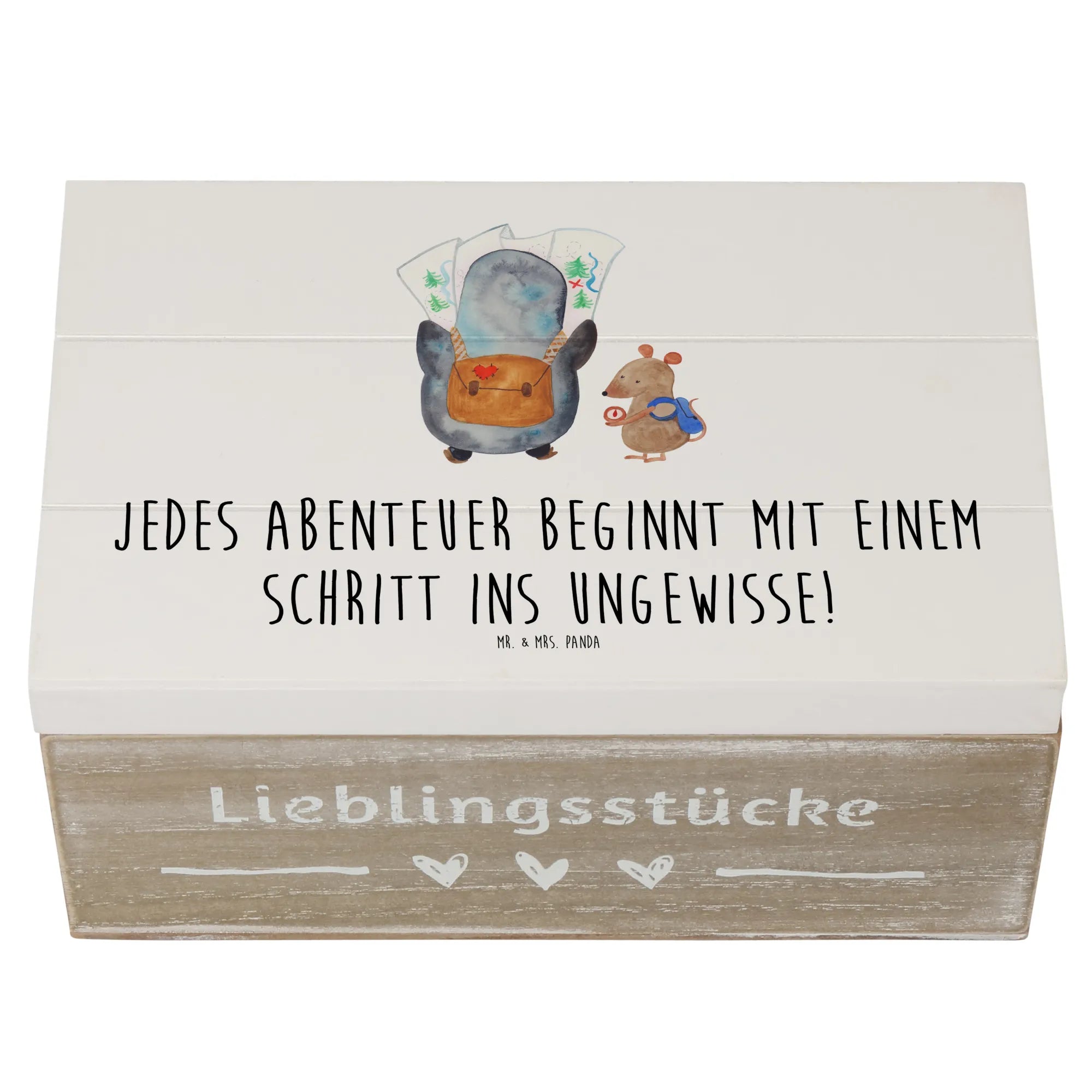 Entdecke die wunderschöne Holzkiste von Mr. & Mrs. Panda, die nicht nur ein praktischer Aufbewahrungsort für deine Erinnerungen ist, sondern auch mit einem inspirierenden Motiv versehen ist: "Jedes Abenteuer beginnt mit einem Schritt ins Ungewisse!". Diese Kiste aus hochwertiger, robuster Holzfaser bietet genug Platz für all deine Schätze, sei es Schmuck, Fotos oder andere besondere Gegenstände aus deiner Kindheit, Kommunion oder Konfirmation.