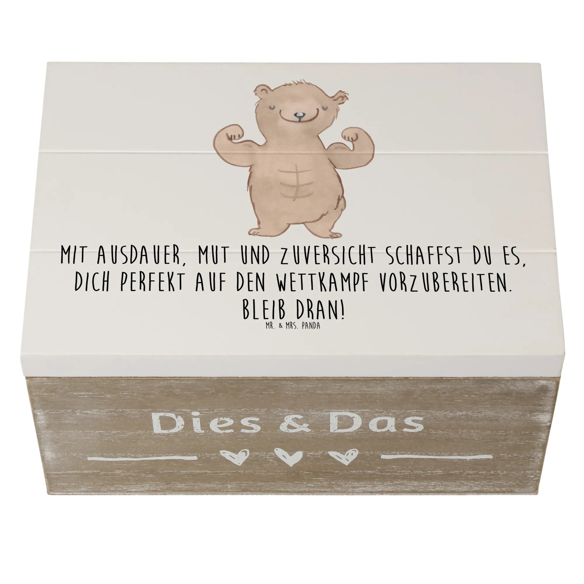Die wunderschöne Holzkiste von Mr. & Mrs. Panda ist das ideale Geschenk für Sportler, die sich auf einen Wettkampf vorbereiten! Mit dem Motiv "Wettkampfvorbereitung meistern" und dem inspirierenden Slogan "Mit Ausdauer, Mut und Zuversicht schaffst du es, dich perfekt auf den Wettkampf vorzubereiten. Bleib dran!" bietet diese Kiste nicht nur einen praktischen Stauraum, sondern auch eine tägliche Motivation.