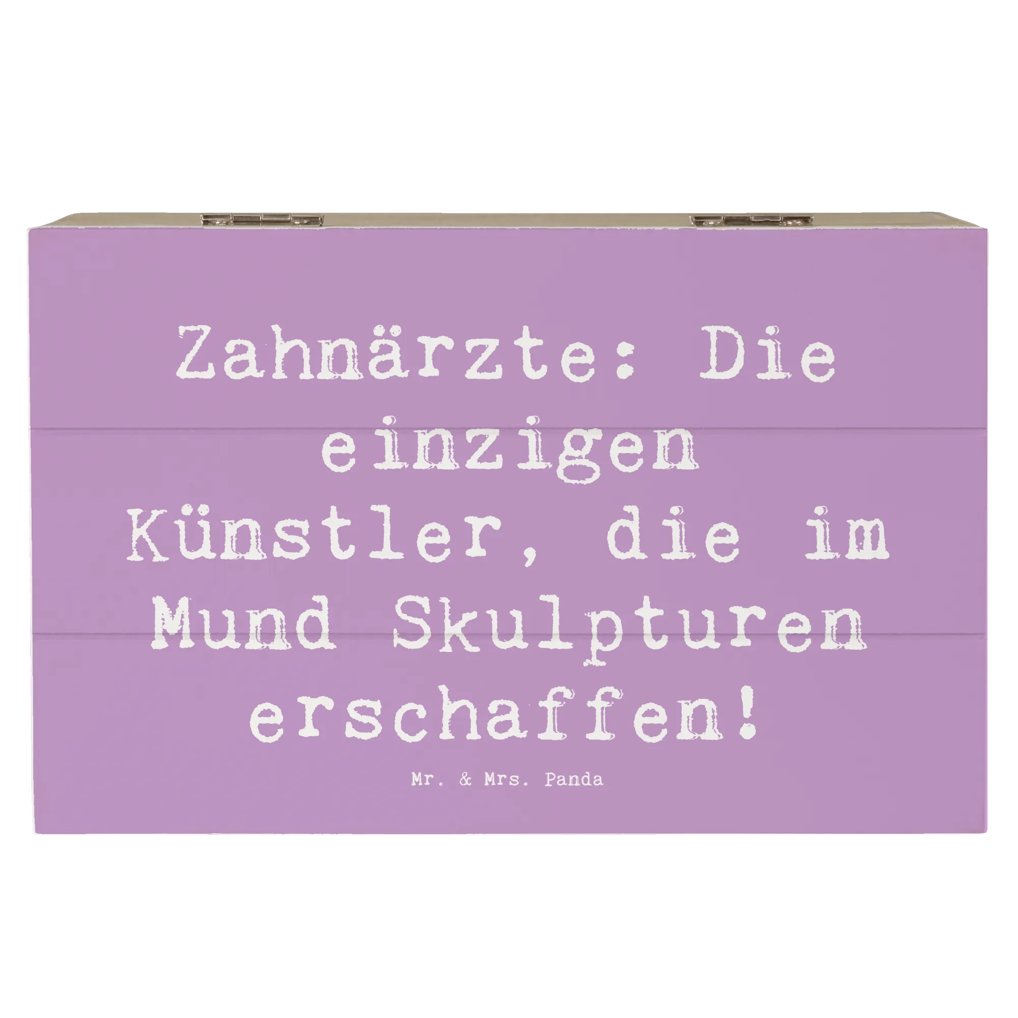 Du suchst das perfekte Geschenk für einen Zahnarzt oder einen zahnmedizinisch begeisterten Freund? Dann ist die wunderschöne Holzkiste von Mr. & Mrs. Panda mit dem lustigen Spruch "Zahnärzte: Die einzigen Künstler, die im Mund Skulpturen erschaffen!" genau das Richtige!