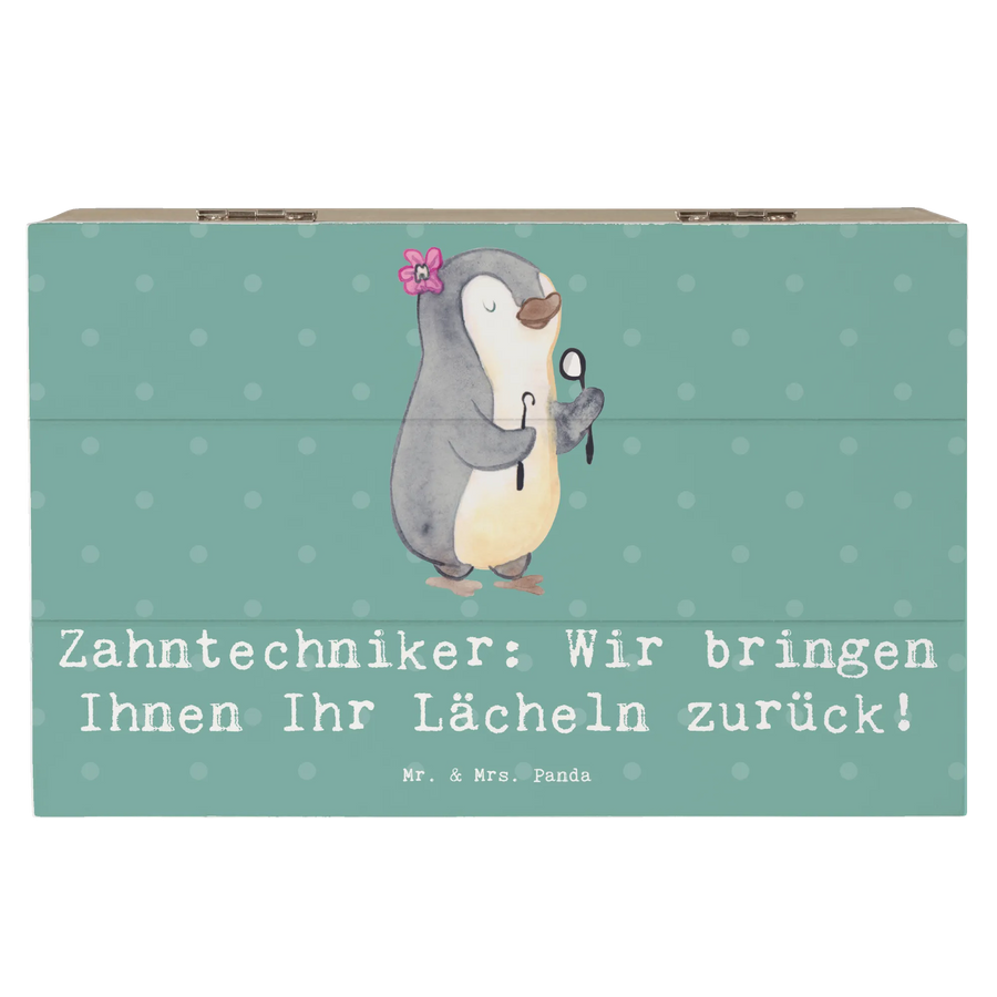 Die wunderschöne Holzkiste von Mr. & Mrs. Panda ist das perfekte Geschenk für Zahntechniker und ihre Liebsten! Mit dem einladenden Slogan 'Zahntechniker: Wir bringen Ihnen Ihr Lächeln zurück!' wird diese Kiste zum besonderen Aufbewahrungsort für Erinnerungen und Schätze.