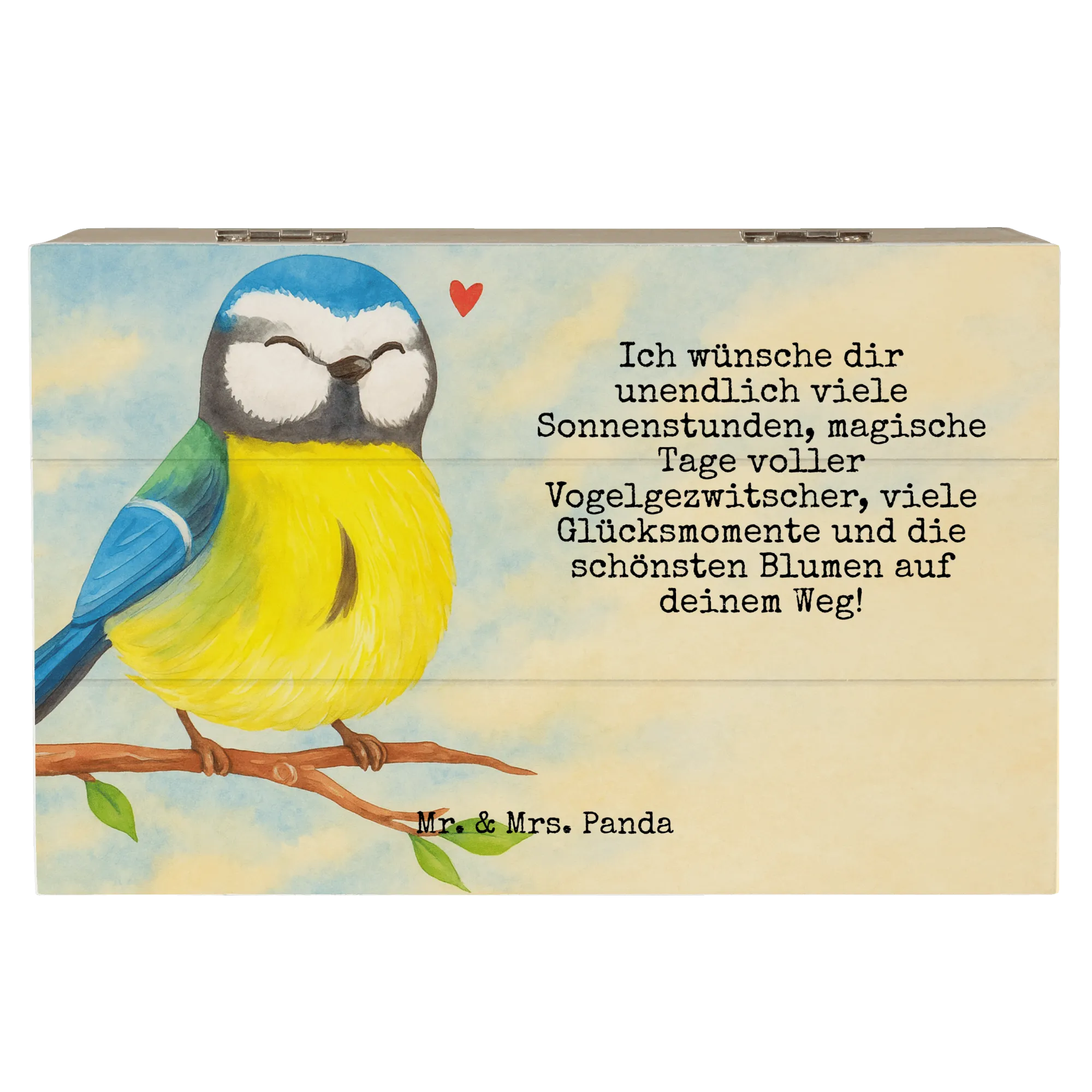 holztruhe Vogel Blaumeise Design - 22 x 15 cm - mit Spruch