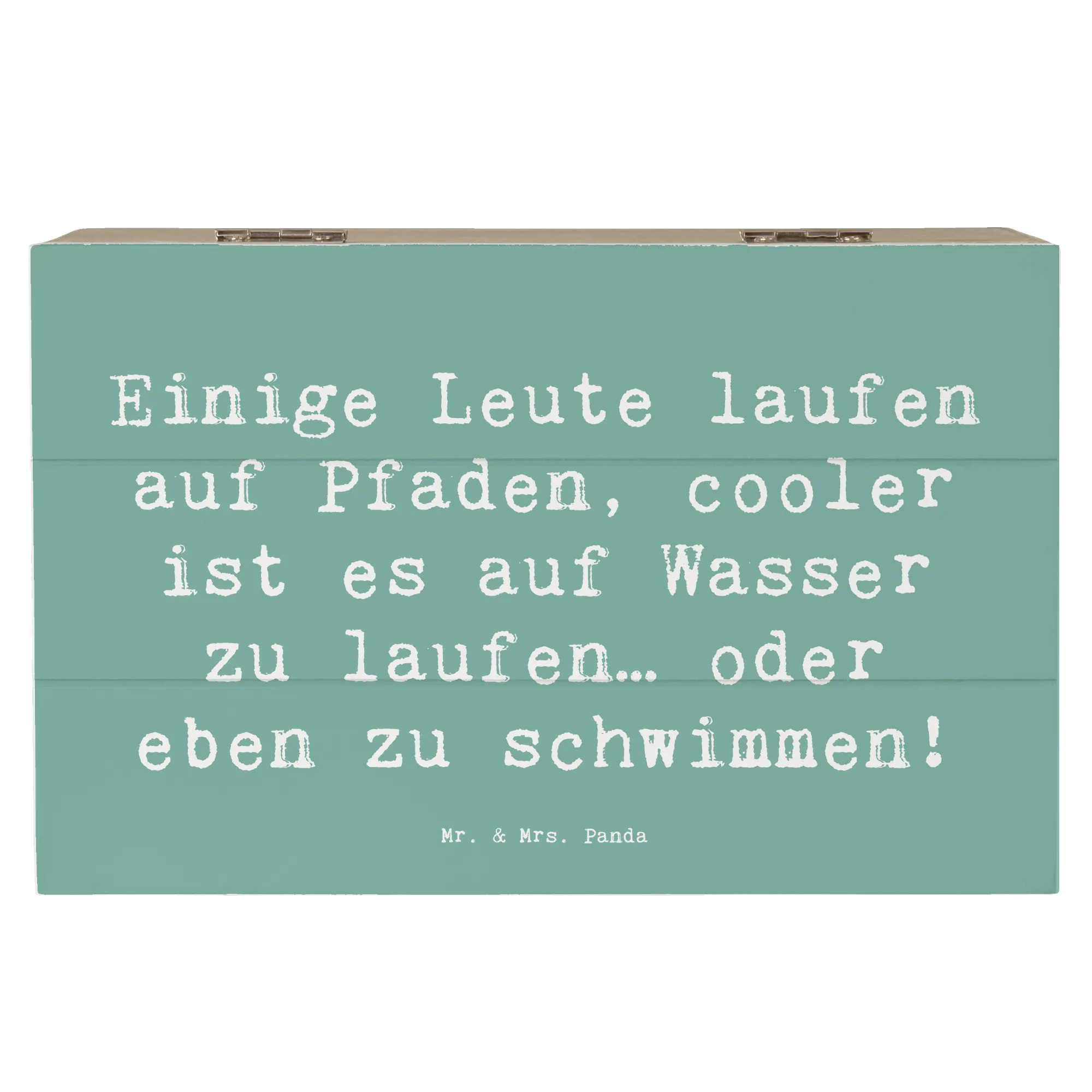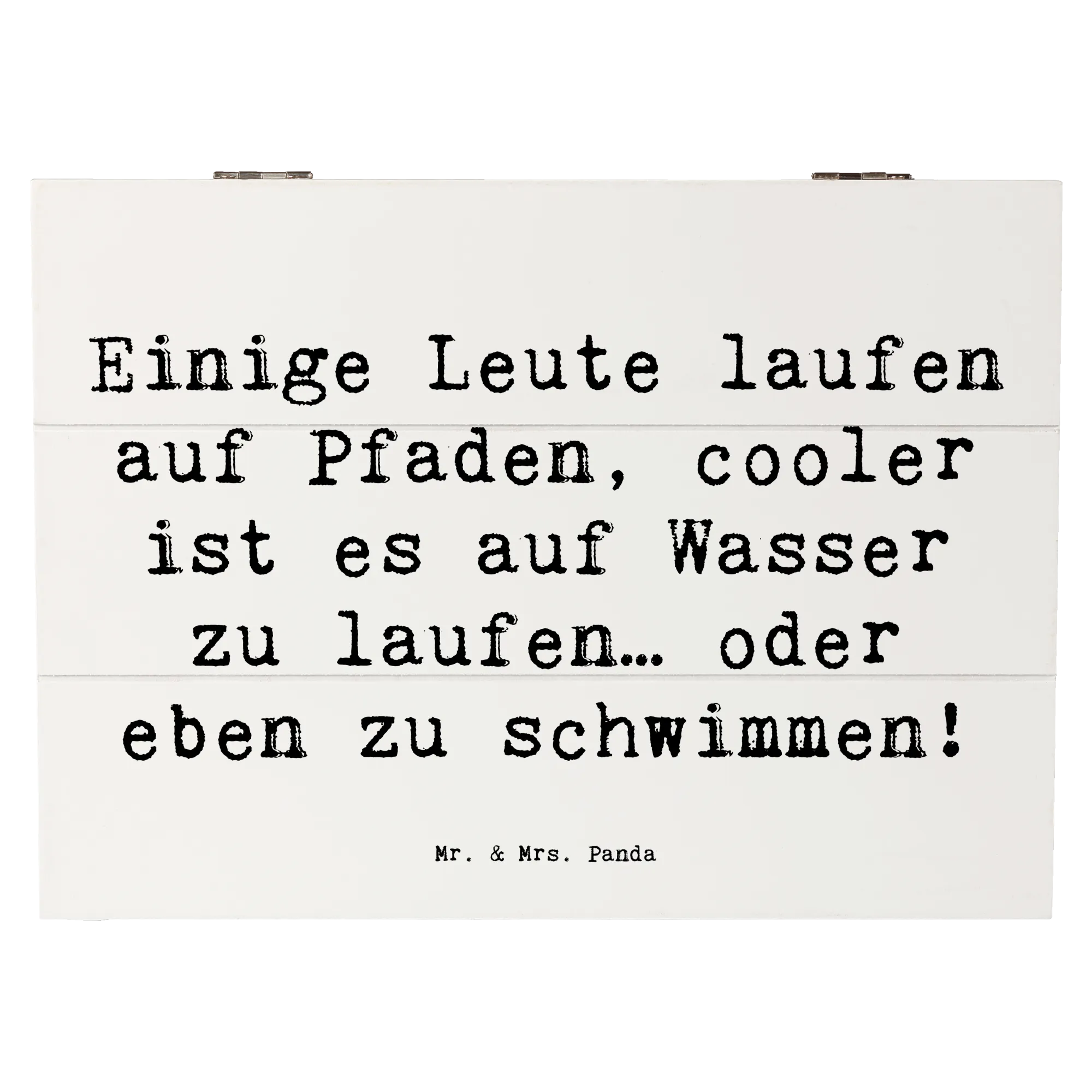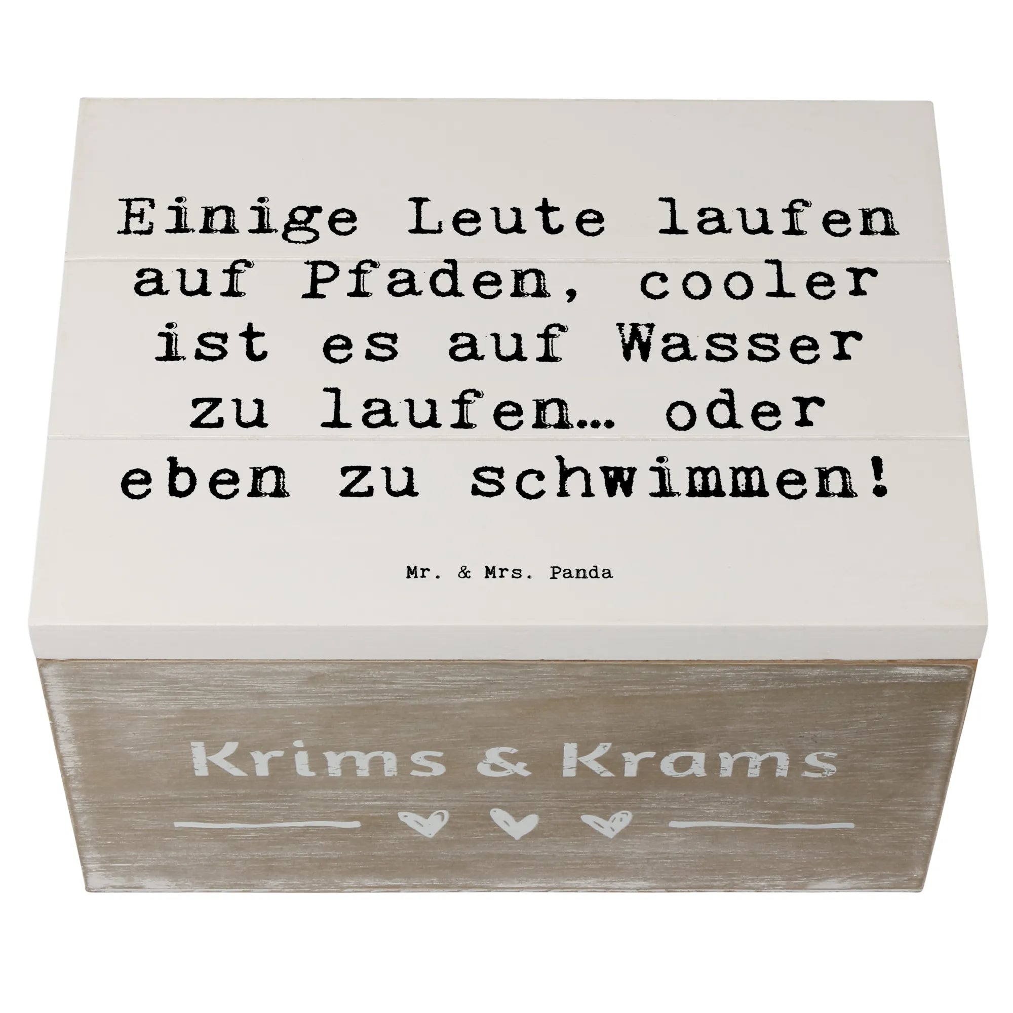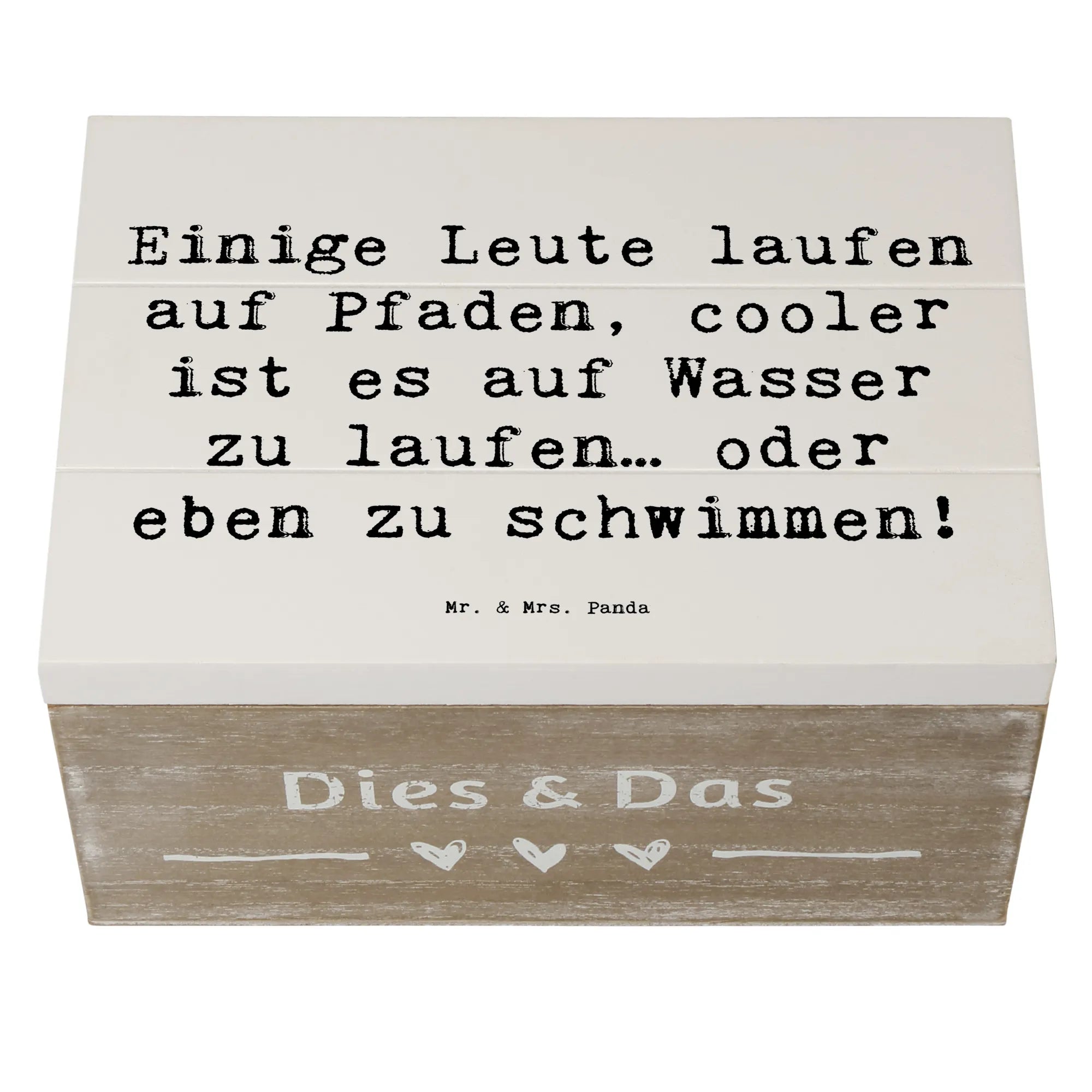 Mr. & Mrs. Panda Holzkiste "Schwimmen" – Die charmante Aufbewahrungsbox für alle Wasserfreunde! Bedruckt mit dem fröhlichen Spruch „Einige Leute laufen auf Pfaden, cooler ist es auf Wasser zu laufen… oder eben zu schwimmen!”, bringt diese Holzbox Stil und Funktion in jedes Zuhause.