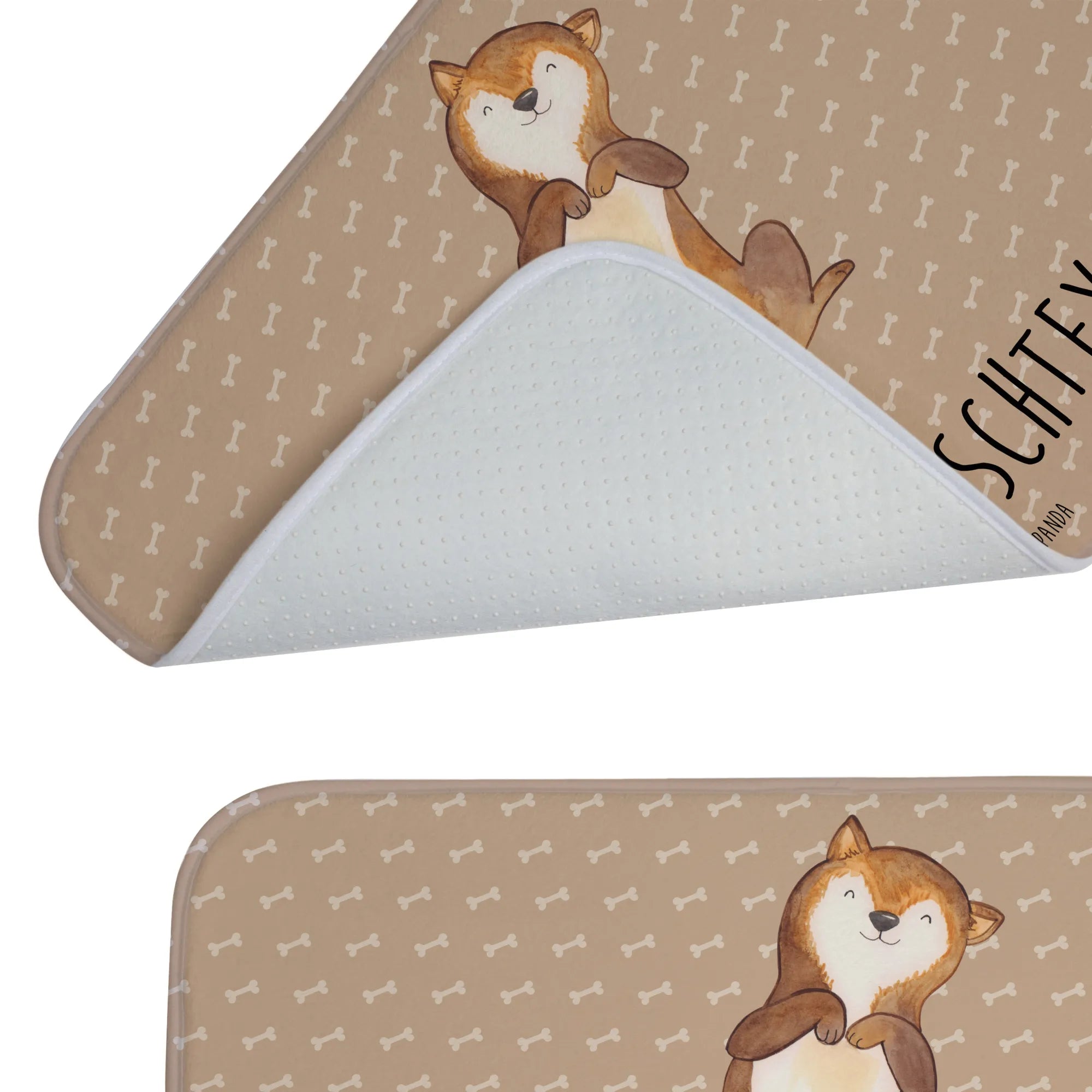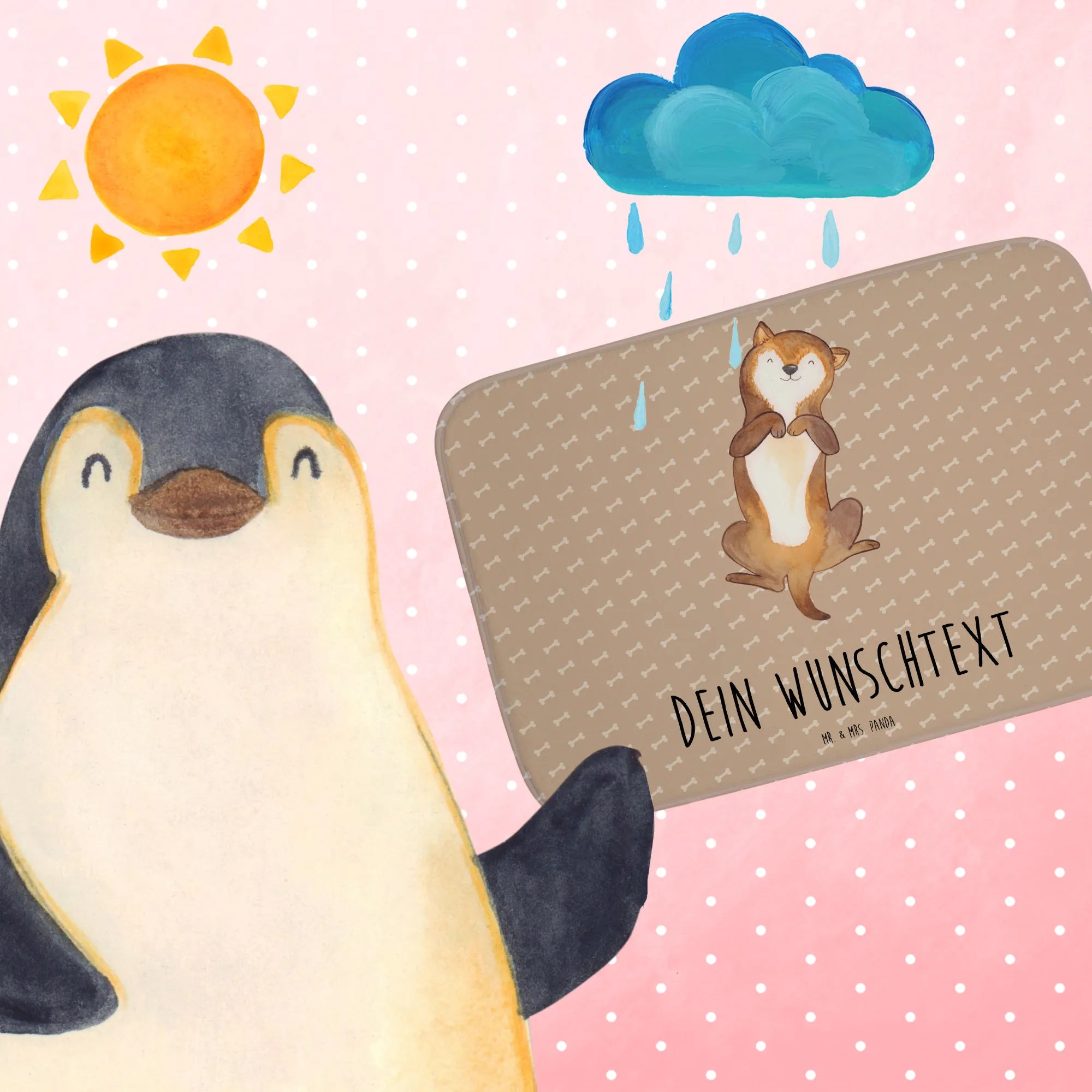 Der personalisierte Badvorleger "Hund Bauchkraulen" von Mr. & Mrs. Panda ist das perfekte Geschenk für alle Hunde- und Tierliebhaber! 🐶✨ Dieser flauschige Badteppich mit einem niedlichen Hundemotiv, der begeistert auf dem Rücken liegt und darauf wartet, gekrault zu werden, bringt ein Stück Hundeglück in jedes Badezimmer.