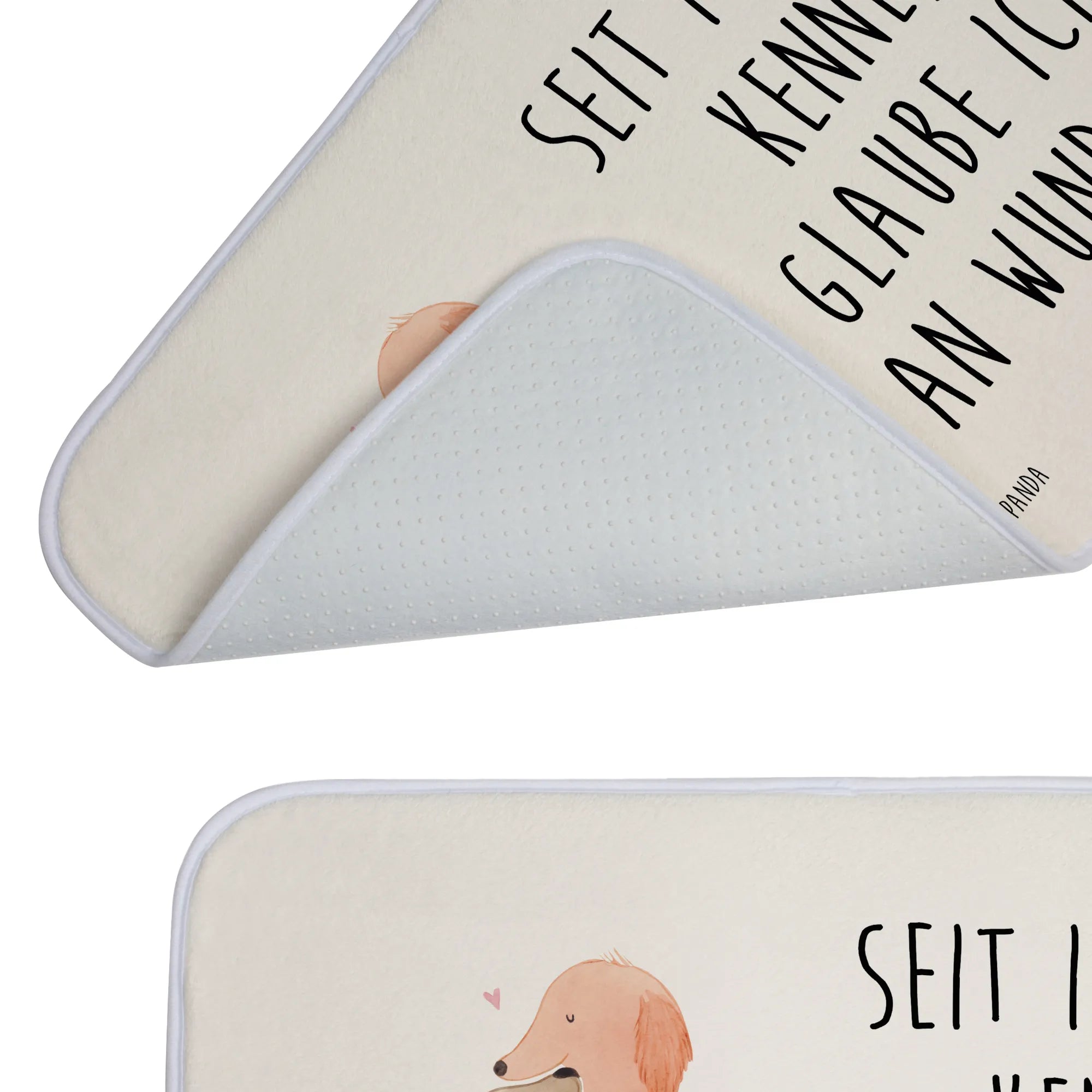 Das tolle an unserem Badteppich ist, dass er auch für Hundeliebhaber ein ganz besonderes Geschenk darstellt. Der Spruch „Seit ich dich kenne, glaube ich an Wunder“ macht diesen Vorleger zu einer liebevollen Botschaft in deinem Bad. Ob zum Einzug, zum Geburtstag oder einfach als kleine Aufmerksamkeit – dieser Badteppich bringt Freude und Style in jedes Badezimmer. Beziehungen zu Hunden sind etwas ganz Besonderes, und mit diesem Badvorleger zeigst du deine Liebe zu deinem pelzigen Freund.