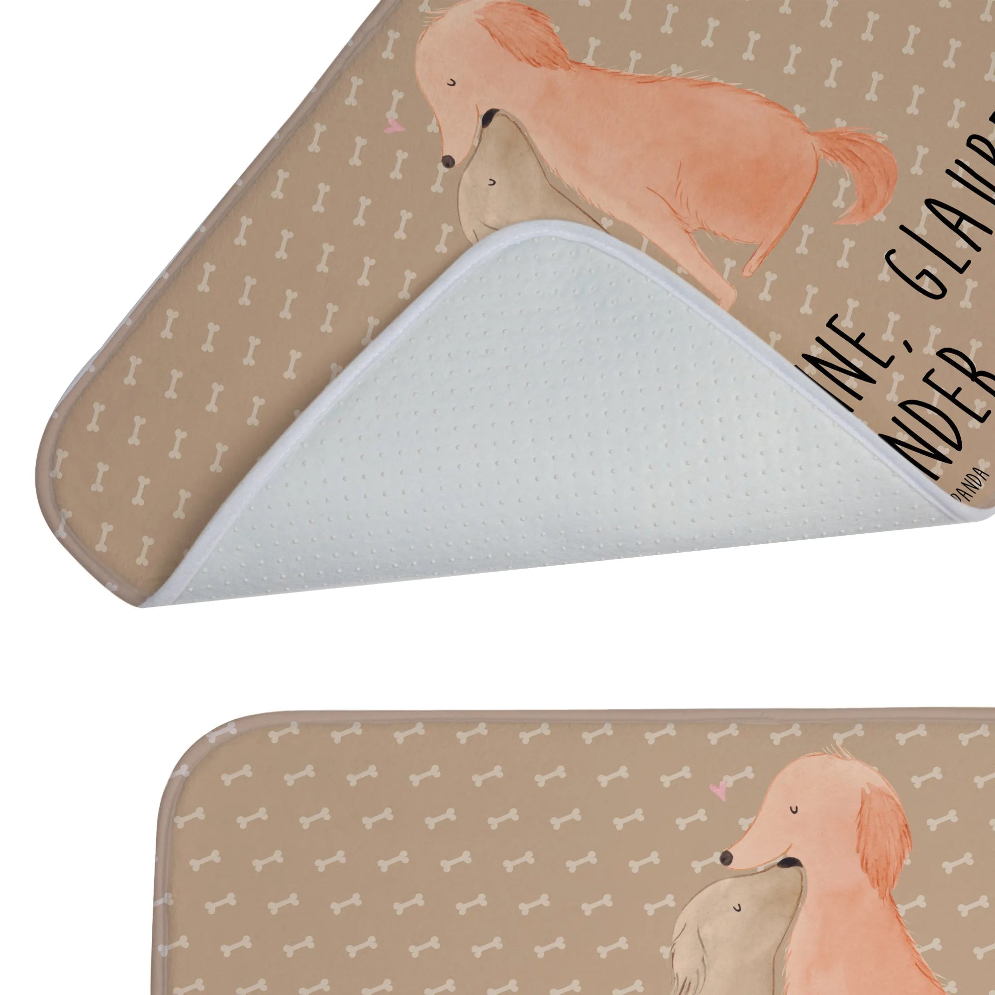 Außerdem ist dieser Badteppich pflegeleicht und kann bei 30°C in der Maschine gewaschen werden. So bleibt dein Bad immer frisch und einladend. Lass dich von der flauschigen Oberfläche und der hohen Saugfähigkeit begeistern. Die Anti-Rutsch-Gumminoppen sorgen dafür, dass der Badvorleger immer sicher an seinem Platz bleibt und ein Ausrutschen nach dem Duschen verhindert. Verleihe deinem Badezimmer einen Hauch von Eleganz und Gemütlichkeit mit dem Badvorleger "Hunde Liebe" von Mr. & Mrs. Panda, einem perfekten Geschenk für jeden Hundebesitzer und Tierliebhaber!
