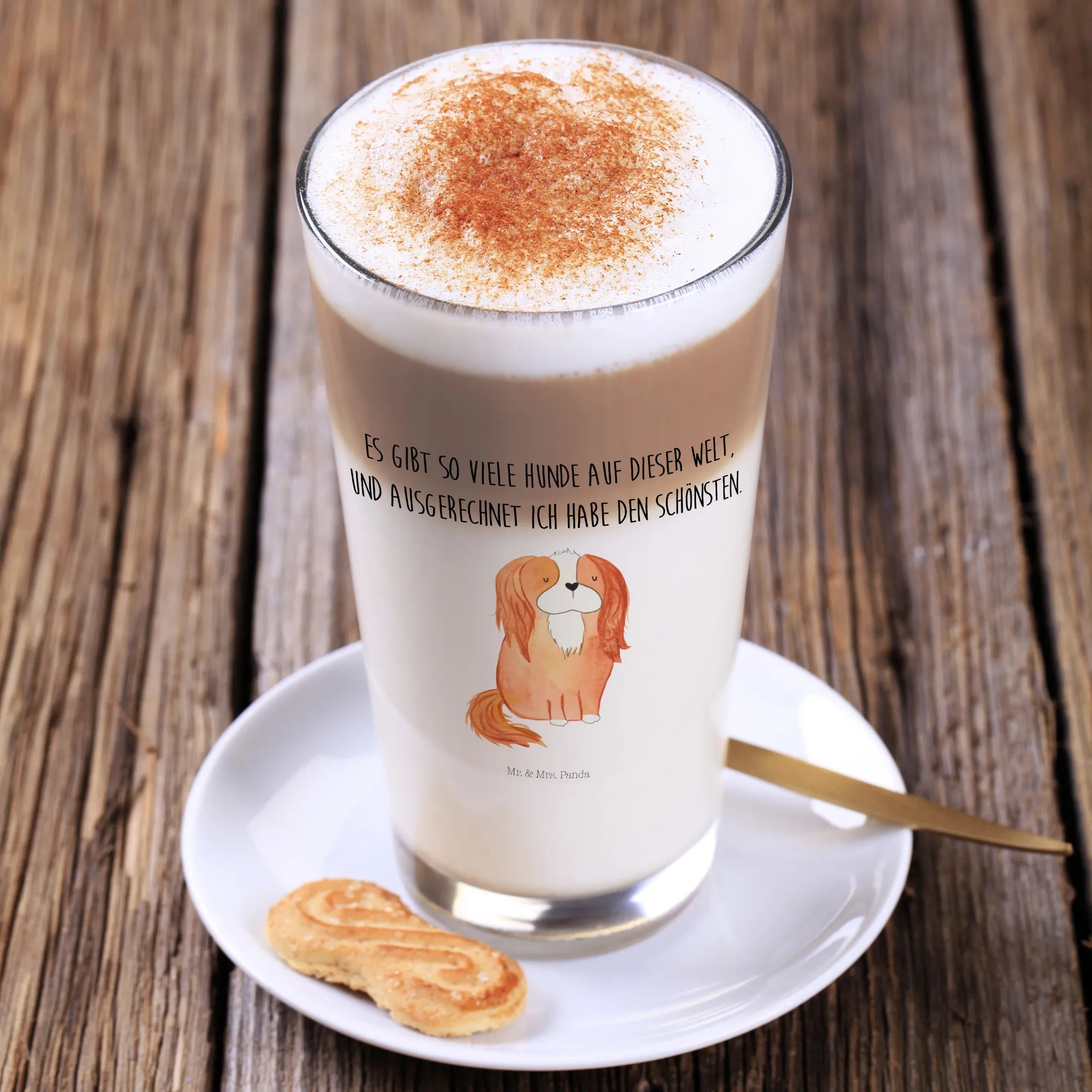 Das wunderschöne Cappuccino Glas mit dem niedlichen Motiv des Cavalier King Charles Spaniels ist das perfekte Geschenk für jeden Hundeliebhaber. Mit einer edlen, satinierten Oberfläche aus dickwandigem Premiumglas ist dieses Trinkglas nicht nur ein Blickfang, sondern auch äußerst praktisch. Ob für Latte Macchiato oder als Longdrinkglas, dieses vielseitige Glas eignet sich für viele köstliche Getränke. Die Hitzebeständigkeit sorgt dafür, dass Du auch heiße Getränke genießen kannst, ohne Dir Gedanken über die Qualität des Glases machen zu müssen.