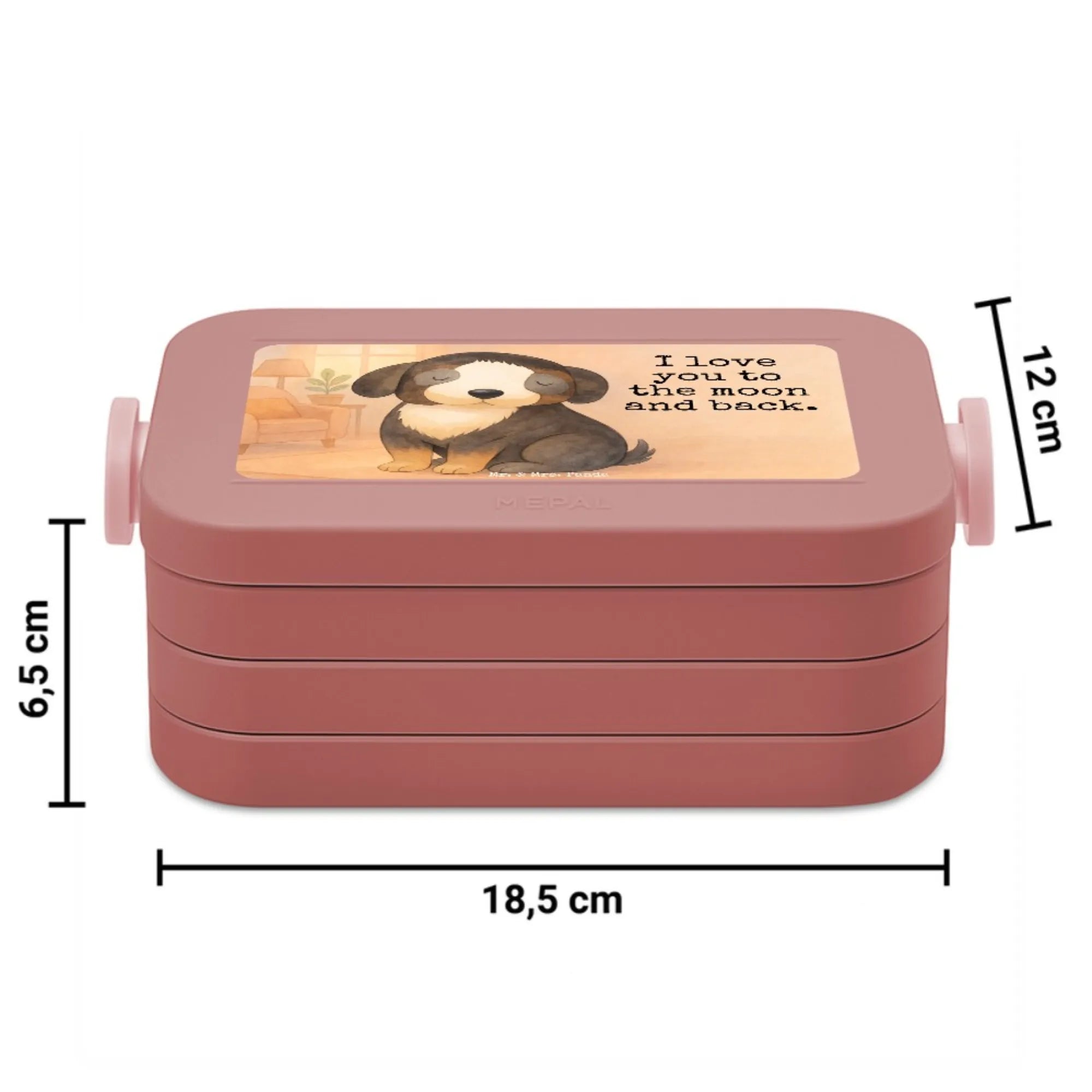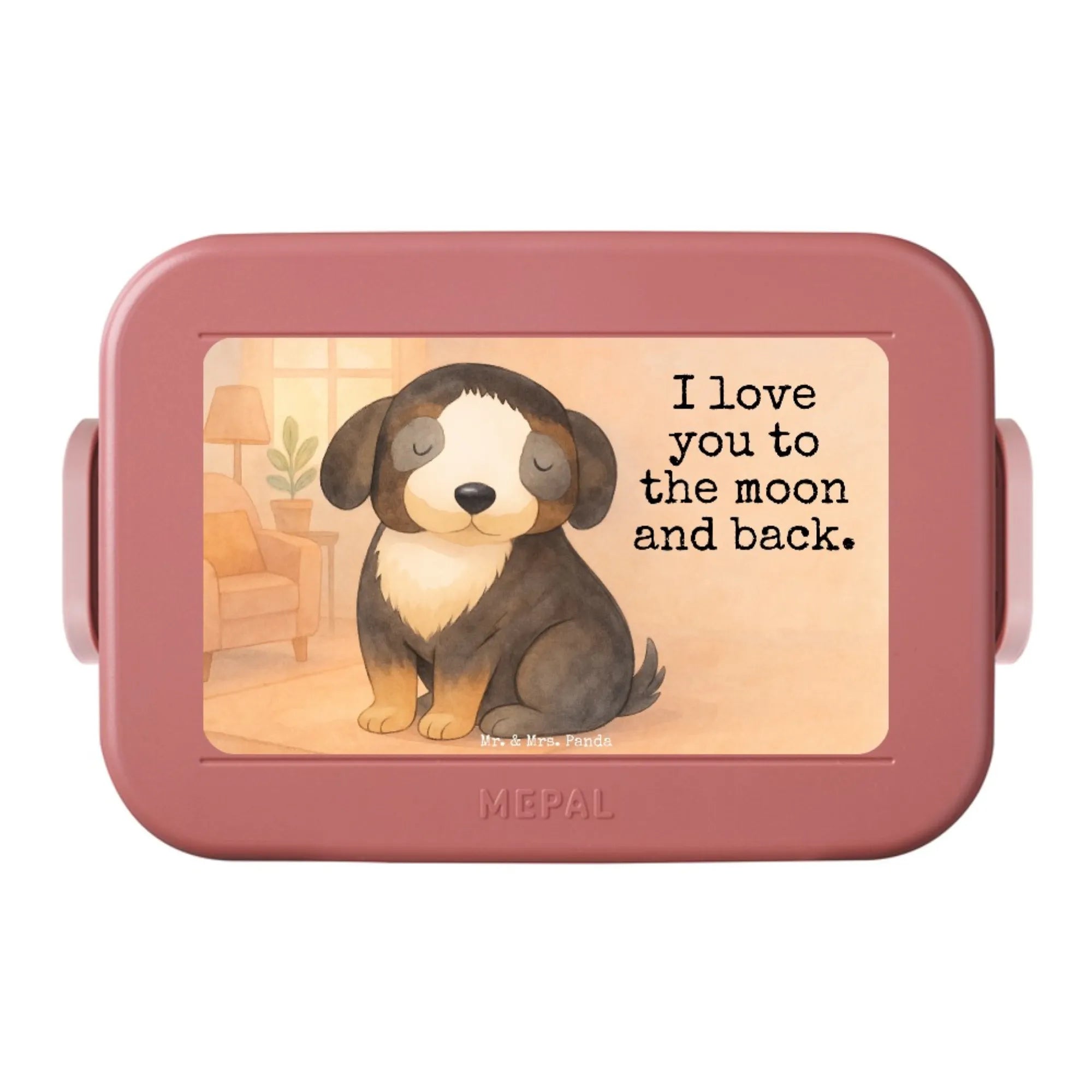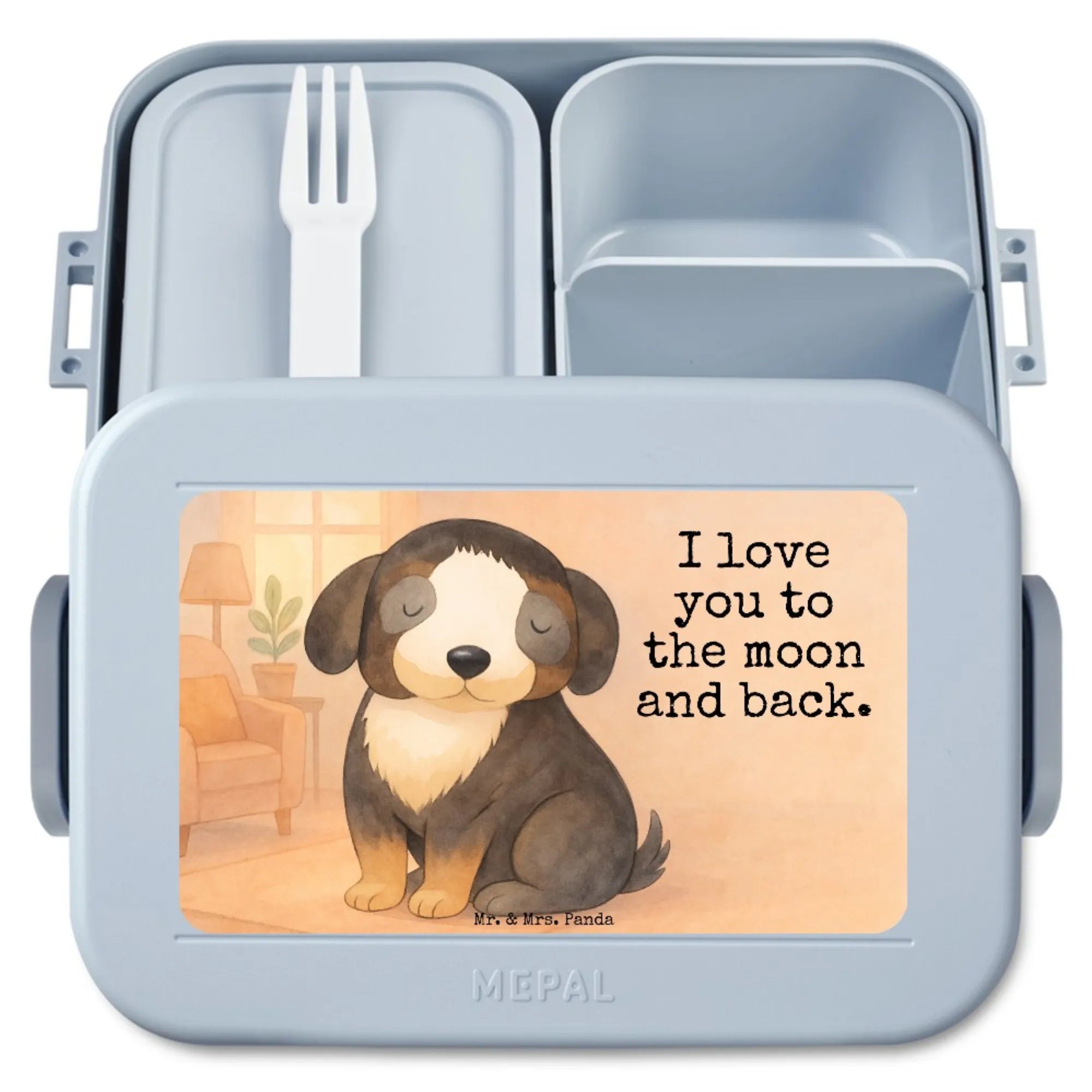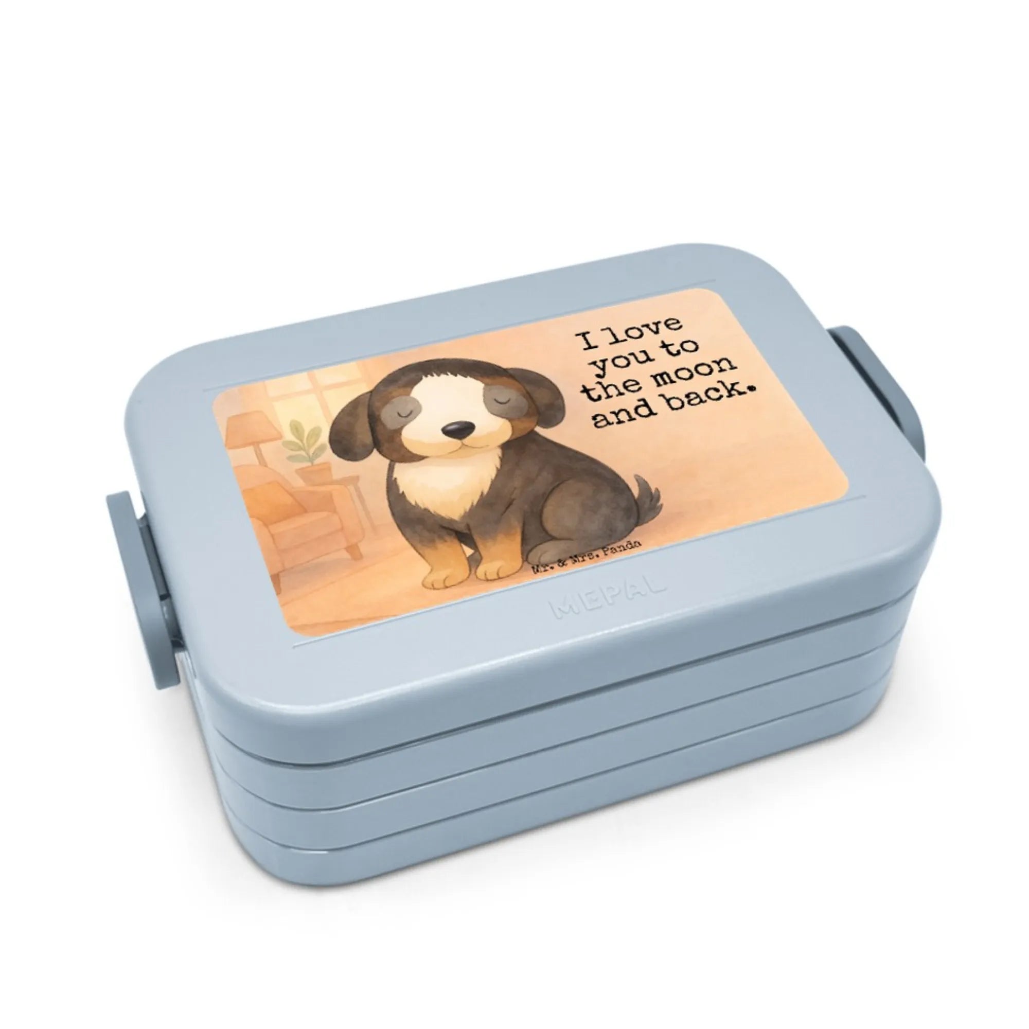 Entdecke die Bentobox „Hund entspannt“ aus der liebevollen Hunde Kollektion von Mr. & Mrs. Panda. Ein süßer schwarz-weißer Hund sitzt ganz entspannt und der herzliche Slogan „I love you to the moon and back.“ macht diese Brotdose zum idealen Geschenk für Hundebesitzer und Tierliebhaber.