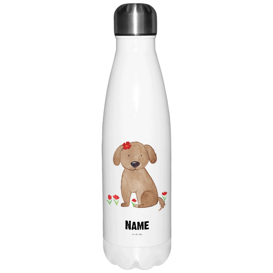 Entdecke die perfekte Geschenkidee für alle Hundeliebhaber mit unserer personalisierten Thermosflasche 'Hund Hundedame' aus der Hunde Kollektion von Mr. & Mrs. Panda! Diese einzigartige Isolierflasche ist nicht nur praktisch, sondern auch ein echter Blickfang. Mit einem niedlichen Motiv einer Hundedame, die stolz eine Blume auf dem Kopf trägt, wird jeder Schluck aus dieser Flasche zum Erlebnis.