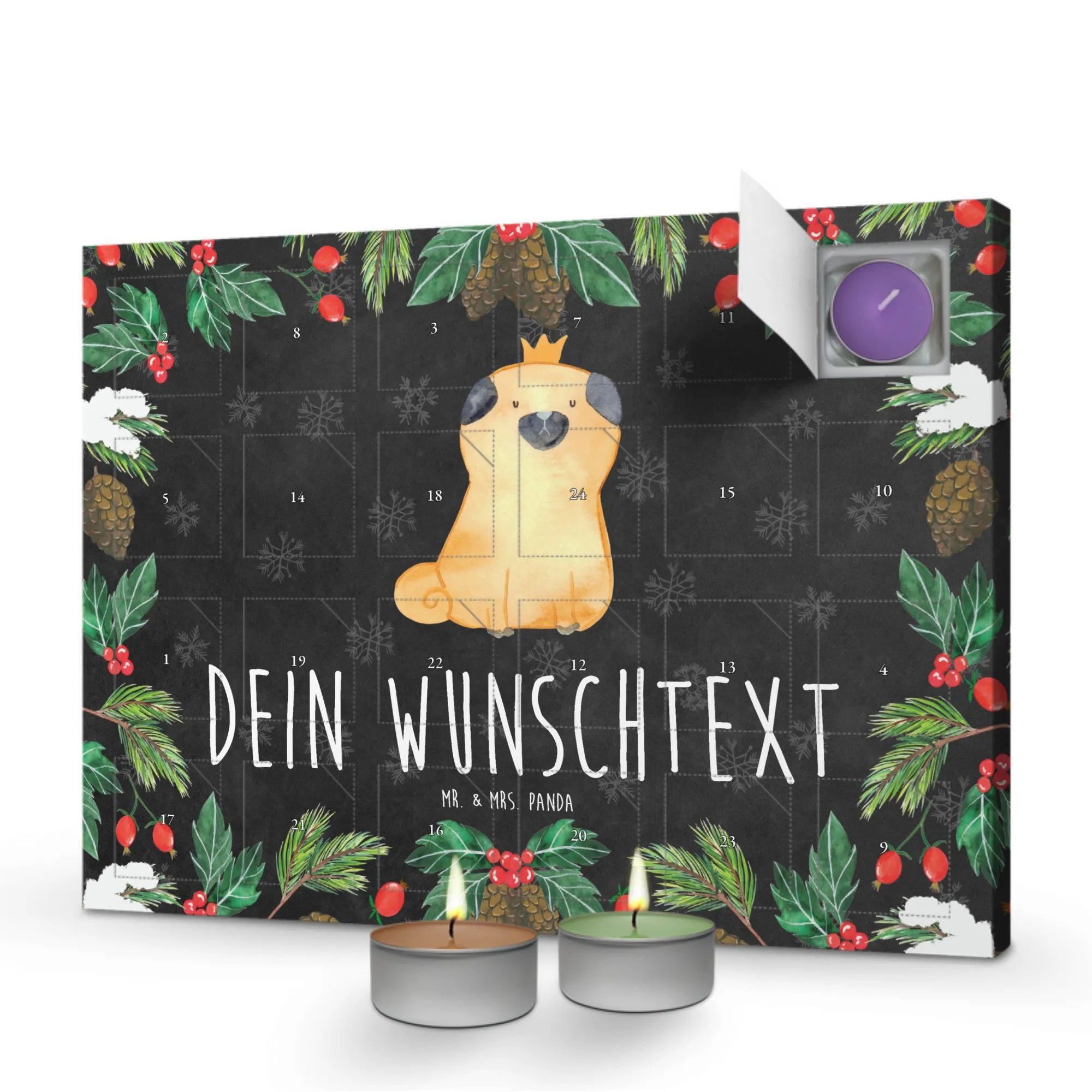 Personalisierter Duftkerzen Adventskalender Mops Krone - Kreidetafel