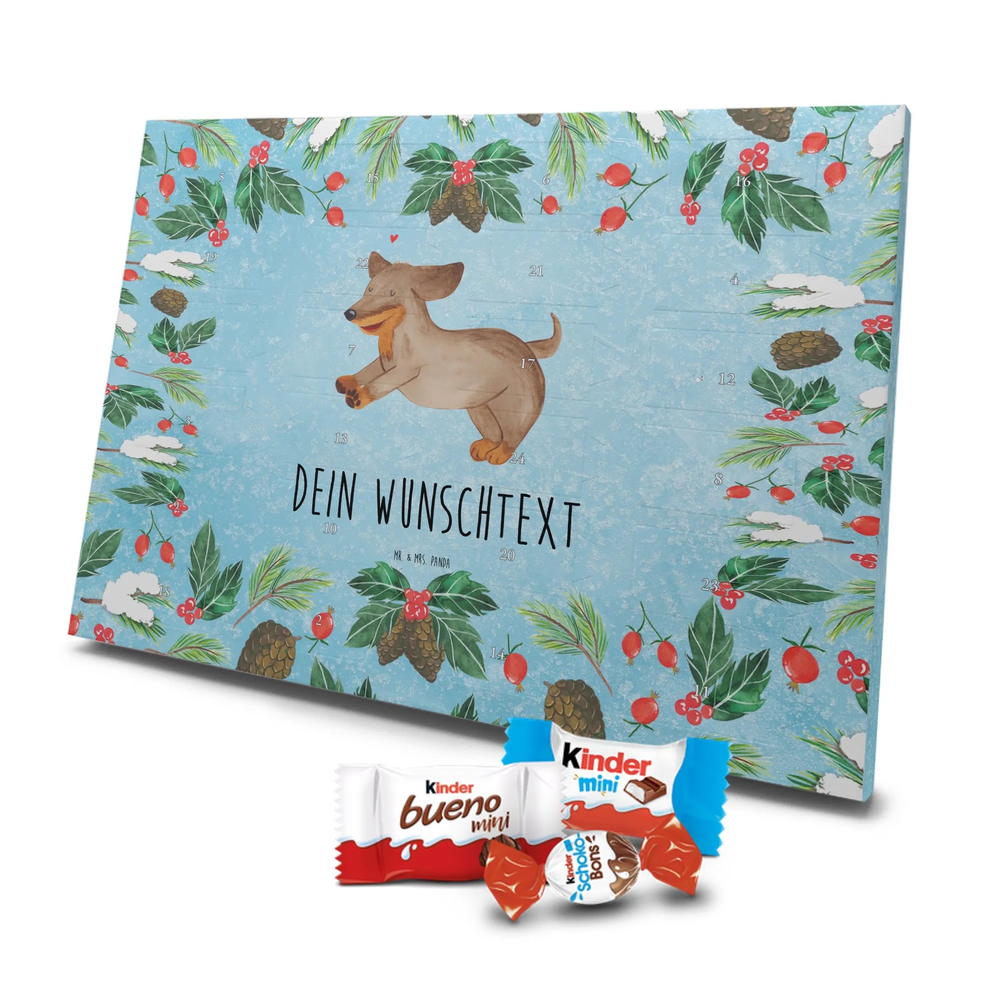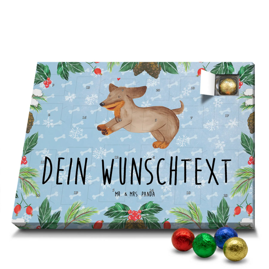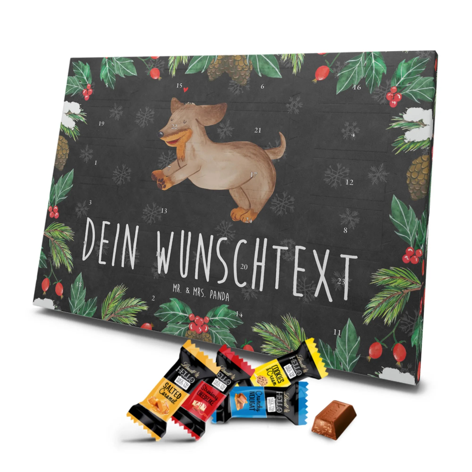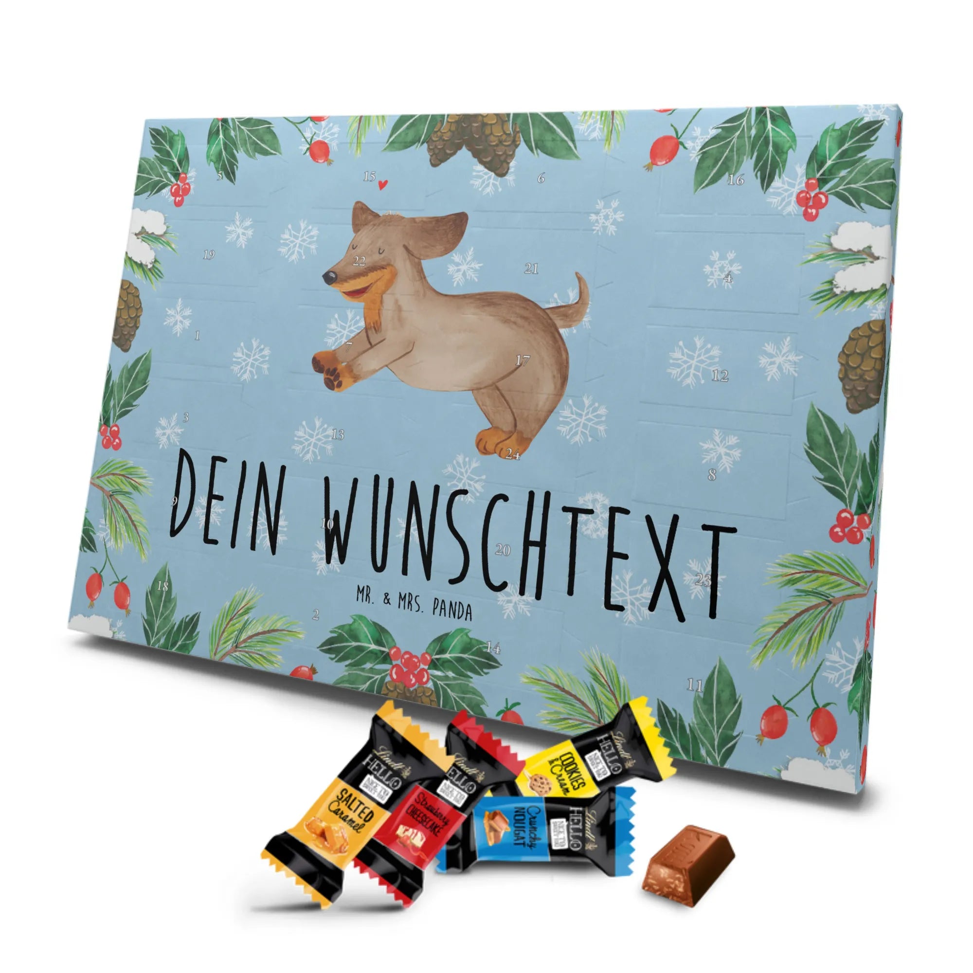 Personalisierter Schoko Adventskalender Hund Dackel fröhlich – Ein liebevolles Geschenk aus der Hunde Kollektion von Mr. & Mrs. Panda. 🎁🐶 Das fröhliche Dackel-Motiv, handgezeichnet von Mrs. Panda, zaubert jeden Dezembermorgen ein Lächeln ins Gesicht. Personalisiere den Adventskalender mit einem Wunschnamen und dem herzlichen Spruch „Tage mit dir sind meine absoluten Lieblingstage.“ – eine kleine, tägliche Liebeserklärung.