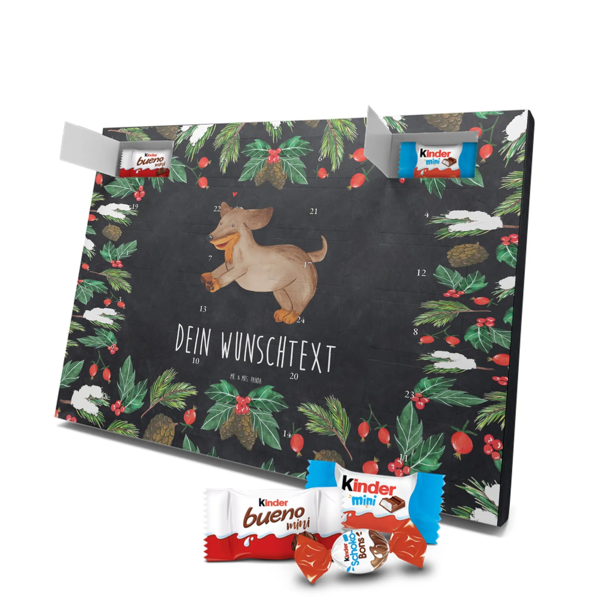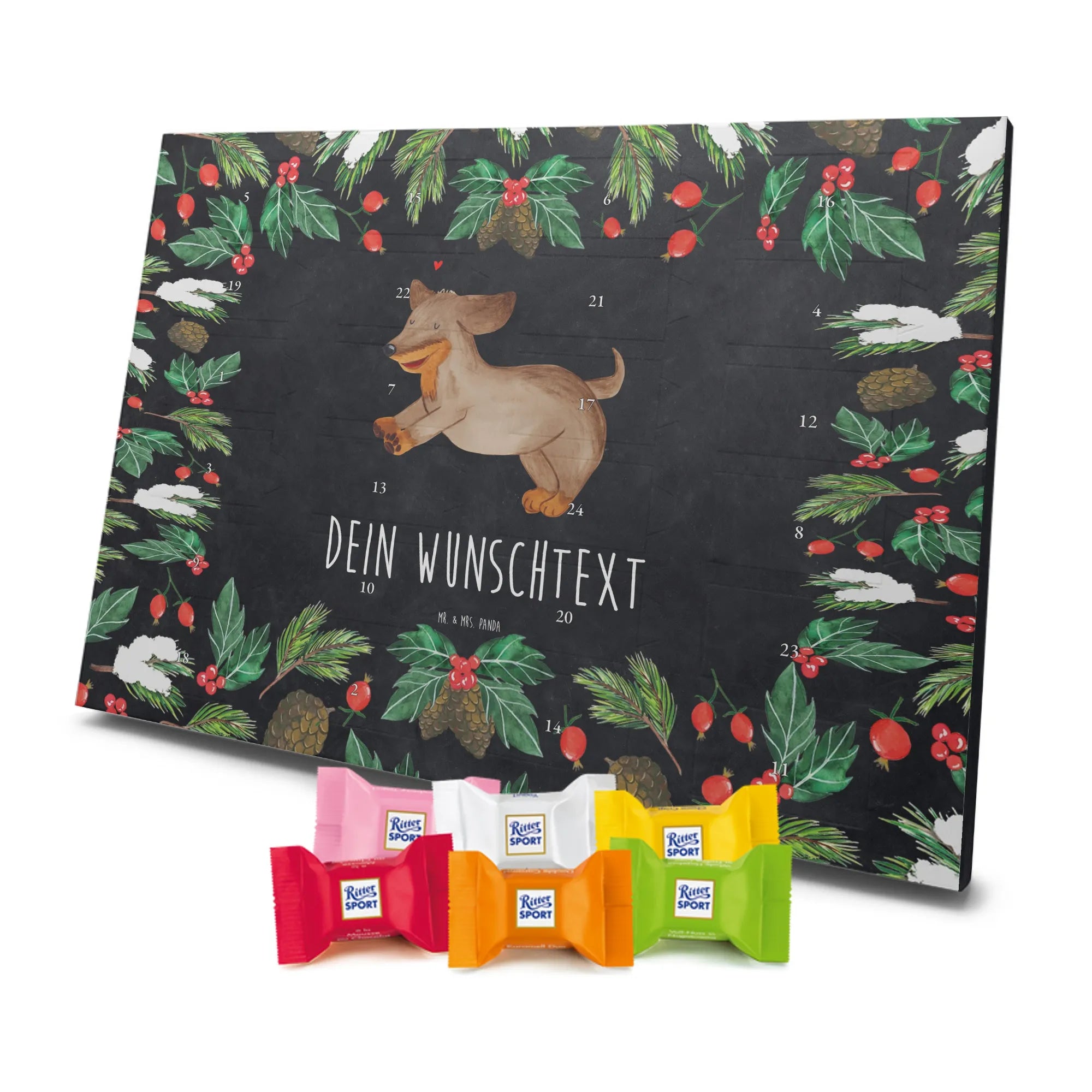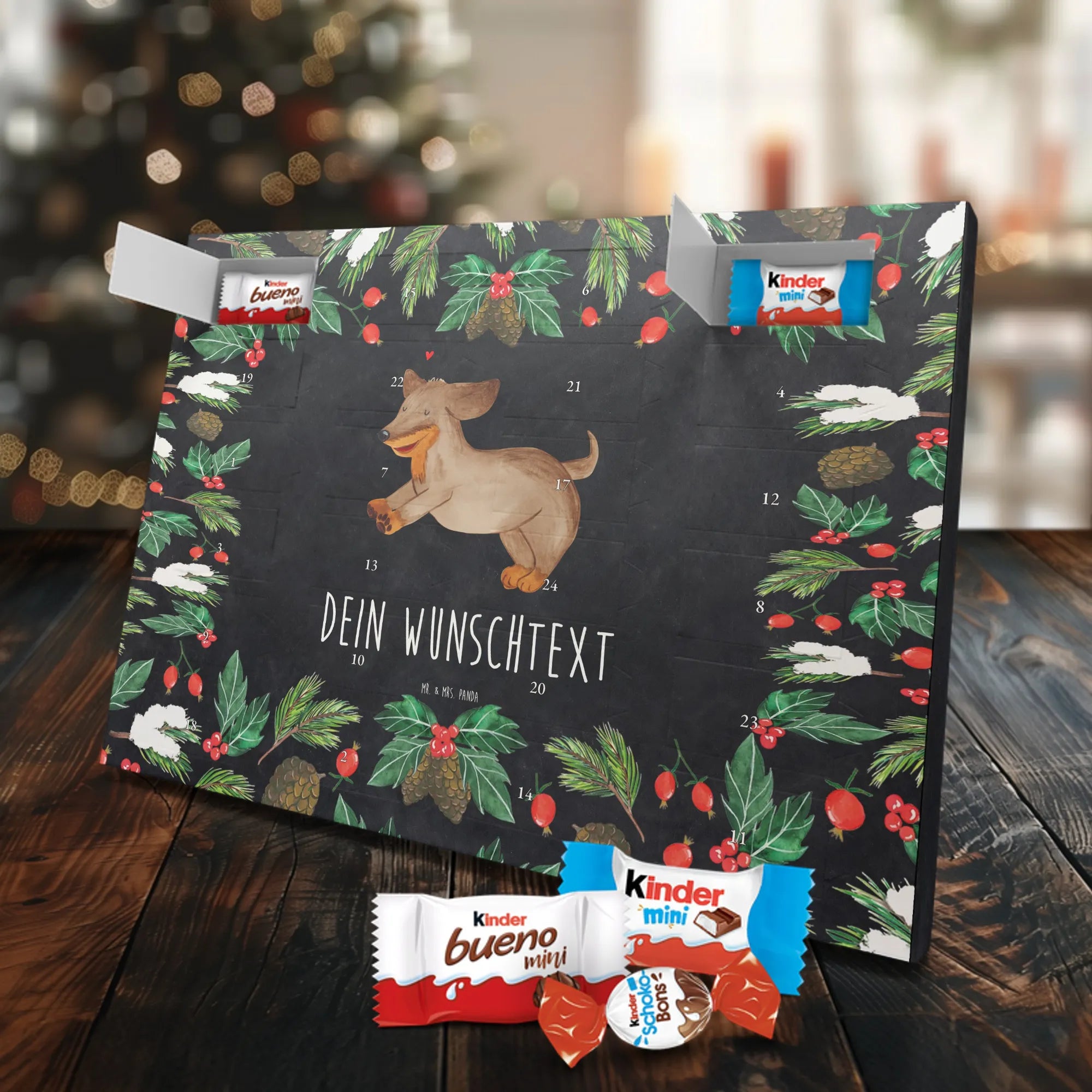 Personalisierter Schoko Adventskalender Hund Dackel fröhlich – Ein liebevolles Geschenk aus der Hunde Kollektion von Mr. & Mrs. Panda. 🎁🐶 Das fröhliche Dackel-Motiv, handgezeichnet von Mrs. Panda, zaubert jeden Dezembermorgen ein Lächeln ins Gesicht. Personalisiere den Adventskalender mit einem Wunschnamen und dem herzlichen Spruch „Tage mit dir sind meine absoluten Lieblingstage.“ – eine kleine, tägliche Liebeserklärung.