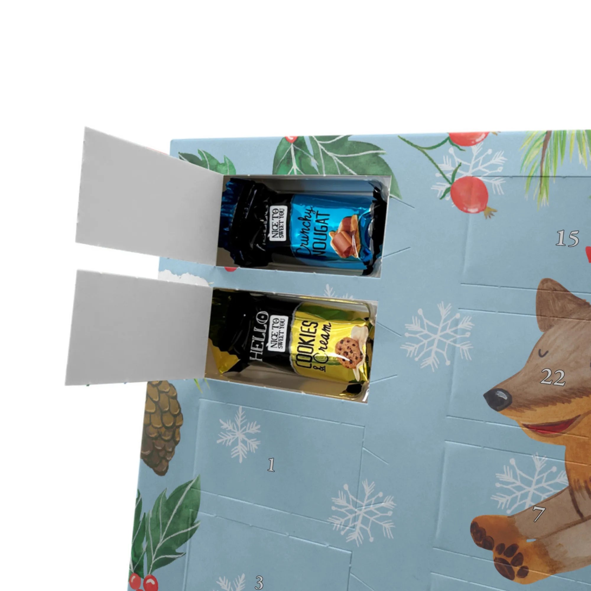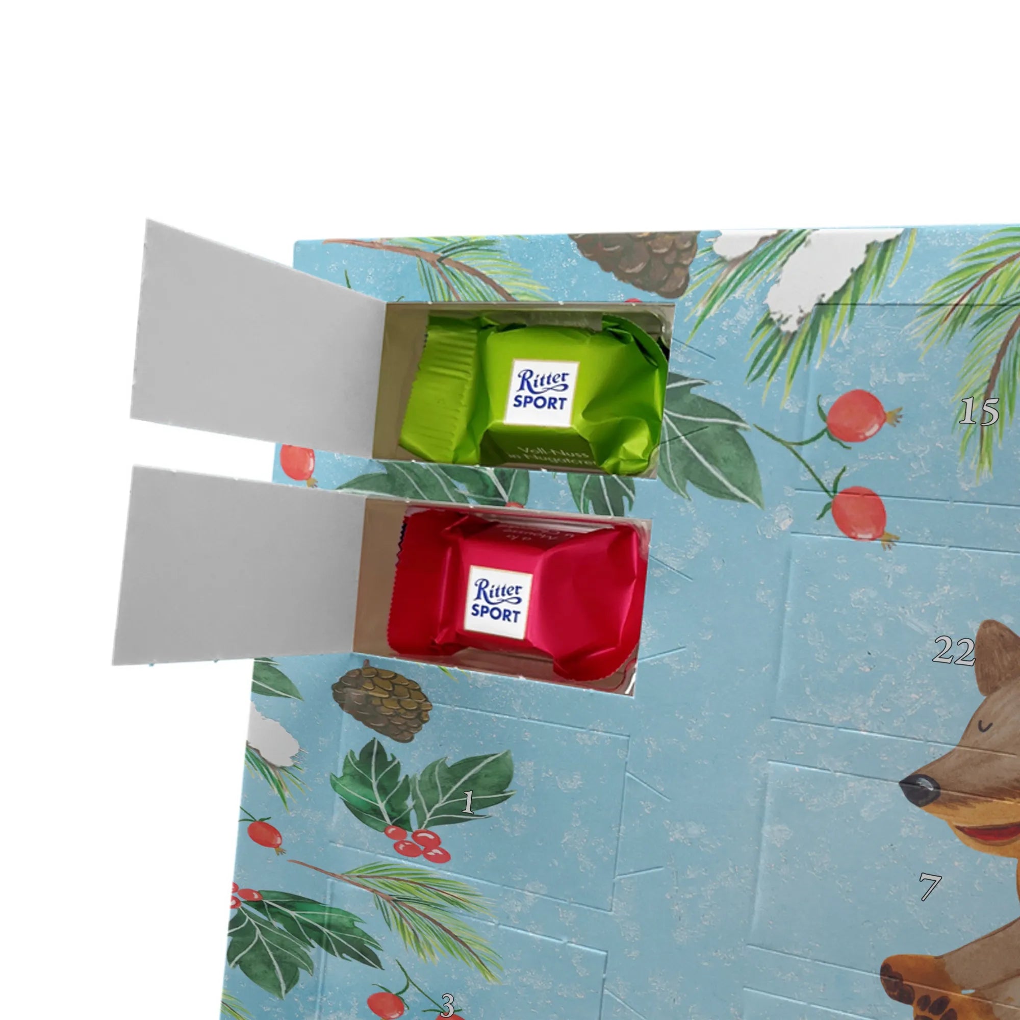 Suchst du einen besonderen Adventskalender, der persönlich und hochwertig ist? Unser Adventskalender mit Namen von Mr. & Mrs. Panda ist genau das – individualisierbar mit dem Namen deiner Liebsten oder einem kurzen Spruch und bedruckt mit unseren beliebten, charmanten Motiven. Die Druckqualität ist brillant, die seidenmatte Oberflächenveredelung verleiht dem Kalender eine elegante Haptik. Auch die Seitenflächen sind liebevoll bedruckt, sodass das Design rundum überzeugt. Du kannst den Kalender aufstellen oder an einer Stelle aufhängen, die du magst – die besondere Form macht beides möglich. Gefüllt ist der Kalender mit Ritter Sport Schokowürfeln in sechs beliebten Sorten: Mousse au Chocolat, Schoko Crisp, Voll-Nuss in Nougatcreme, Karamell Duo, Joghurt und Erdbeer-Joghurt. So gibt es hinter jedem Türchen eine kleine, leckere Überraschung. Maße: 325 mm x 225 mm x 27 mm – kompakt genug, um überall Platz zu finden, groß genug für 24 sorgfältig verpackte Schokowürfel.
