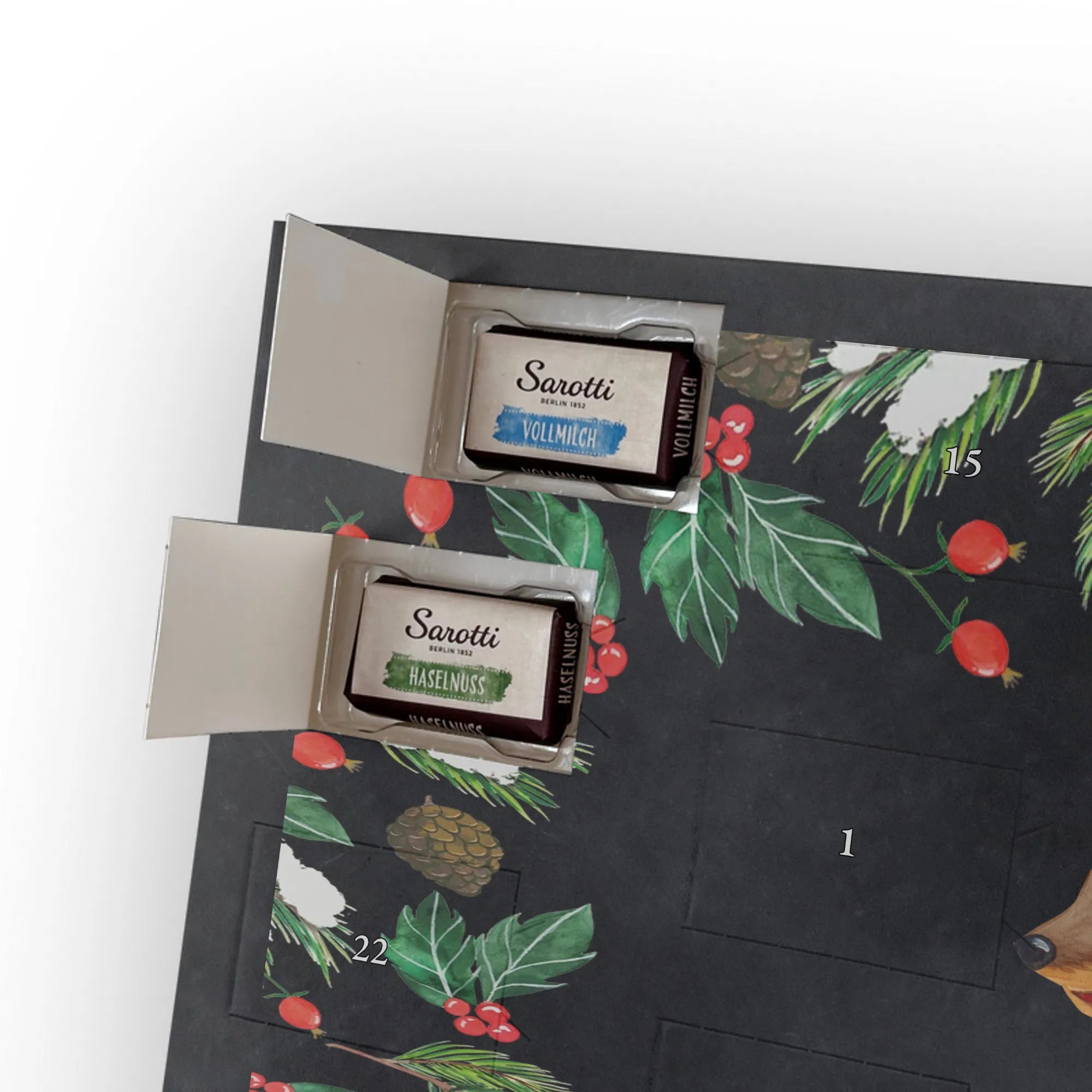 🐼 PERSONALISIERTER SCHOKO-ADVENTSKALENDER: Mit Wunschtext, bedruckt mit Mr. & Mrs. Panda Motiven, gefüllt mit MARKENNAMEN Schokolade.