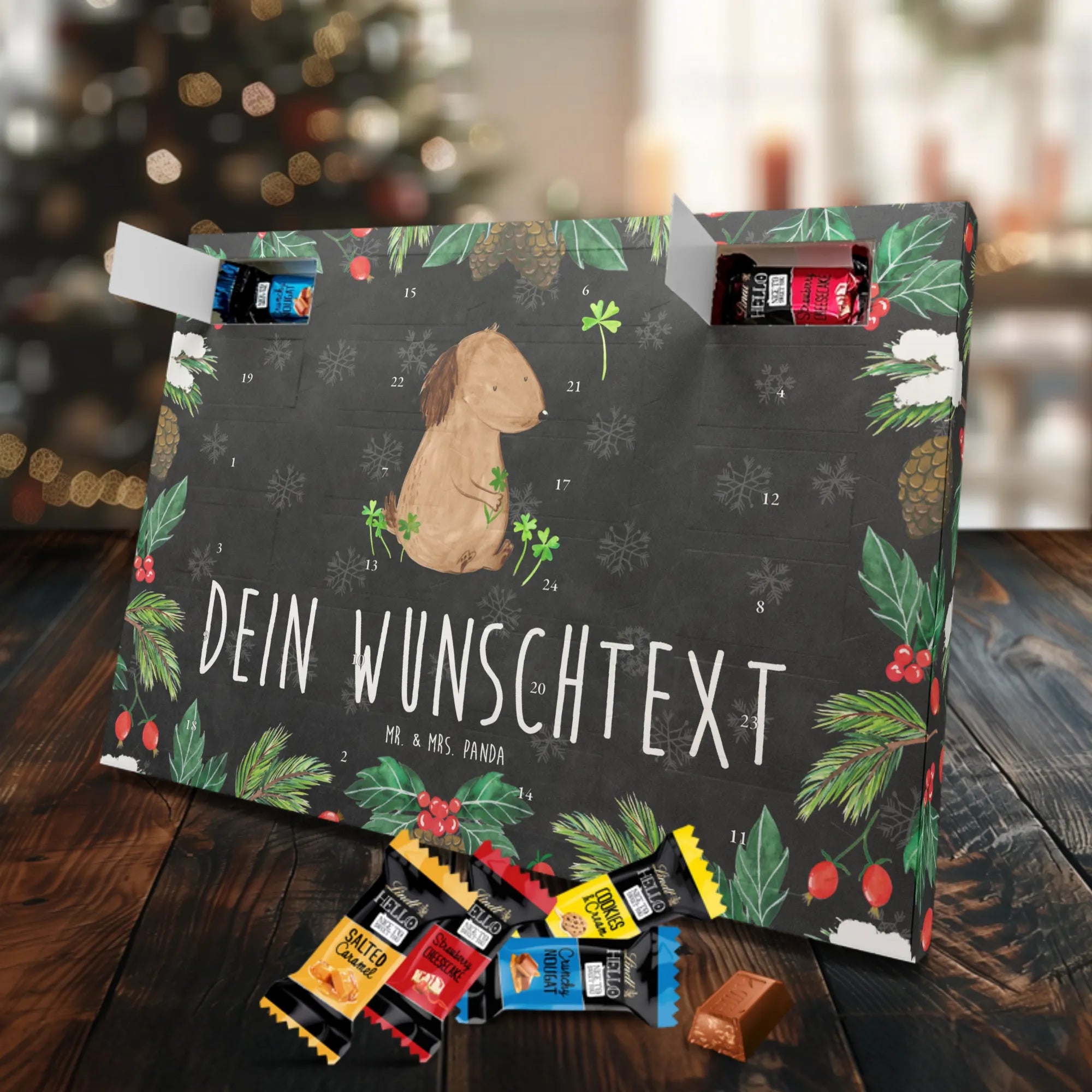 🐼 Schoko Adventskalender personalisiert mit Wunschtext, seidenmatt, gefüllt mit Lindt Hello.
