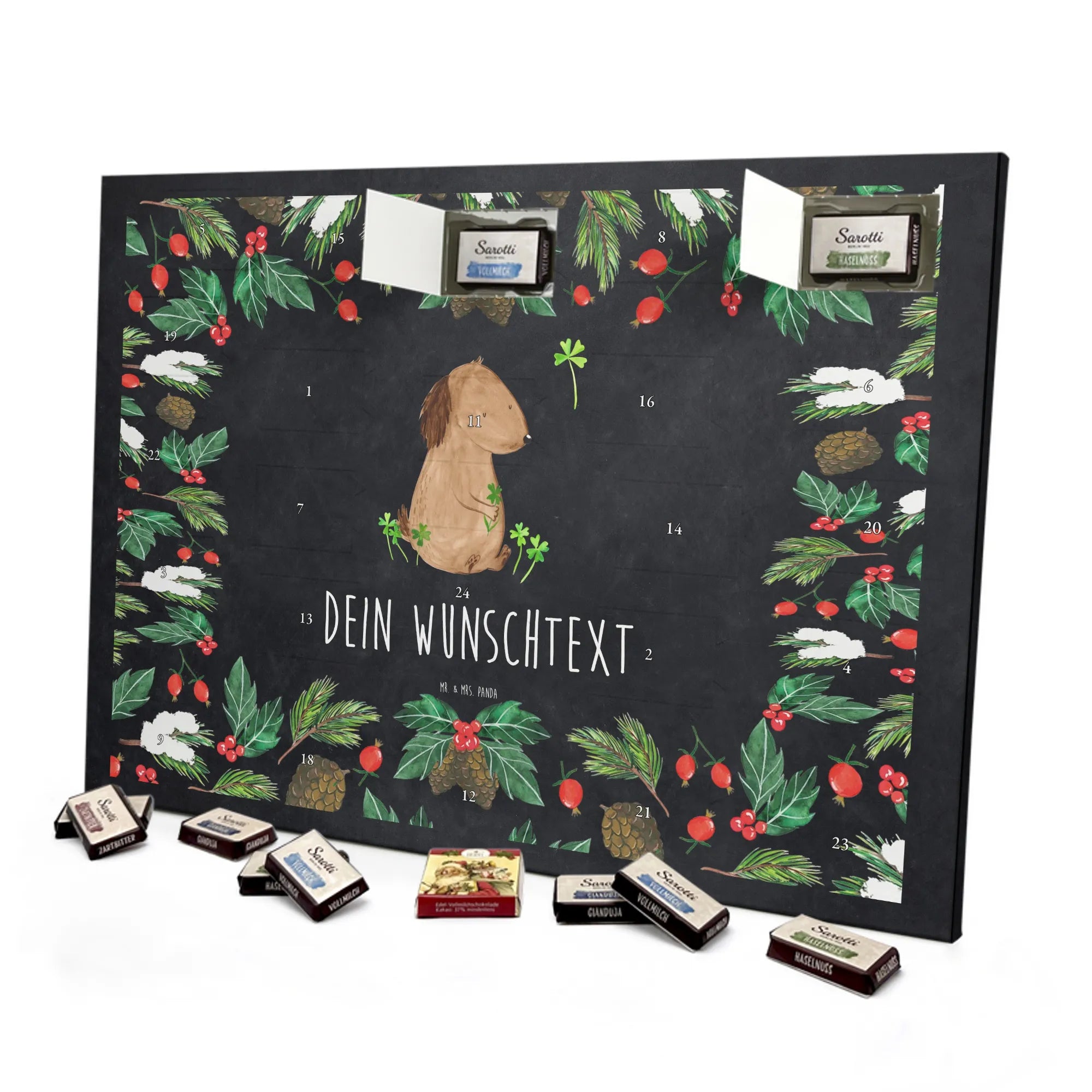 Gestalte Freude: Personalisiere deinen Schoko-Kalender und überrasche mit einem individuellen Adventsgruß von Mr. & Mrs. Panda!