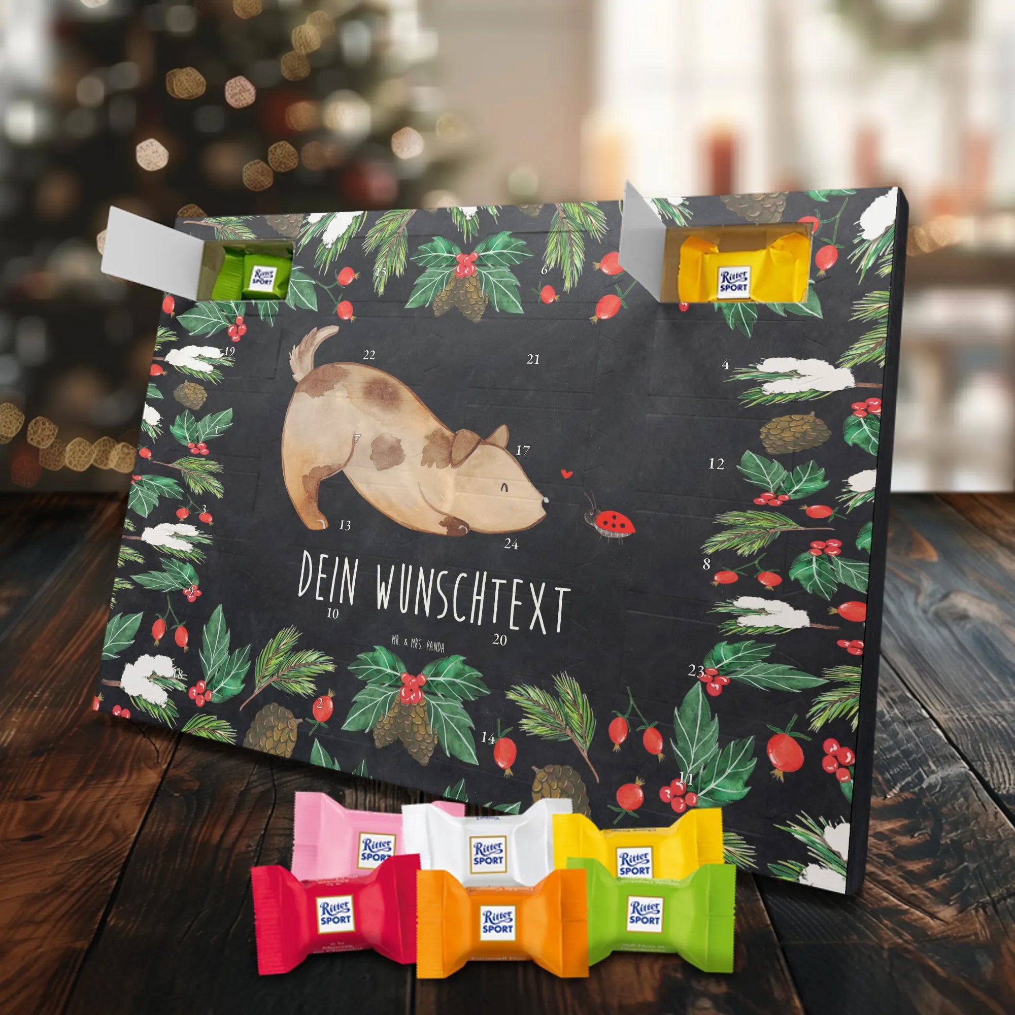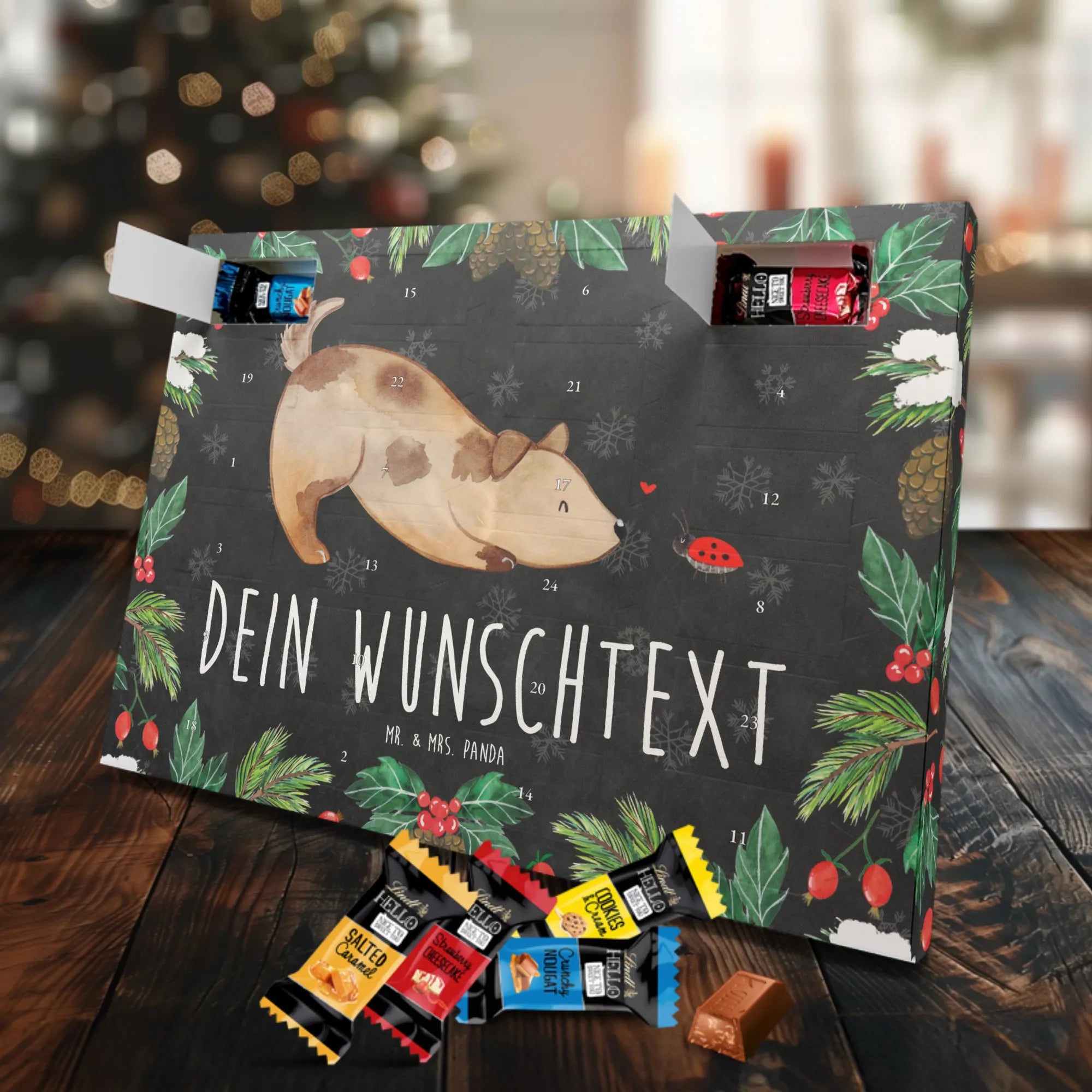 🐼 Schoko Adventskalender personalisiert mit Wunschtext, seidenmatt, gefüllt mit Lindt Hello.