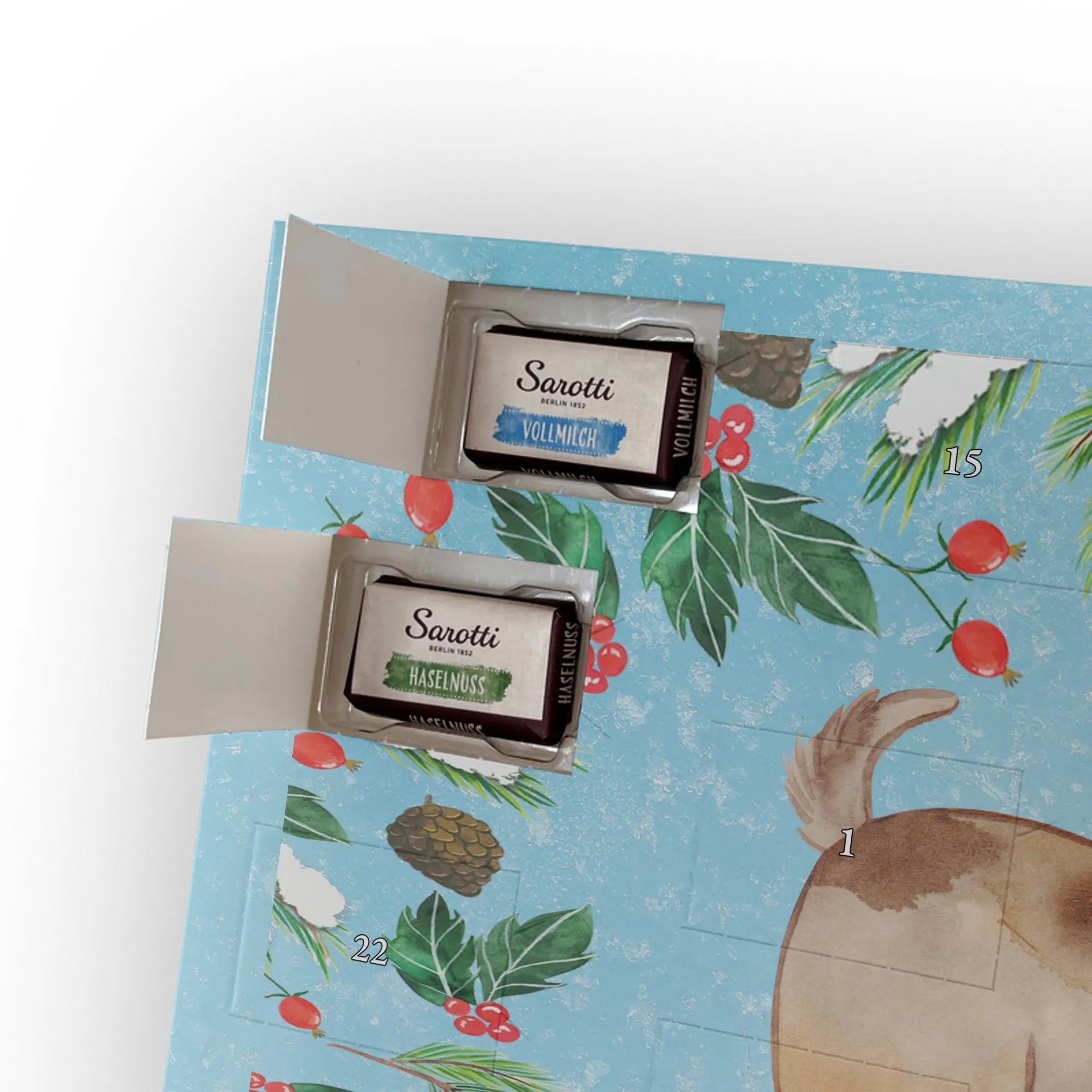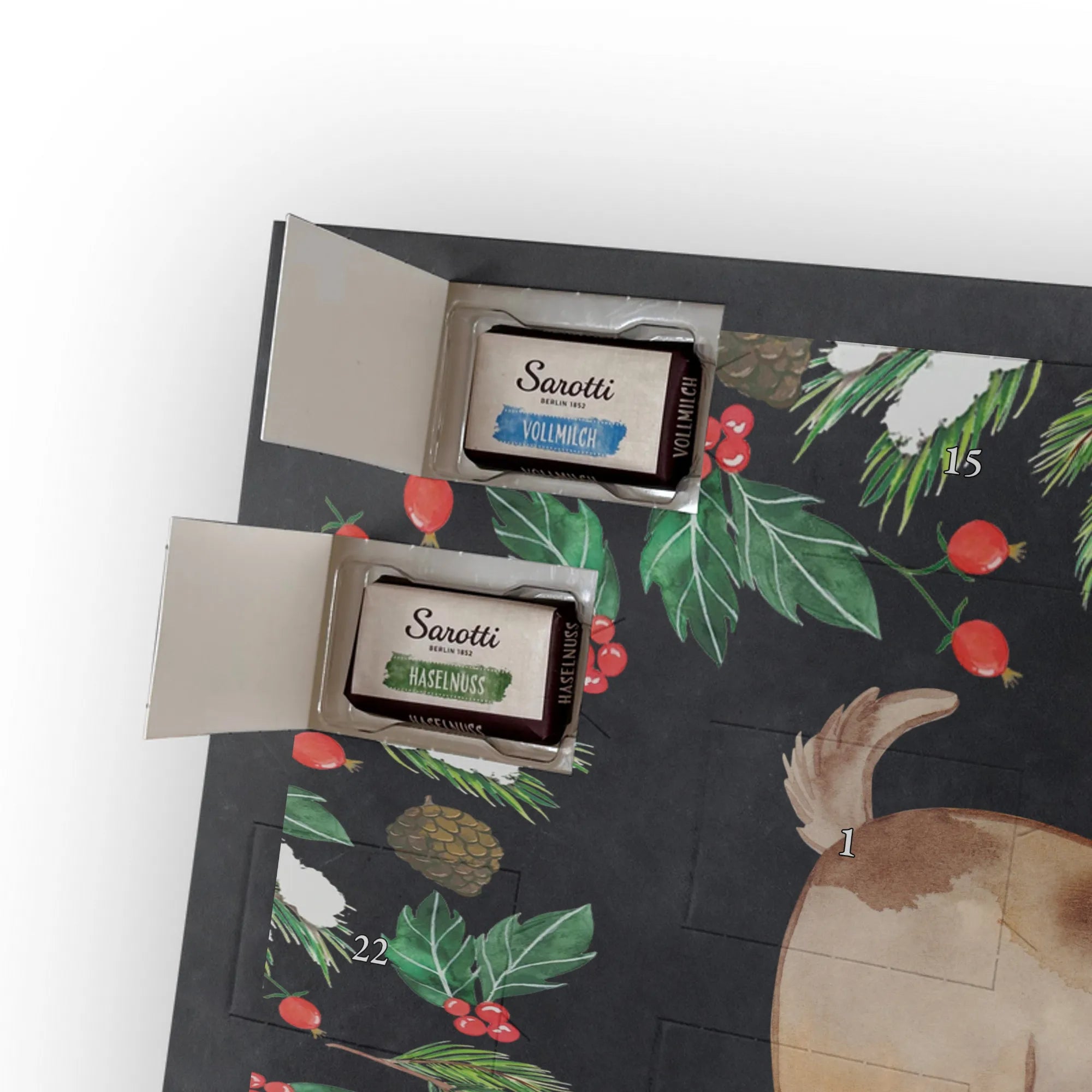Personalisierter Schoko Adventskalender von Mr. & Mrs. Panda – der perfekte Adventskalender mit Namen für alle, die Geschenke mit Persönlichkeit lieben. Unsere Designs sind mit süßen Illustrationen und liebevollen Sprüchen bedruckt und lassen sich ganz easy mit deinem Namen oder kurzem Wunschtext versehen. Die hochwertige, seidenmatte Oberflächenveredelung verleiht dem Kalender ein edles Finish, und auch die Seitenflächen sind vollständig bedruckt – kleine Details mit großer Wirkung. Maße: 355 mm x 245 mm x 11 mm. Du kannst den Kalender sowohl aufhängen als auch aufstellen, je nachdem, wie du ihn präsentieren möchtest. Gefüllt ist er mit 24 einzeln verpackten Schokoladentäfelchen in vier köstlichen Geschmacksrichtungen. Insgesamt enthält er 107 g Markenschokolade von Sarotti® und Confiserie Heidel®: Vollmilch, Nougat, Zartbitter und Haselnuss. Wichtig: Es handelt sich um einen Kalender gefüllt mit Sarotti® und Confiserie Heidel® Markenschokolade. Ob als Geschenk für die Liebsten oder als besonderer Adventsüberraschung für dich selbst – dieser Adventskalender zaubert jeden Tag ein Lächeln!