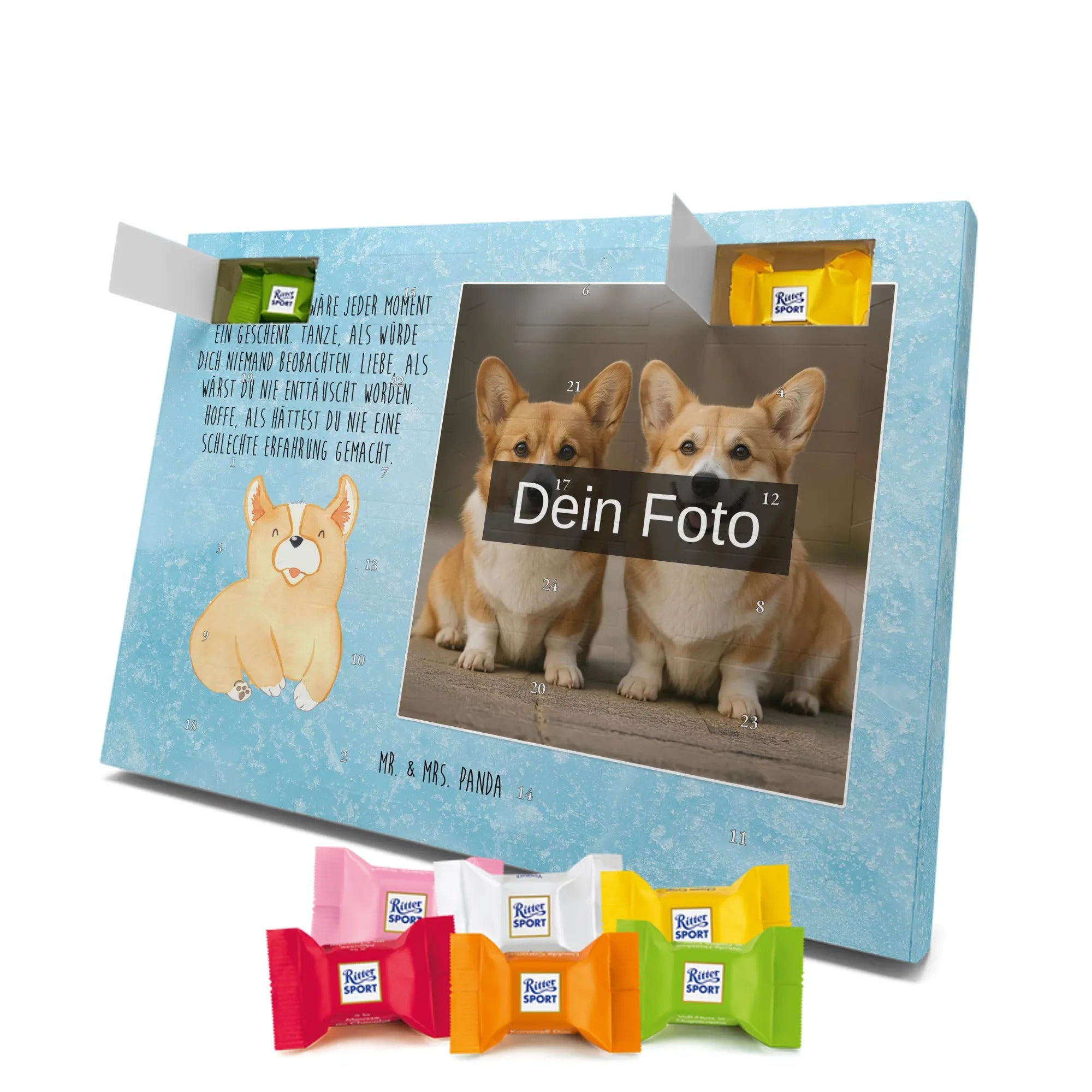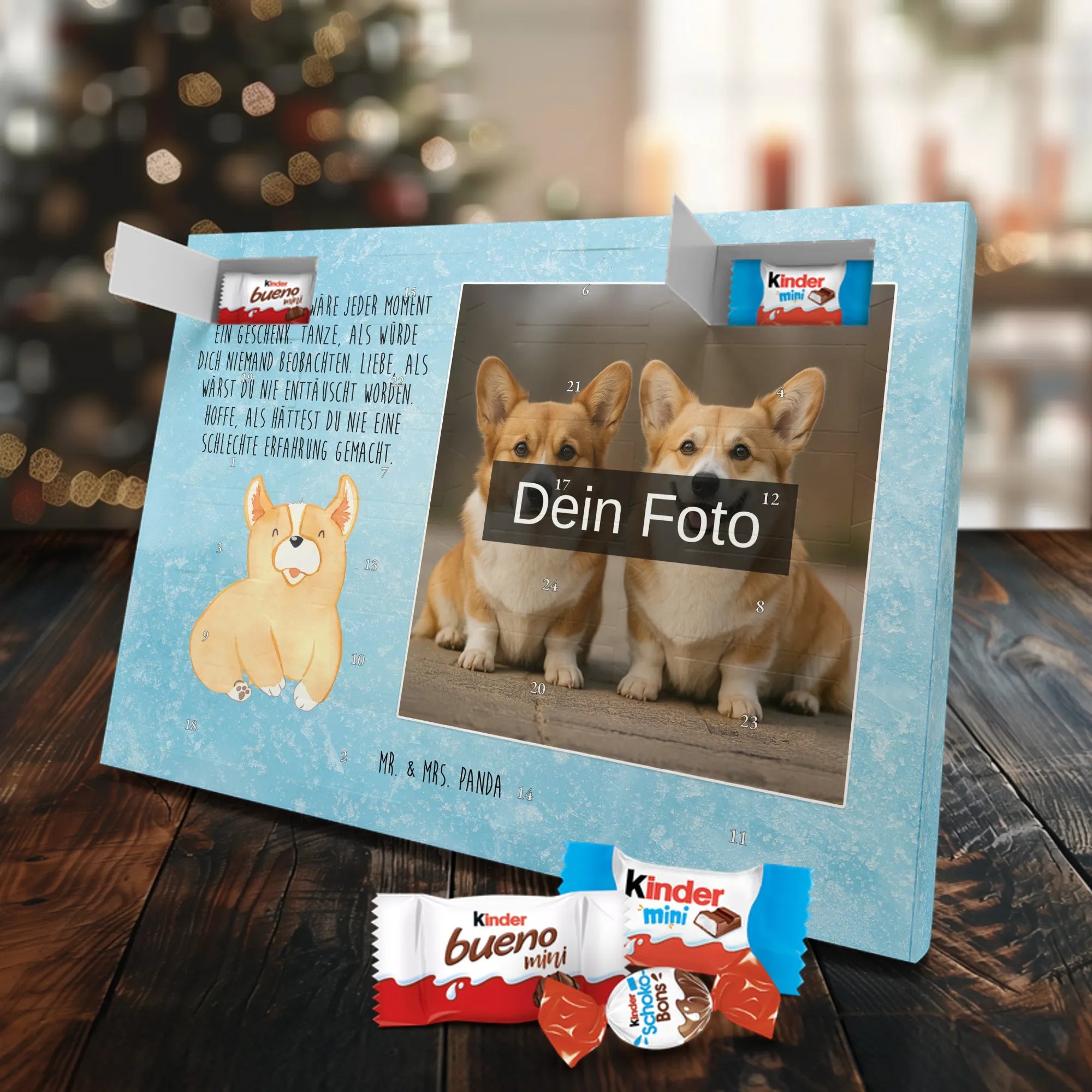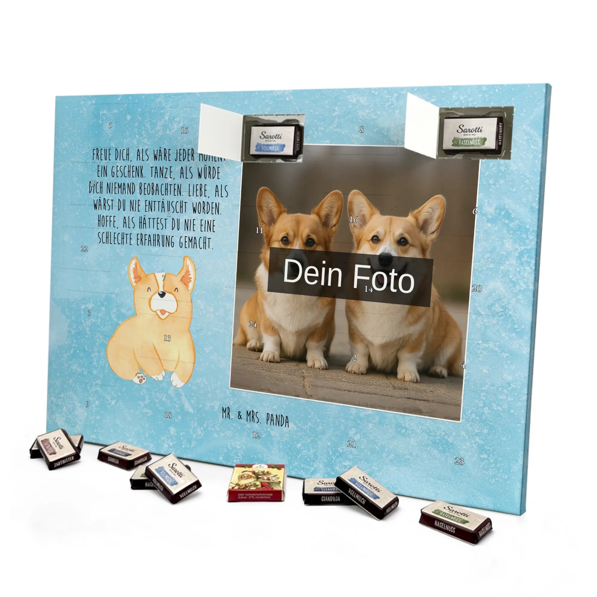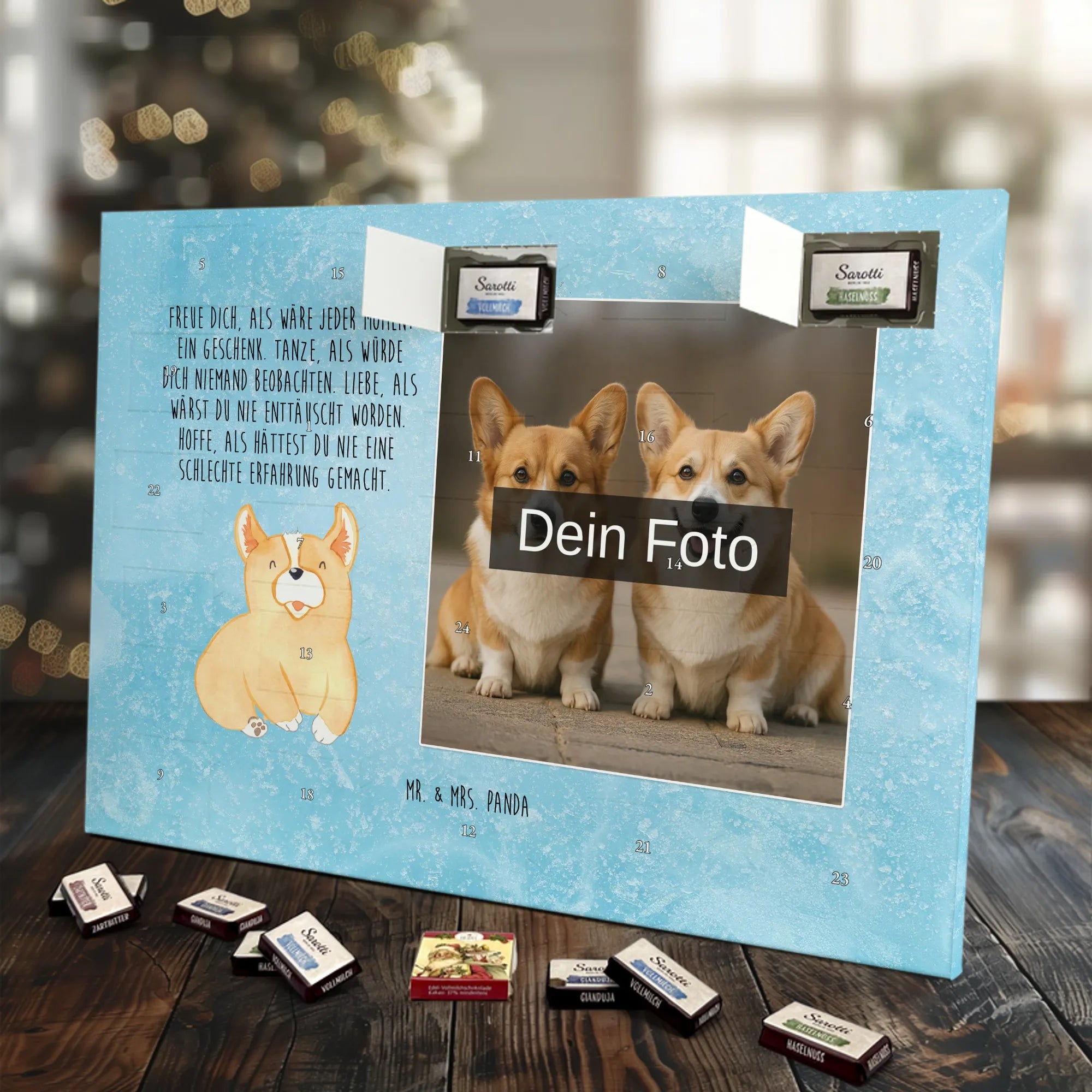 Personalisierter Schoko Foto Adventskalender Corgie - Kinder Schokolade - Eisblau