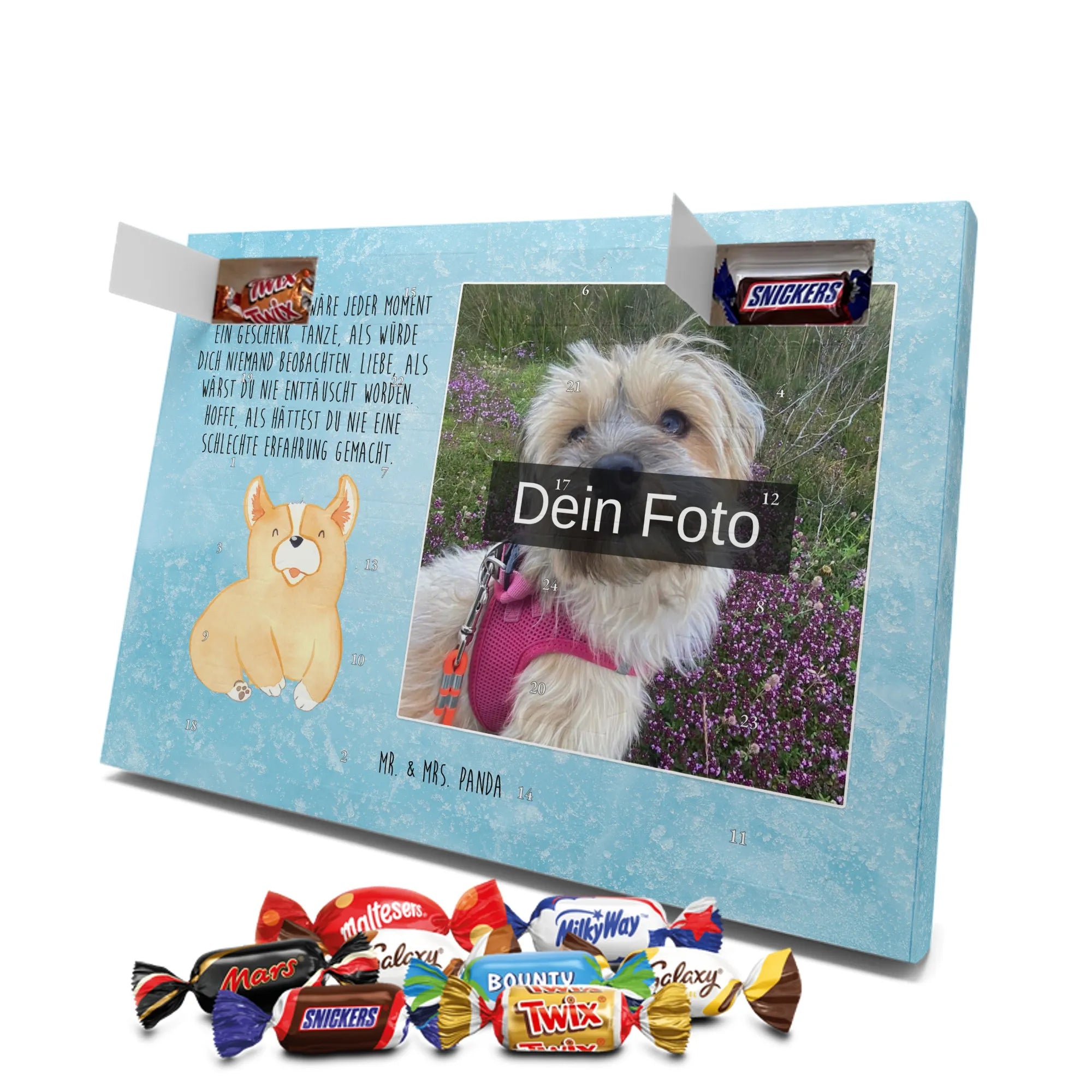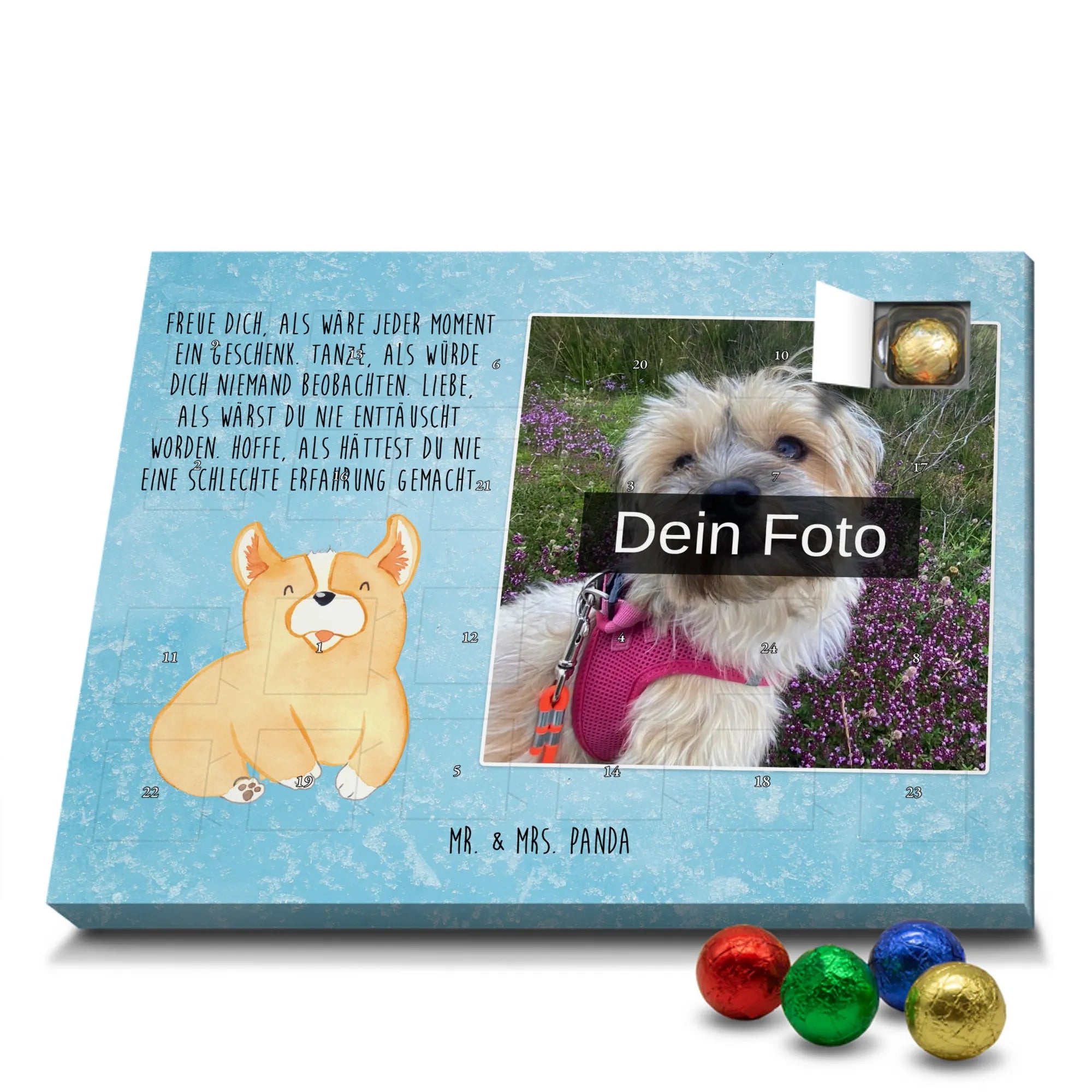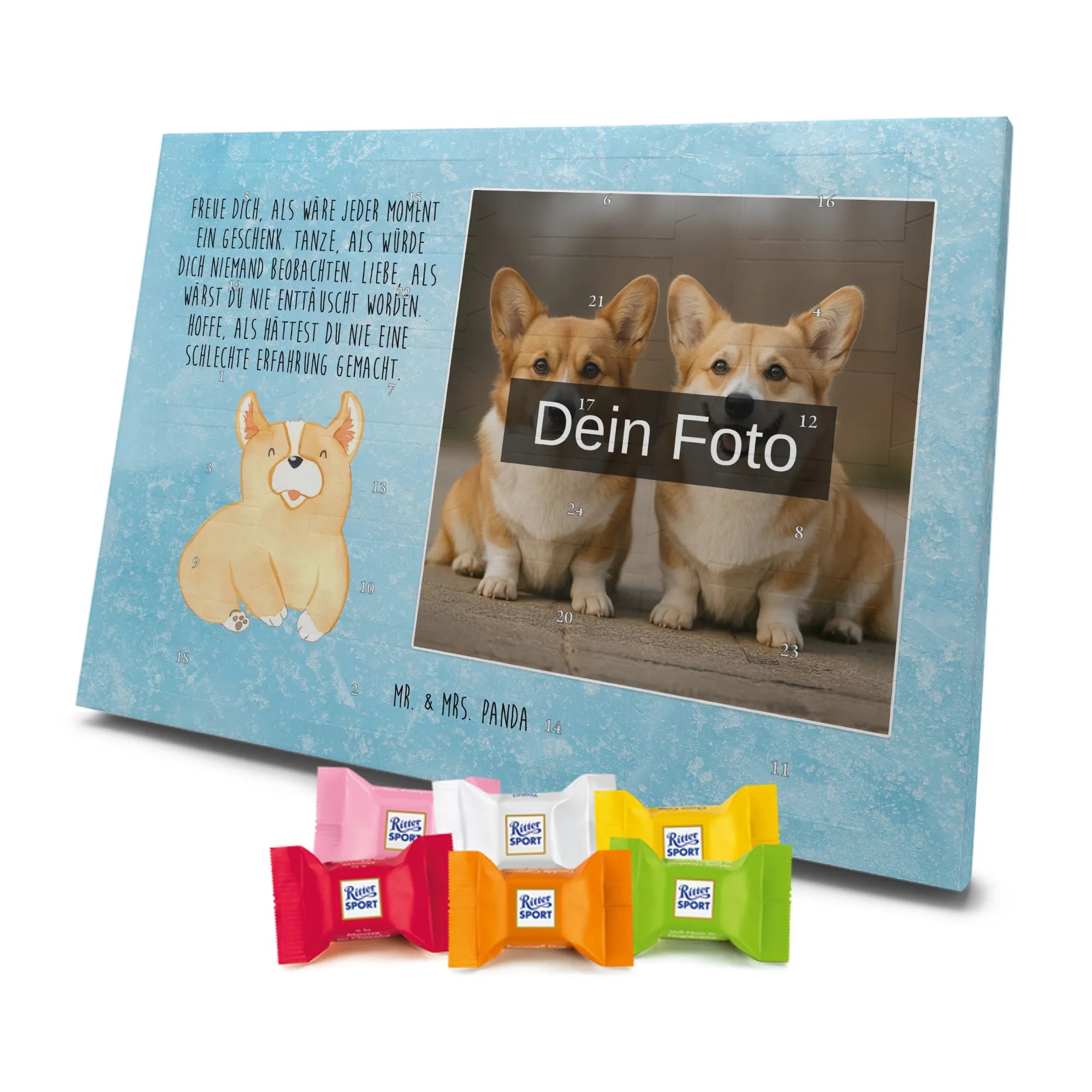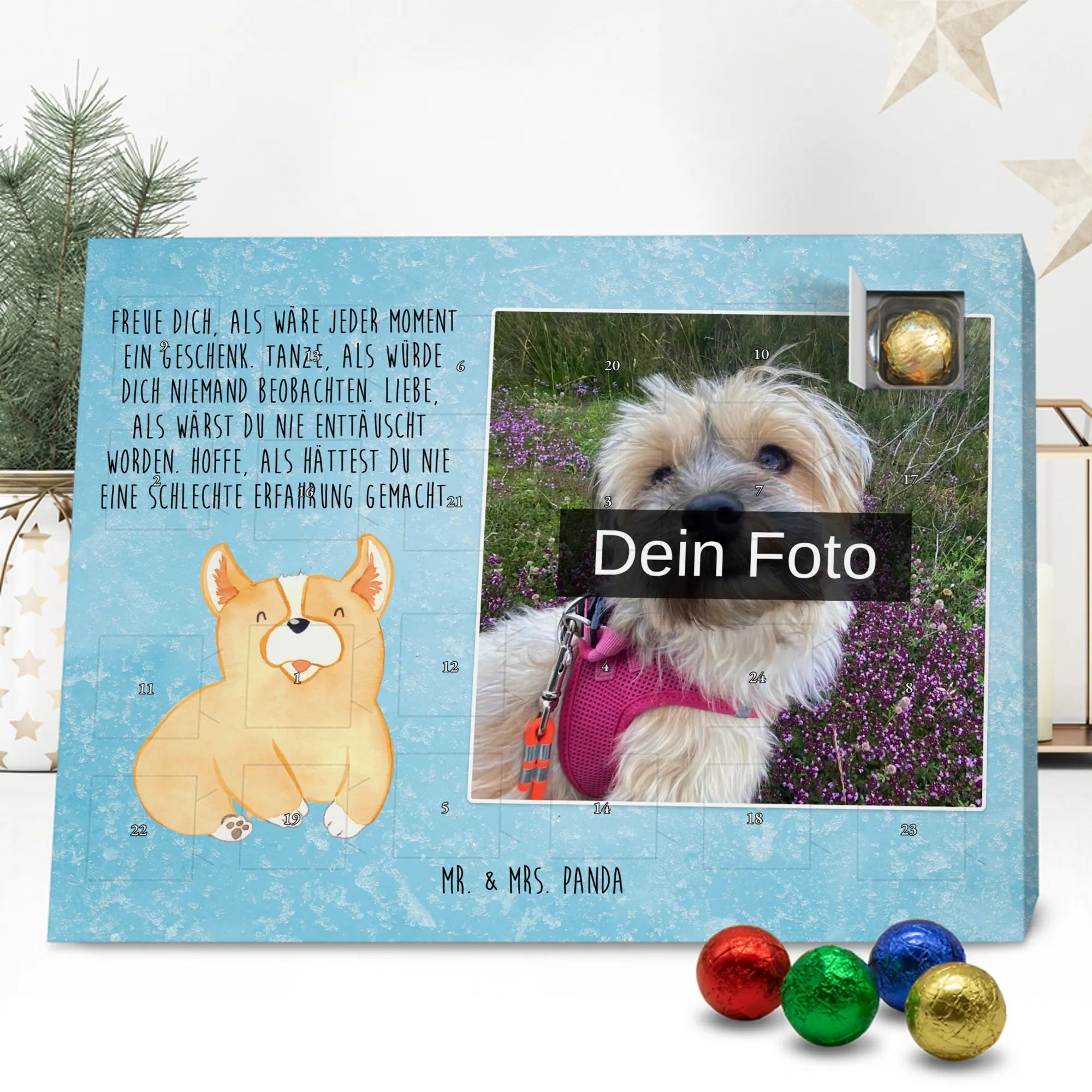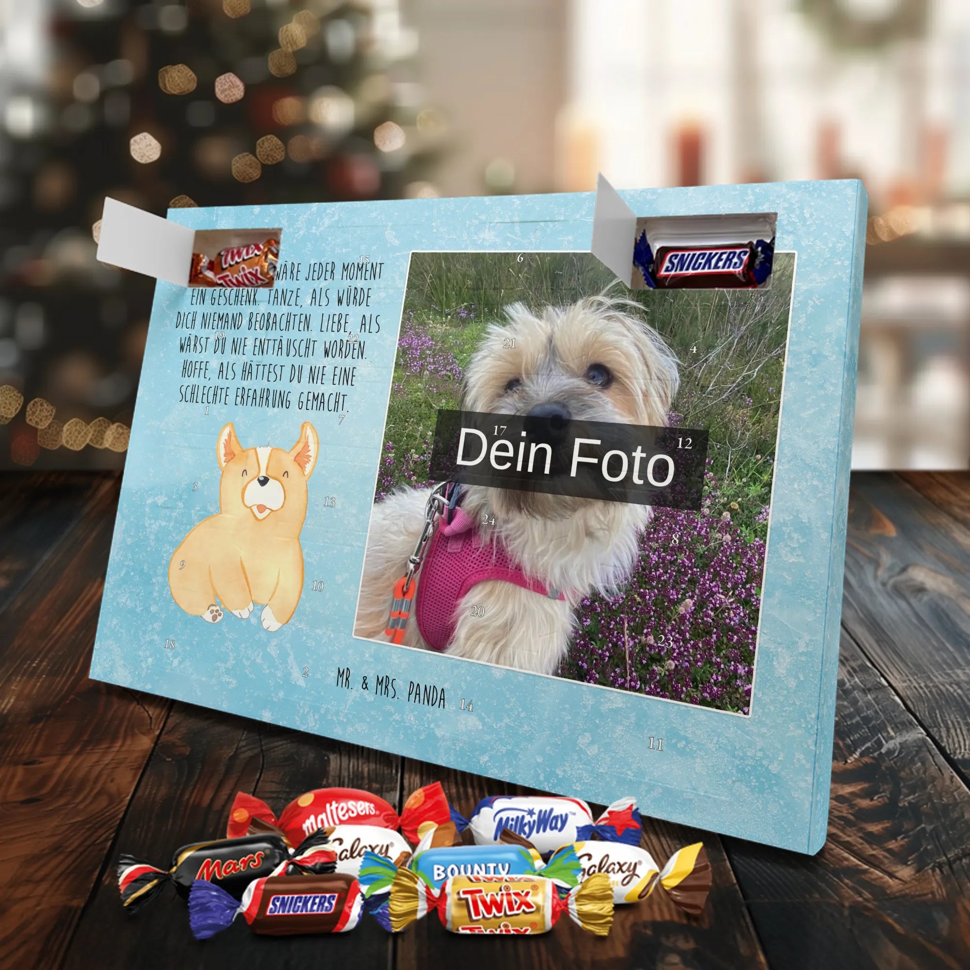 Personalisierter Schoko Foto Adventskalender Corgie - Kinder Schokolade - Eisblau