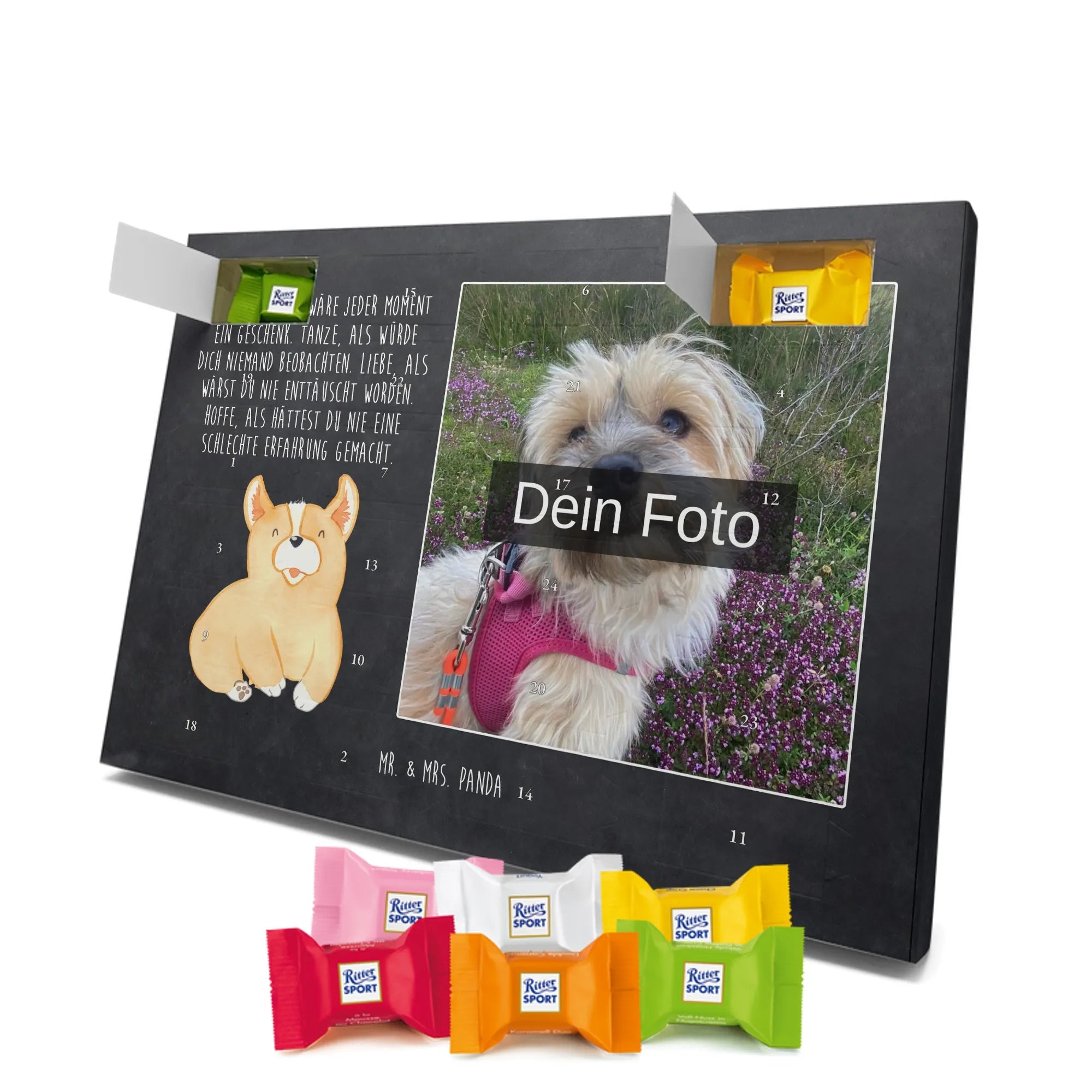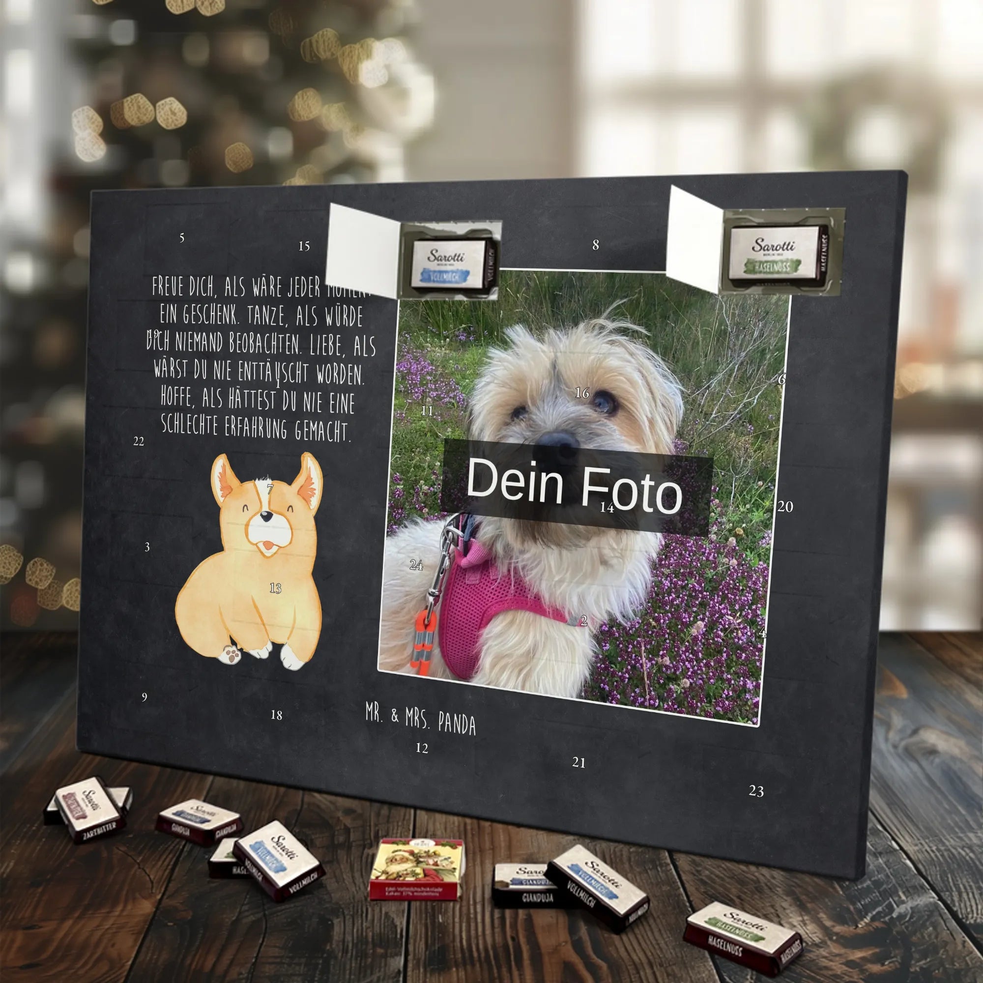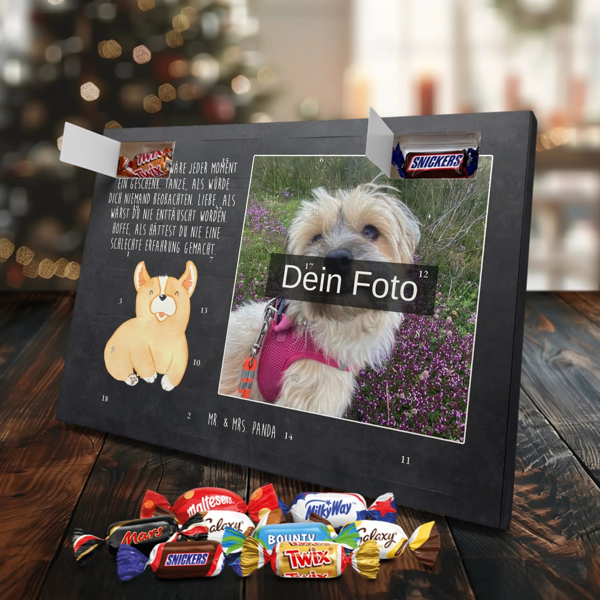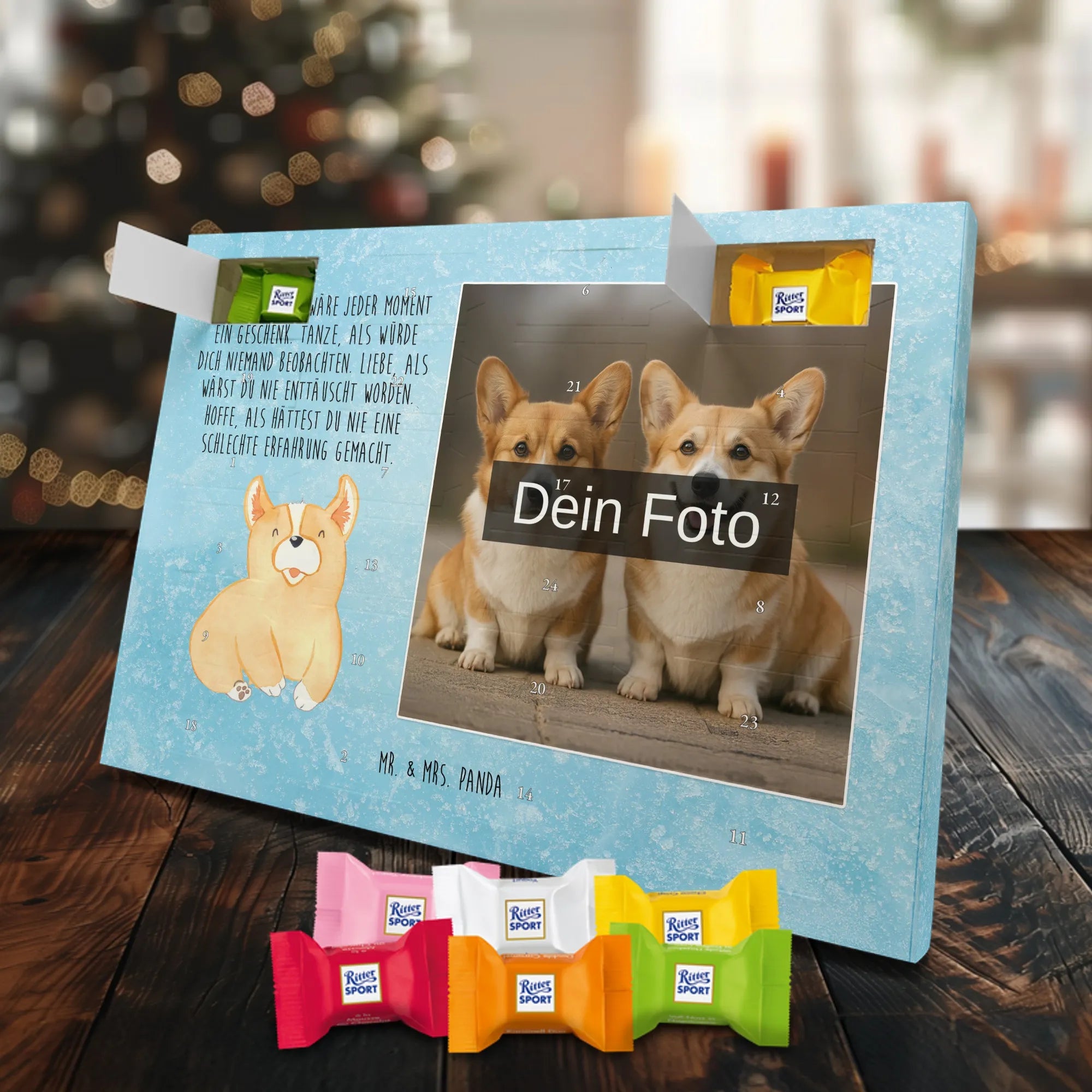 Personalisierter Schoko Foto Adventskalender Corgie - Kinder Schokolade - Eisblau