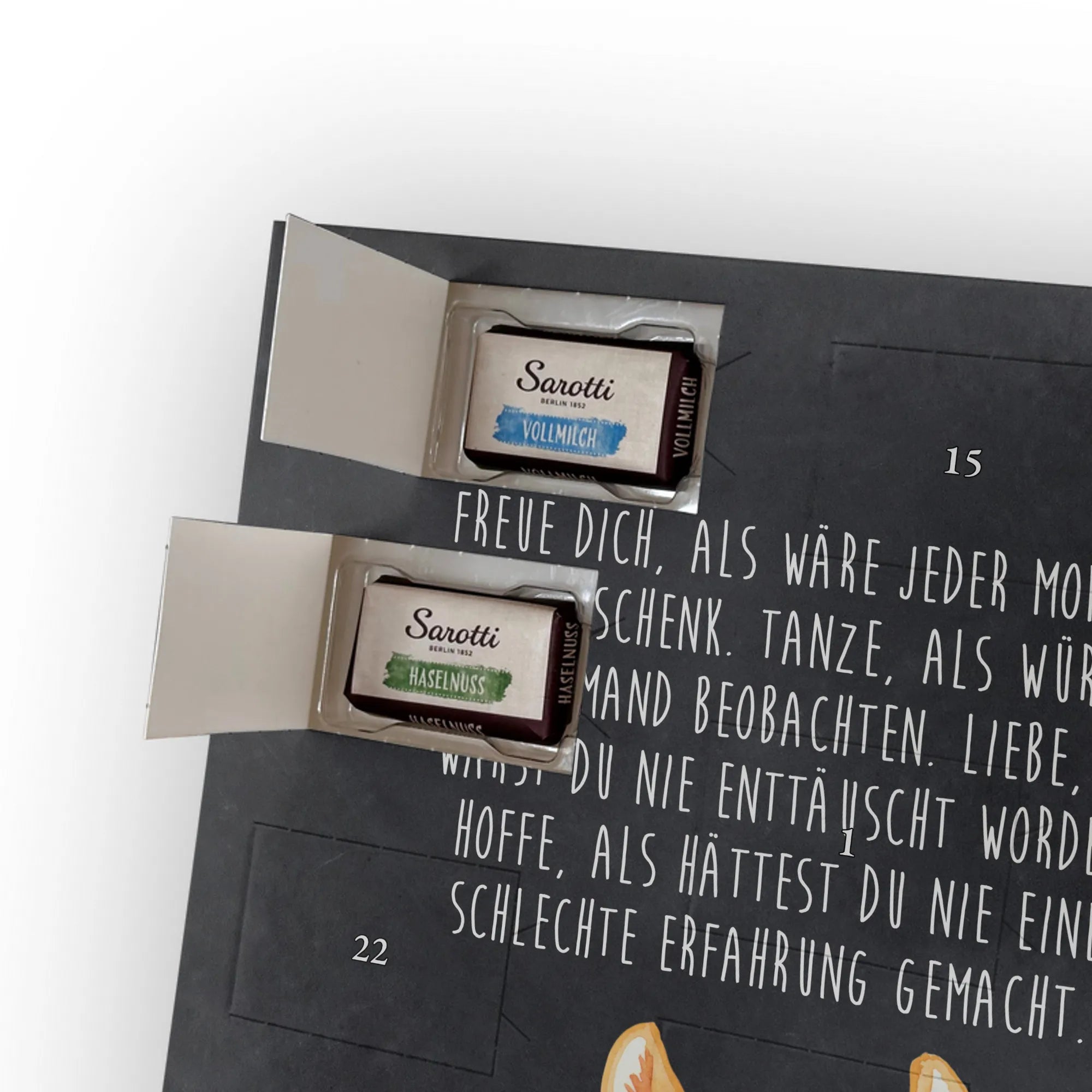 Wunderschöner Personalisierter Schoko Foto Adventskalender von Mr. & Mrs. Panda – perfekt, um dir oder deinen Liebsten die Vorweihnachtszeit zu versüßen. Dieser Adventskalender ist mit liebevollen Motiven und herzlichen Sprüchen von Mr. & Mrs. Panda bedruckt und du kannst ihn ganz einfach mit einem persönlichen Foto individualisieren. Achte bitte darauf, dass dein Foto eine hohe Auflösung hat und der Bildausschnitt passt, damit das Druckergebnis klar und strahlend wird. Lade nur Bilder hoch, an denen du die Bildrechte besitzt oder für die du die Erlaubnis hast. Die brillante Druckqualität mit seidenmatter Oberflächenveredelung sorgt für einen edlen Look, die Seitenflächen sind ebenfalls bedruckt. Maße: 325 mm x 225 mm x 27 mm. Der Kalender enthält 24 einzeln verpackte Schokoladen Mini Sticks in vier verschiedenen Sorten: Karamell-Schokoladenkuchen, Kekse, Knuspriger Nougat und Erdbeer-Cheesecake. Gefüllt mit Lindt Hello Schokolade. Allergene: Milcheiweiß, Milchzucker, Soja, Weizen, Haselnüsse. Kann Mandeln und andere Schalenfrüchte enthalten. Besonderheiten: Der Kalender kann aufgehängt oder aufgestellt werden. Bitte beachte: Die Fotos werden weder aufbereitet noch zugeschnitten – Rücknahme bei personalisierten Foto-Artikeln ist ausgeschlossen. Wir von Mr. & Mrs. Panda wünschen dir eine zuckersüße Adventszeit mit deinem ganz persönlichen Foto-Adventskalender!