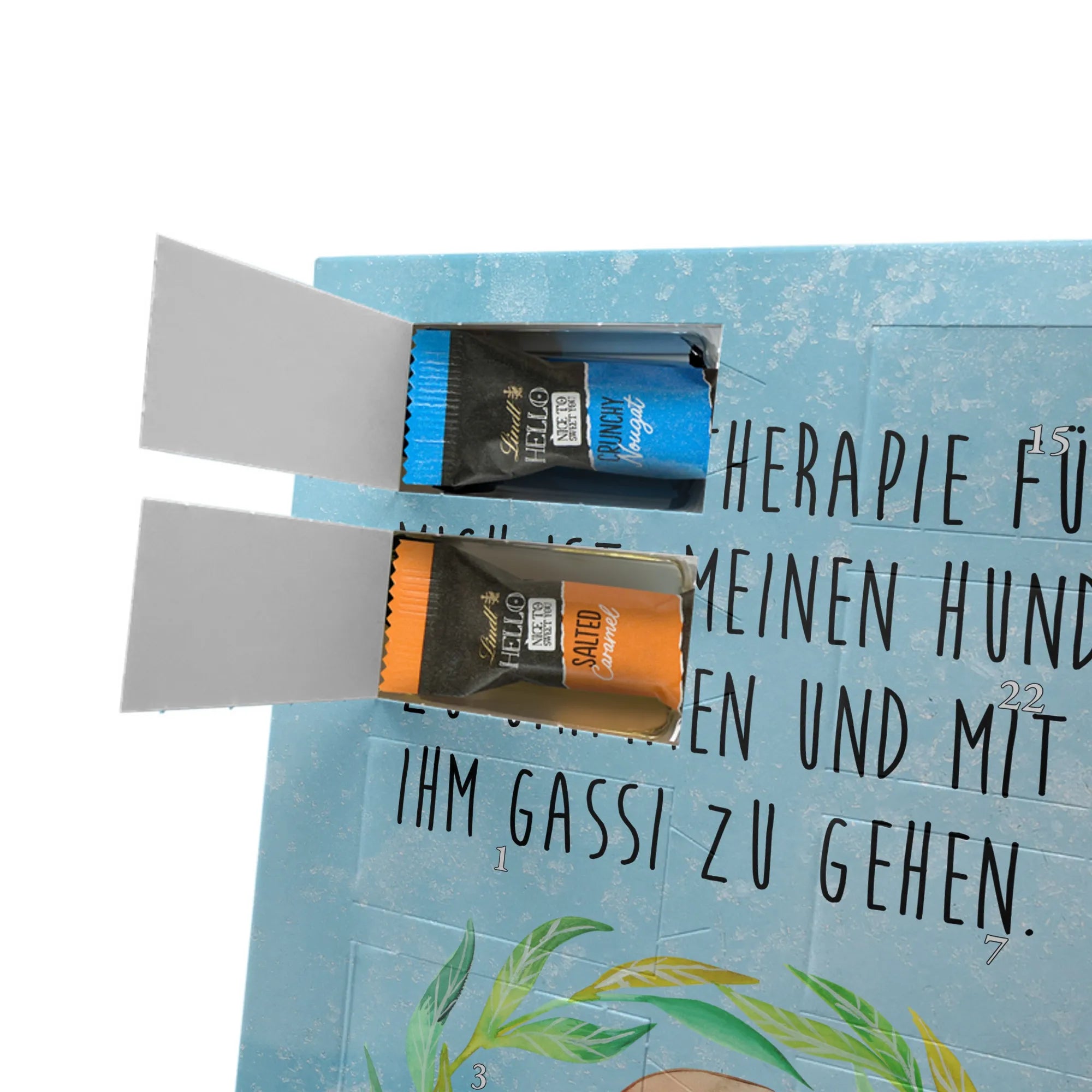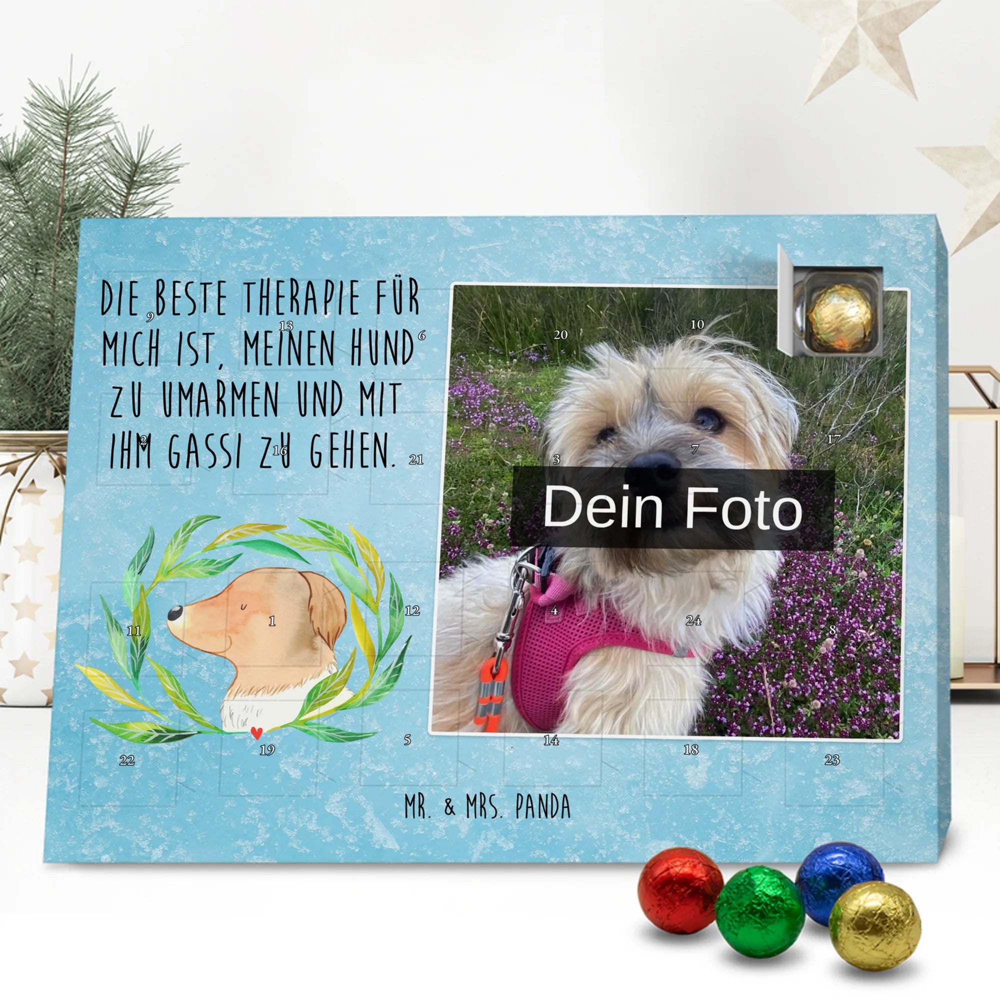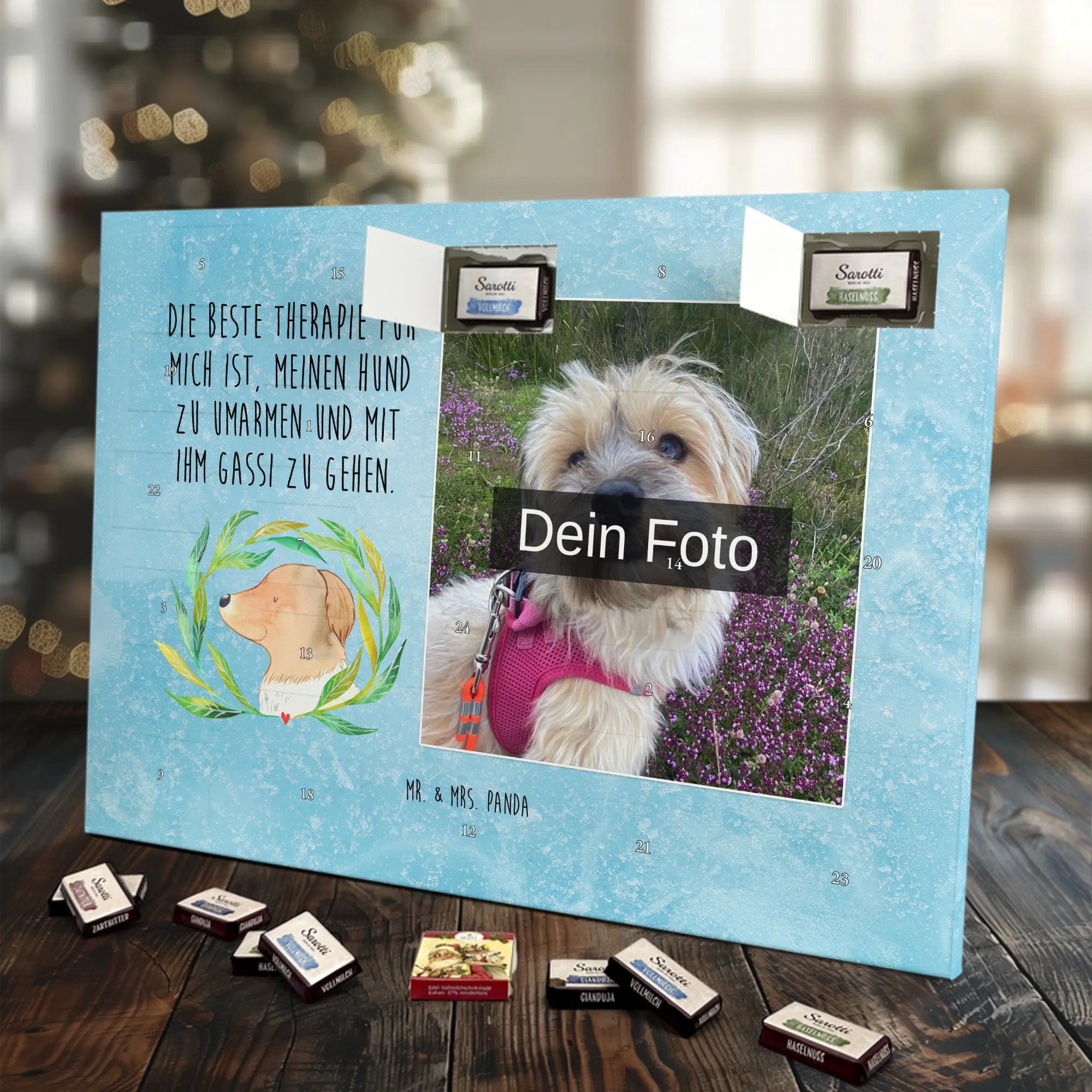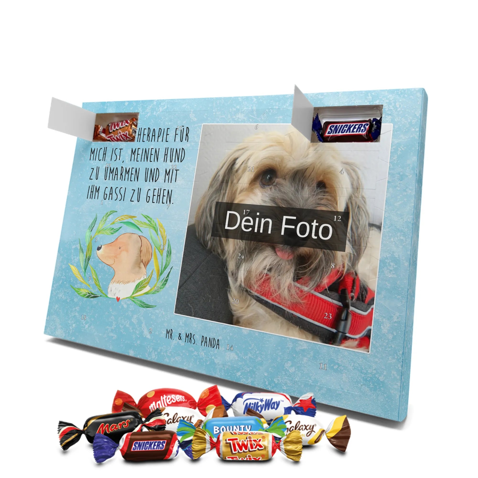 Personalisierter Schoko Foto Adventskalender Hund Blumen - Lindt LINDOR - Eisblau