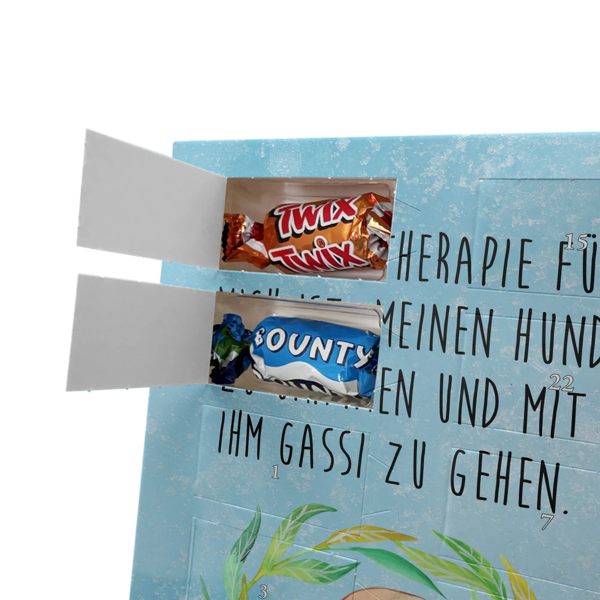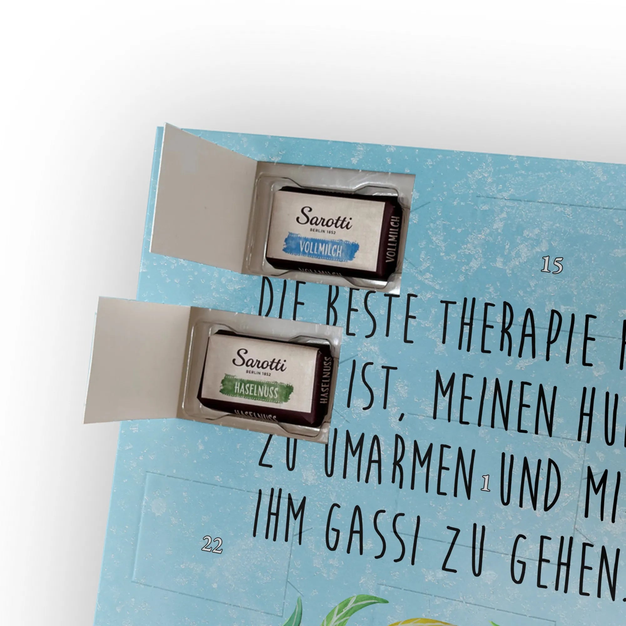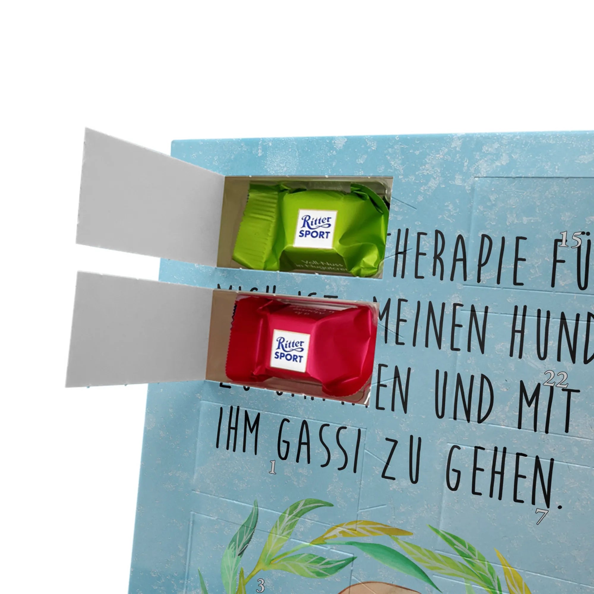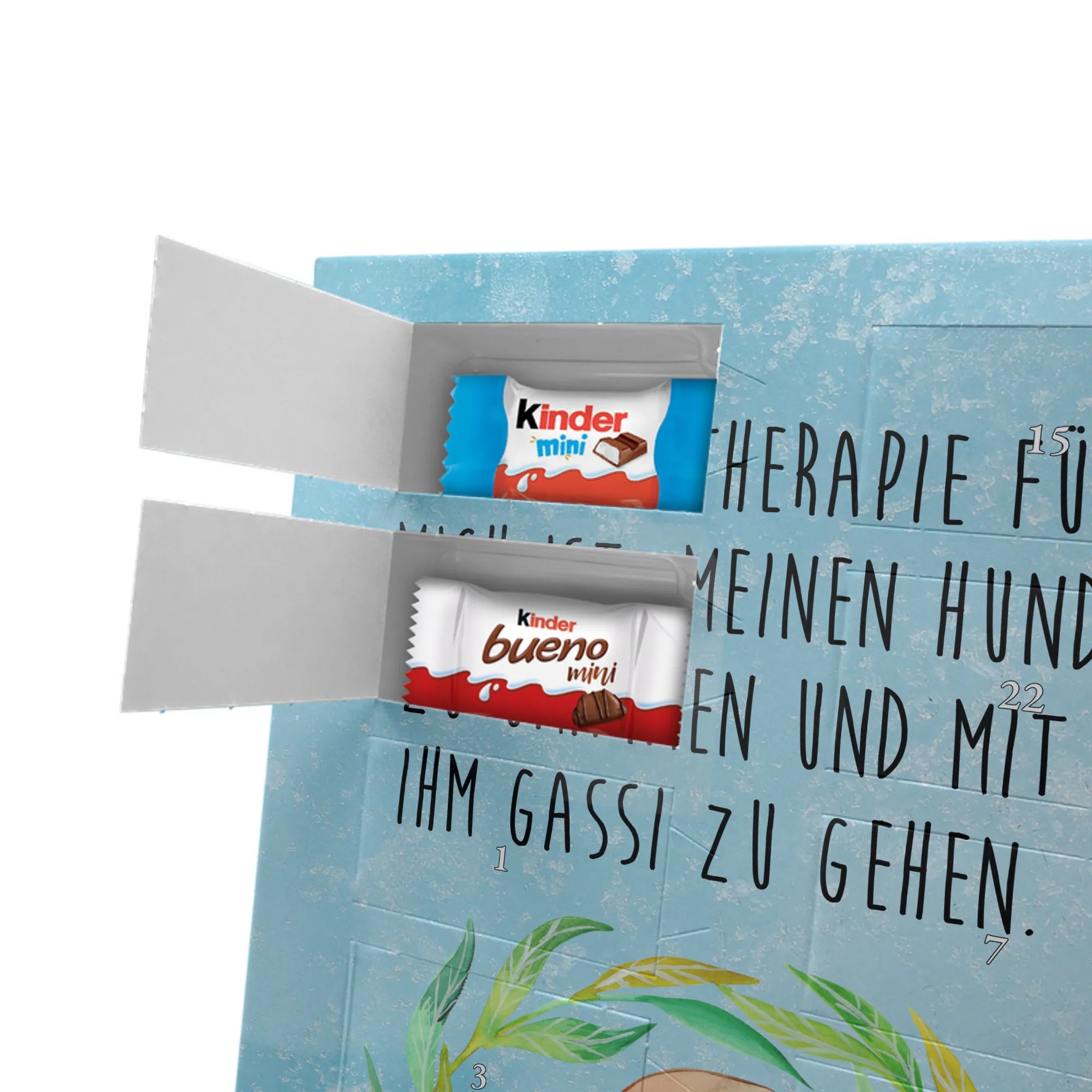 Personalisierter Schoko Foto Adventskalender Hund Blumen - Lindt LINDOR - Eisblau