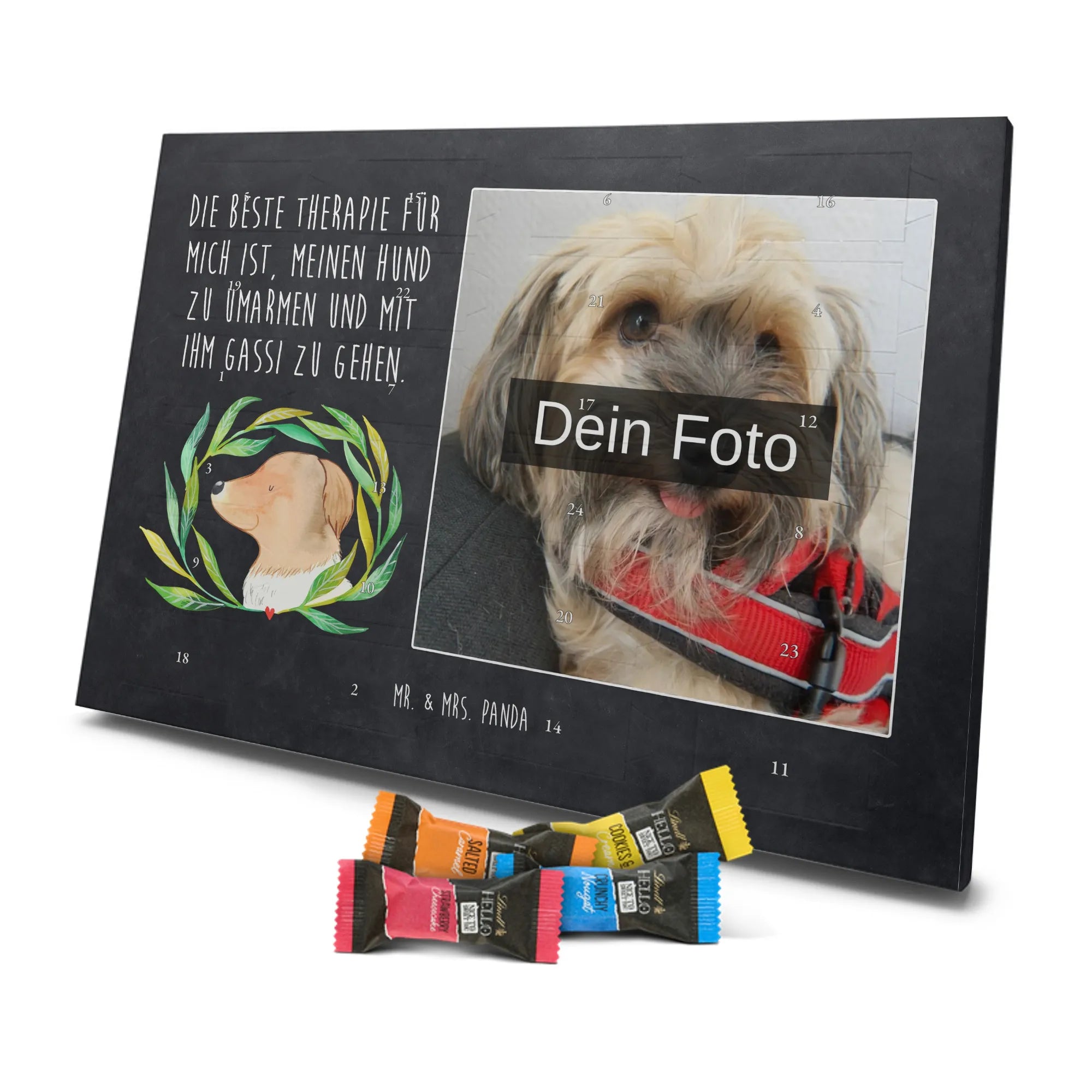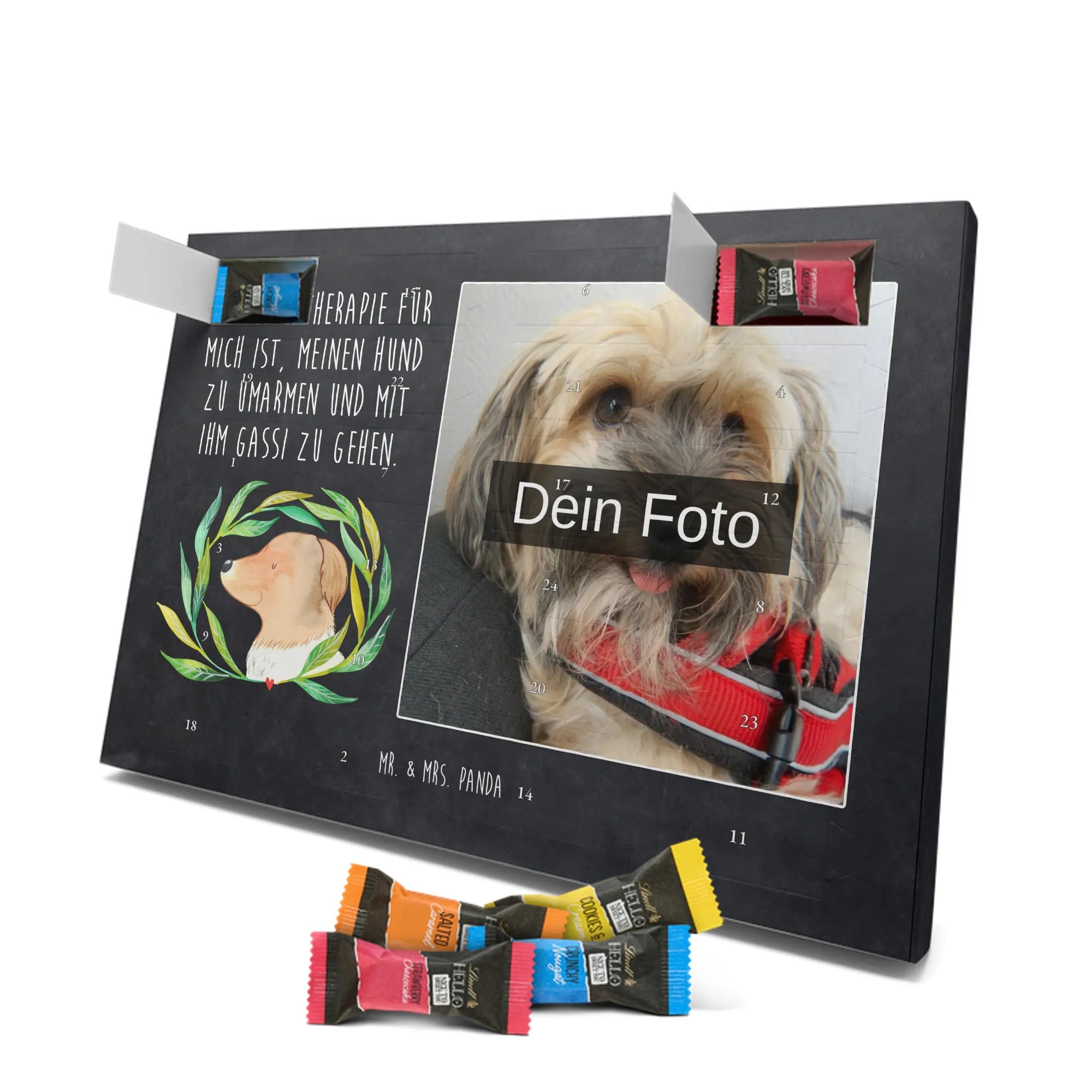 🐼 PERSONALISIERTES ADVENTS-SCHOKOKALENDER: Foto, Mr. & Mrs. Panda Motive & Lindt Hello Minis vereint.