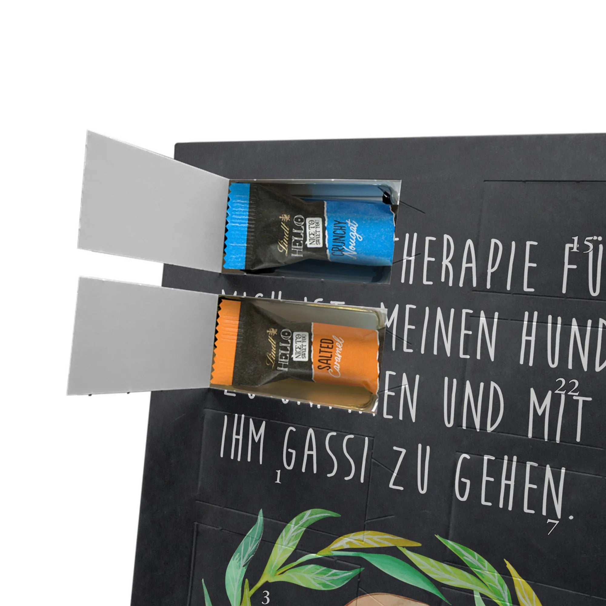 Entdecke unseren personalisierten Schoko-Foto-Adventskalender von Mr. & Mrs. Panda – ein liebevoll gestalteter Adventsbegleiter, der dich jeden Tag im Dezember mit süßen Überraschungen verwöhnt. Der Kalender ist mit charmanten Motiven und kurzen Sprüchen bedruckt und lässt sich mit deinem Lieblingsfoto personalisieren. Achte auf eine gute Bildqualität und den richtigen Bildausschnitt, damit dein Foto sauber gedruckt wird. Bitte nur Fotos hochladen, bei denen du die Rechte besitzt. Die hochwertige, seidenmatte Oberfläche und die bedruckten Seitenflächen verleihen dem Kalender einen besonderen Look. Maße: 325 mm x 225 mm x 27 mm. Innen findest du 24 einzeln verpackte Schokoladen Mini Sticks in vier köstlichen Sorten: Karamell-Schokoladenkuchen, Kekse, Knuspriger Nougat und Erdbeer-Cheesecake. Gefüllt mit Lindt Hello Schokolade. Wichtige Hinweise: Allergene wie Milcheiweiß, Milchzucker, Soja, Weizen und Haselnüsse sind enthalten. Kann Spuren von Mandeln und anderen Schalenfrüchten enthalten. Der Kalender kann aufgehängt oder aufgestellt werden. Hinweis: Fotos werden nicht nachbearbeitet oder zugeschnitten – Rücknahme ausgeschlossen. Verschenke Vorfreude mit deinem individuellen Foto-Adventskalender!