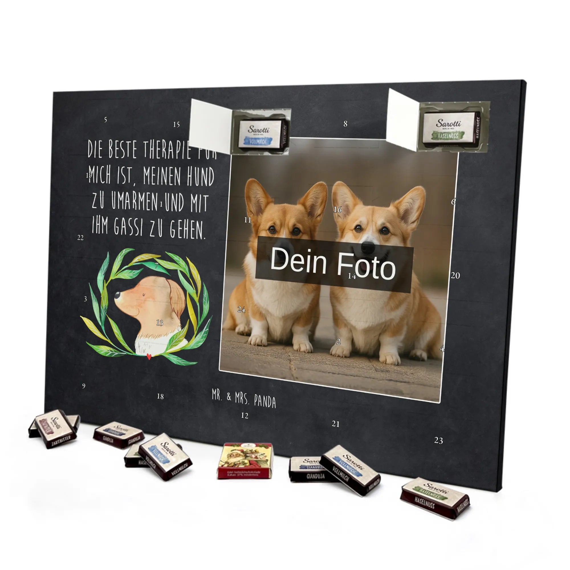Mach dir oder anderen eine Freude – gestalte deinen personalisierten Foto-Adventskalender mit Schokolade jetzt bei Mr. & Mrs. Panda!