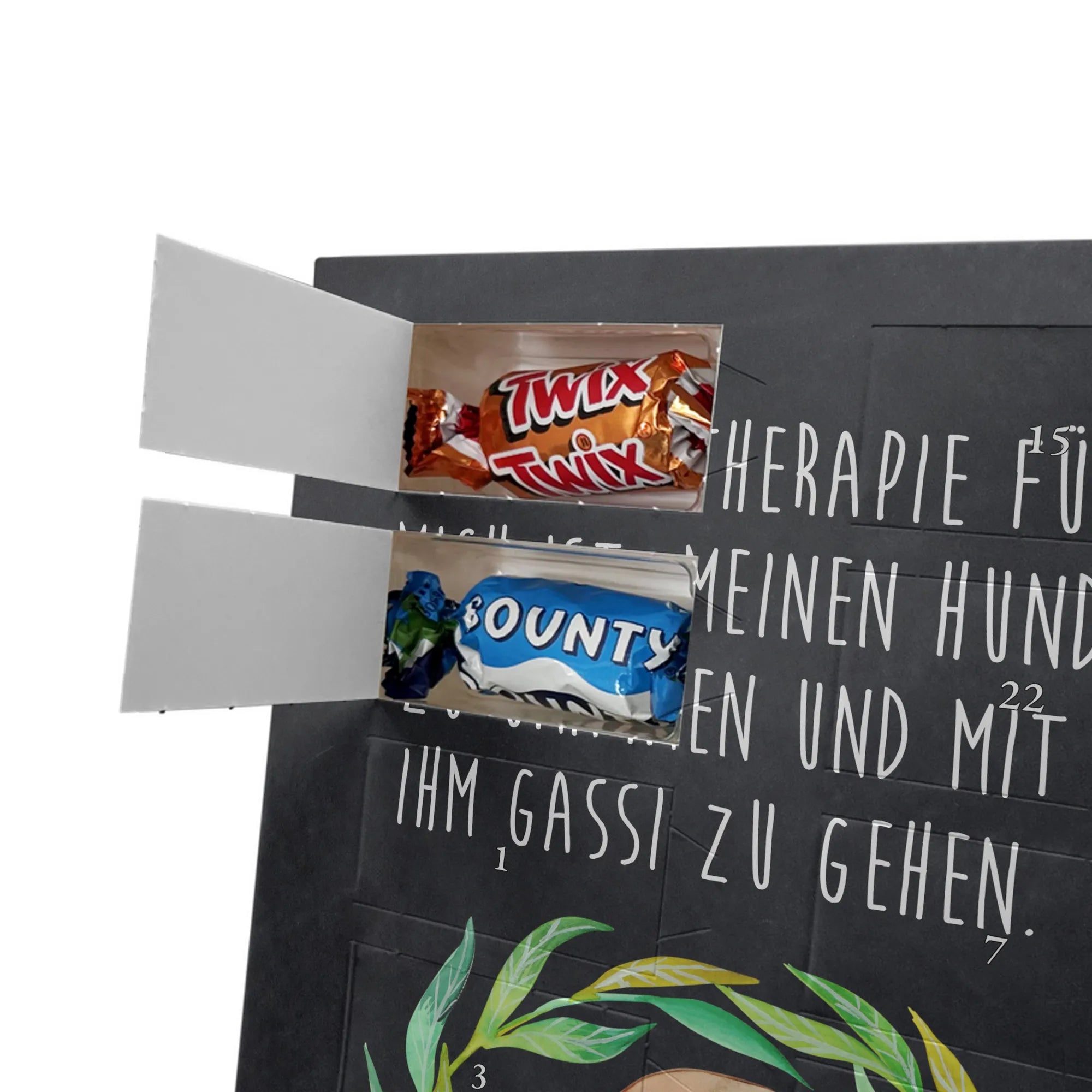 Charmanter Personalisierter Adventskalender mit Schoko-Foto von Mr. & Mrs. Panda – eine liebevolle Art, die Adventszeit zu personalisieren. Der Kalender ist mit den typischen Mr. & Mrs. Panda Motiven und herzlichen Sprüchen bedruckt; du kannst die Vorderseite mit deinem Lieblingsfoto gestalten. Achte auf eine hohe Auflösung deines Fotos, damit das Druckbild schön scharf wird, und kontrolliere den Bildausschnitt, damit keine wichtigen Details verloren gehen. Bitte lade nur Bilder hoch, für die du die Bildrechte besitzt oder eine Erlaubnis zur Nutzung vorliegt. Die Verarbeitung ist hochwertig: brillante Druckqualität, seidenmatte Oberflächenveredelung und bedruckte Seitenflächen für ein rundes Design. Maße: 325 mm x 225 mm x 27 mm. Der Kalender kann aufgehängt oder aufgestellt werden – ganz nach Belieben. Wichtig: Die Fotos werden nicht nachbearbeitet oder zugeschnitten; personalisierte Foto-Artikel sind vom Widerruf ausgenommen. Gefüllt ist der Adventskalender mit Celebrations Schokolade – 24 feine Füllungen in 8 verschiedenen Sorten (Maltesers, Mars, Snickers, Twix, Milky Way, Bounty, Galaxy, Galaxy Caramel). Ein persönliches Geschenk, das Erinnerungen und Genuss wunderbar verbindet.