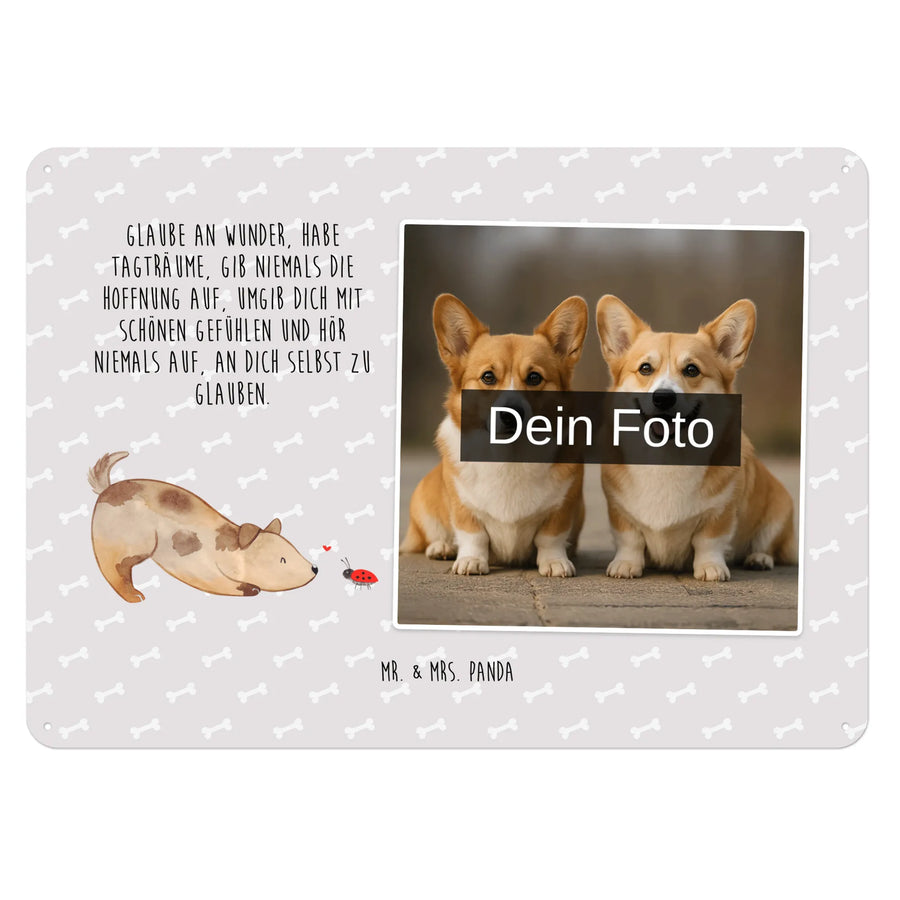 Personalisiertes Foto Blechschild Hund Marienkäfer - DIN A6 - Grau Pastell